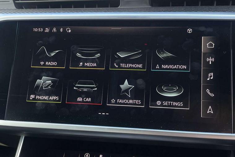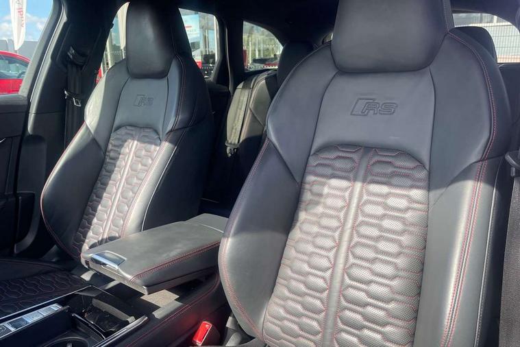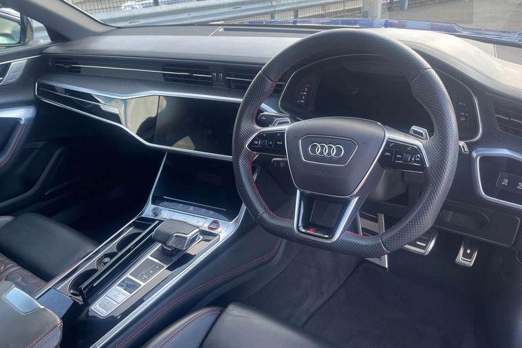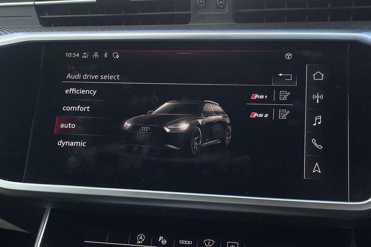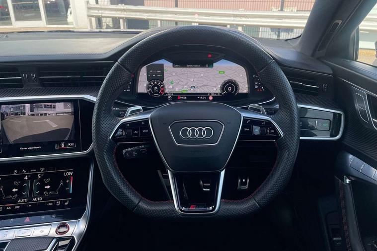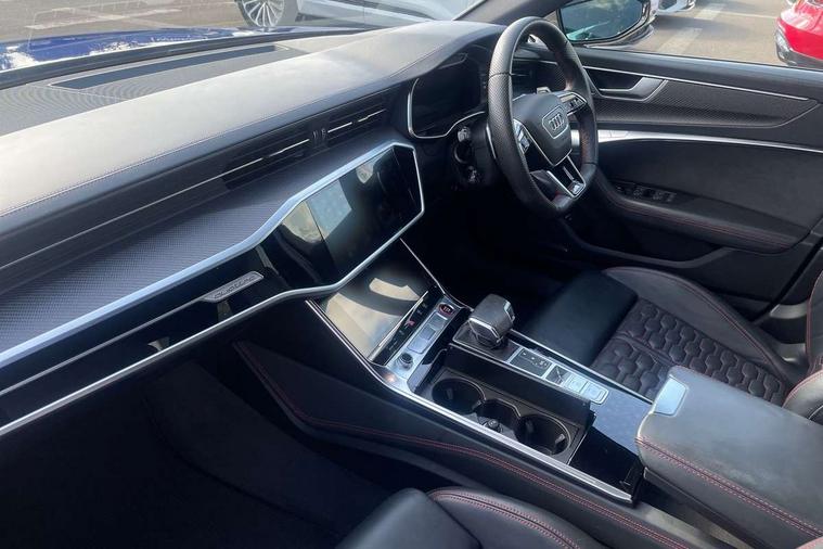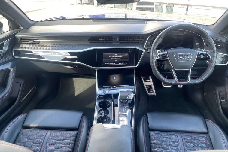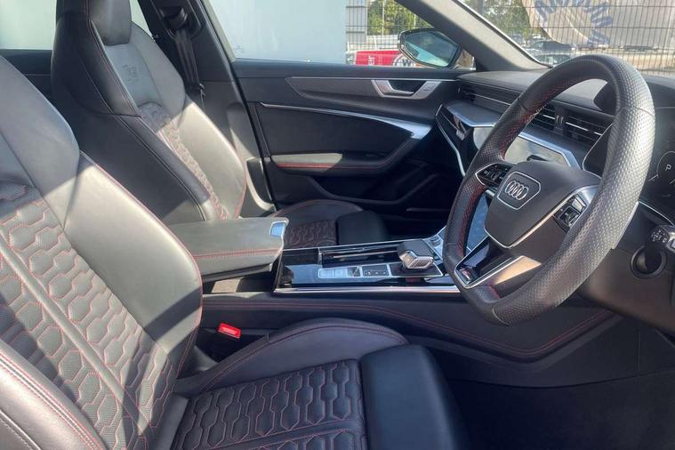 360 degree parking camera, Audi connect safety and service (e-call), Audi connect with Amazon Alexa Integration, Audi drive select, Audi virtual cockpit plus with RS specific design and 12.3" display with additional graphic display options, Automatic start/stop system, Bluetooth interface, Dynamic all wheel steering, Lane departure warning system, MMI navigation with MMI touch + twin touch screens 10.1" and 8.6" with haptic and acoustic feedback, Operating buttons in black, glass look with haptic feedback including extended aluminium look, Power door closure, Power latching doors, Power operated tailgate, Service interval indicator, Smartphone interface includes wireless Apple carplay/Android Auto, Voice control system, 73 litre fuel tank, Increased top speed to 174mph, Quattro sports differential, RS Sports suspension plus with dynamic ride control, 2 USB-C ports with charging functionality in the rear, Audi music interface, Bang & Olufsen 3D Premium Sound System, DAB Digital radio, Adaptive windscreen wipers with integrated washer jets, Black mirror caps, Body colour rear roof spoiler, Electric front/rear windows, Electric panoramic opening glass sunroof, Electrically folding auto dimming/adjustable/heated door mirrors with LED side indicators and kerb view function for passenger side, Frameless auto dimming interior rear view mirror, HD Matrix LED headlights with Audi laser light with dynamic light design and dynamic turn signal, Headlight washers, Heat insulating darkened glass in side and rear windows, Illuminated door sill trims with RS lettering, LED rear combination lamps with dynamic light design and dynamic turn signal, Privacy glass with rear/side windows and acoustic glazing side windows, Radiator grille in honeycomb structure, large front air inlets and rear diffuser in gloss black, Rain and light sensors, Rear sports exhaust system with gloss black oval tailpipe, Rear wiper, RS front bumper with air inlets on both side, Wheel arch extensions, 3 spoke RS flat bottomed leather multifunction steering wheel with shift paddles, heated funtion, contrast stitching, RS mode button and RS emblem, 4 way electric lumbar support for driver and front passenger, 4 zone deluxe automatic climate control, Aluminiium gear shift paddles, Audi Sport logo projection (Audi Beam) in front and rear, Black cloth headlining, Electric steering wheel adjustment, Electrically adjustable front seats with driver memory, Front and rear headrests, Front centre armrest, Front seat ventilation, Front/rear floor mats, Heated front and rear seats, ISOFIX child seat mounting and Top Tether with front passenger airbag deactivation, RS Front sports seats, Stainless steel pedals and foot rest, Valcona leather upholstery with perforated honeycomb and RS lettering, Air quality pack - RS6, City assist pack - RS6, Extended LED interior multi coloured lighting pack - RS6, Gloss black styling pack - RS6, Parking assistance plus pack - RS6, Storage pack - RS6, Tour pack - RS6, 2 x 3-point rear seatbelts, Airbags - Front side, front and rear including head, Audi pre-sense front, Direct tyre pressure monitoring system, EBD - Electronic brakeforce distribution, Electromechanical parking brake, Electronic Stability Control (ESC) including ABS, ASR and EDL, Extended pedestrian protection measures, Warning triangle and first aid kit, Advanced key, Anti theft alarm with tow away protection, Anti-theft wheel bolts and wheel loosening detection, Immobiliser, Keyless Go, Remote central locking, 22" Titanium matt gloss turned finish alloy wheels, Tyre repair kit,