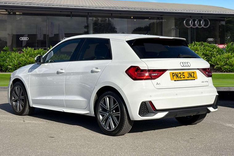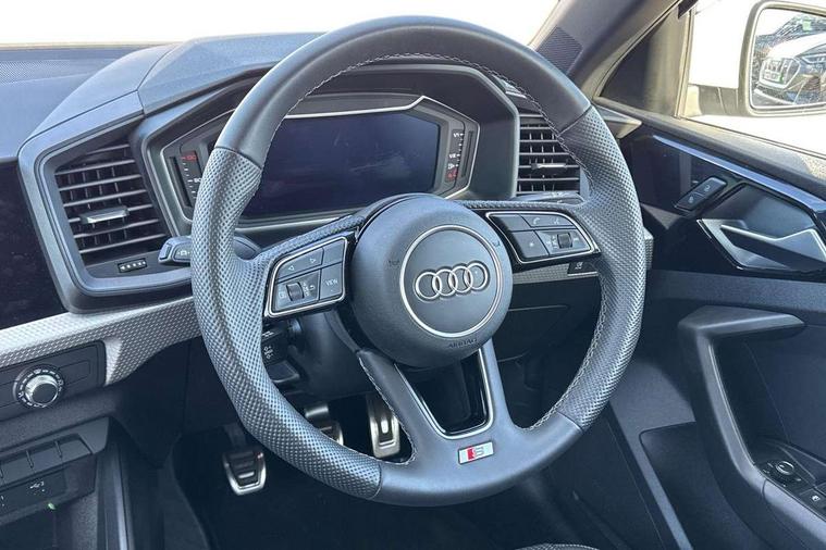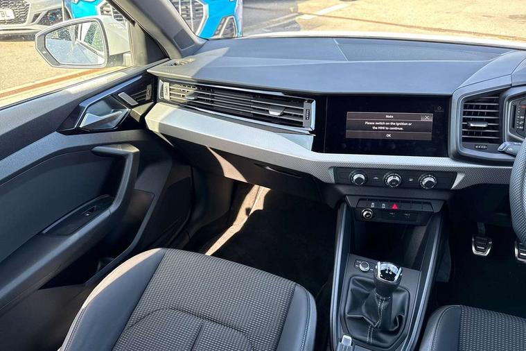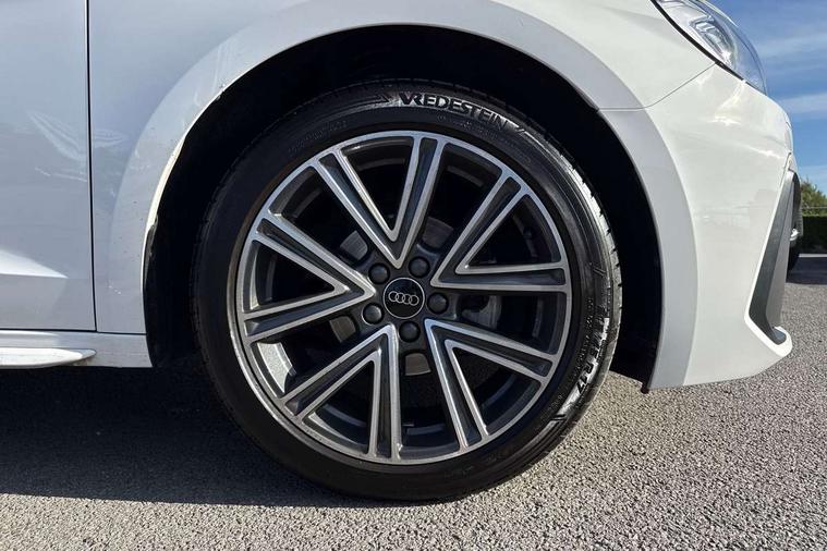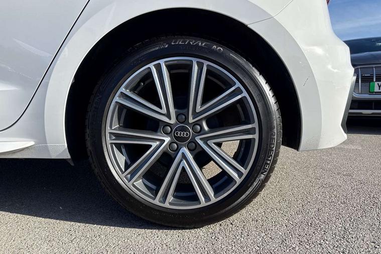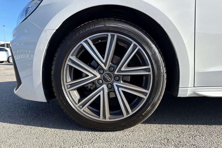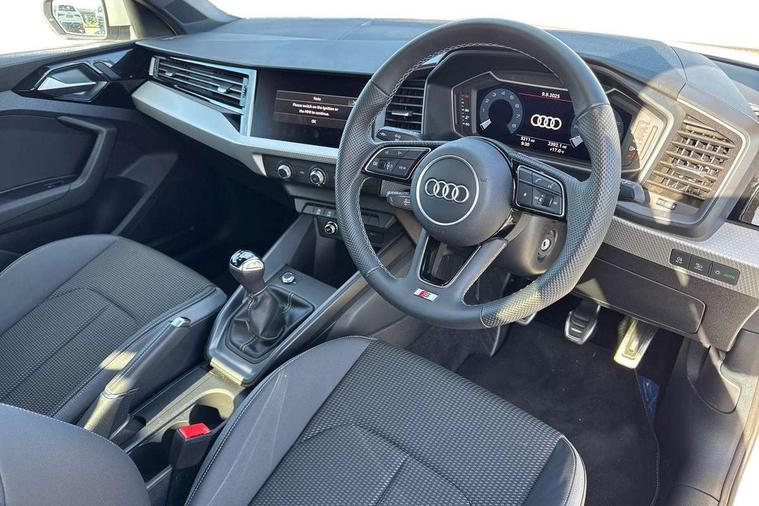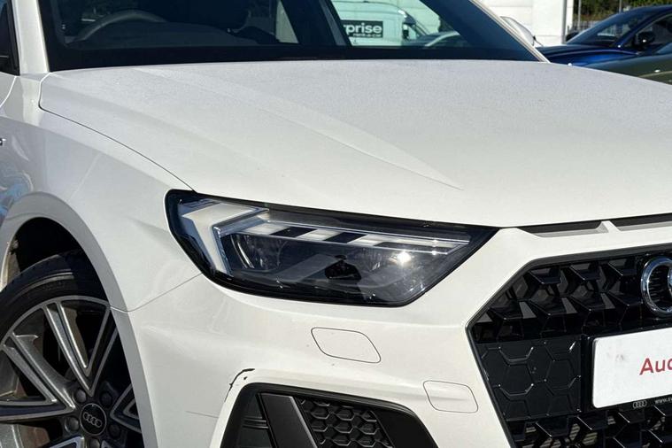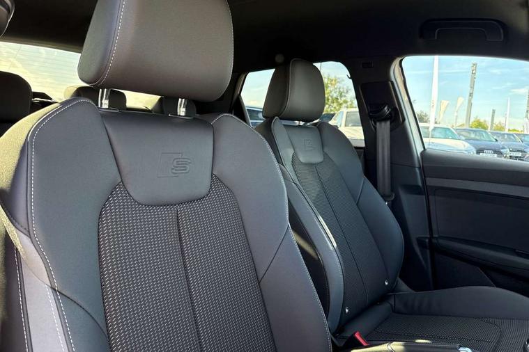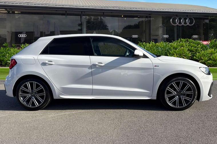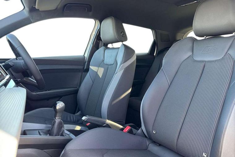 10.25" Digital instrument cluster display classis style instrument dials + speed, odometer, time, outside temperature, telephone menu + fuel level warning, Advanced driver attention and drowsiness monitor, Audi connect emergency call and service, Audi remote connect and control, Audi smartphone interface, Bluetooth interface, Camera based traffic sign recognition, Cruise control, Driver's information system, Electromechanical power steering, Lane departure warning system, Rear parking sensor, Service interval indicator, Speed limiter, Start stop system with recuperation, Voice control system, Washer fluid level indicator, Sports suspension, 2 x USB type C connection points, 6 loudspeakers, DAB Digital radio, MMI radio plus with 10.1" colour MMI display screen and MMI touch, Auto dimming rear view mirror, Body coloured door mirrors, Door sill trims with aluminium inlays and S line logo in front, Electric front and rear windows, Electrically adjustable, heated, folding door mirrors with integrated LED side indicator, Front side air inlets in grained matt black and C frame in anthracite black, Headlight cleaning system, Heat insulating glass windscreen and side windows, Heated rear windscreen, High level LED brake light, LED daytime running lights, LED headlights with range control LED rear lights + dynamic rear indicators, Privacy glass, Radiator grille and rear diffuser in matt anthracite black, Radiator protective grille frame in matt aluminium silver, Rain and light sensors, Rear fog lights, Rear side wing doors, Rear wiper, S line badges on front wings, Side front spoiler lips in grained matt black, 12V socket in centre console with two cup holders, 3 rear seats with headrests, 3 seat bench in 2nd row, 3 spoke leather multi-function plus steering wheel features S badging and grips in perforated leather with contrast stitching, 40:60 Split folding rear seat or fully collapsed, Black cloth headlining, Front and rear velour black floor mats with contrast stitching in fine silver, Front head restraints, Front passenger seat, Height and reach adjustable steering wheel, Interior lighting includes roof module, front and rear reading lights and right luggage compartment lighting, ISOFIX child seat mounting for front passenger and outer rear seats including top tether attachment point of outer rear seats, Leather gear knob with aluminium trim, Leather handbrake grip, Manual air conditioning, Manual height adjustable for driver and front passenger seat, Manually adjustable lumbar support in front seats, Stainless steel pedals, Ambient lighting package - A1, Luggage compartment pack - A1, S line exterior styling pack - A1 Sportback, 3x3 point rear seatbelts, Audi pre-sense front with pedestrain and cyclist recognition, Brake assist function, Driver and front passenger airbag with front side and head airbags, Electronic Stability Control including ABS, EBD, ASR and EDL, Front passenger airbag deactivation switch, Hill hold assist, Manual rear child locks, Seatbelt height adjustment for front seats, Seatbelt monitoring, Tyre pressure loss indicator, Warning triangle and first aid kit, Anti theft alarm, Anti theft wheel bolts, Immobiliser, Remote control key with safelock, Aluminium trim for control switches, air vents and digital instrument cluster, Black dashboard, Silver grey inlays polygon structure in diamond paint finish, Structured grey accent surfaces insert of air vents, interior door handle recesses and centre console in quartz paint finish,