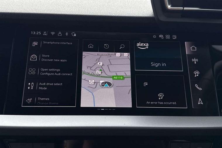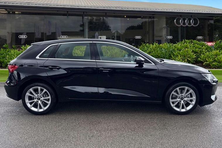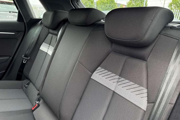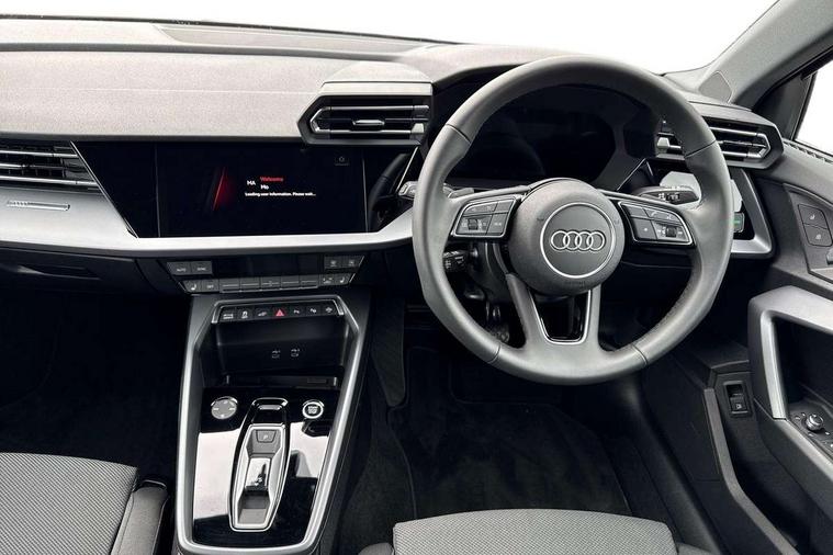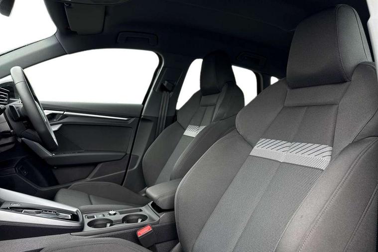 Adjustable speed limiter, Audi drive select, Audi smartphone interface with app store includes wireless Apple carplay, Android auto and Amazon alexa integration, Audi virtual cockpit plus - 12.3" full HD resolution dynamic digital instrument cluster, Automatic start/stop system with recuperation, Bluetooth interface, Camera based traffic sign recognition, Collision avoidance assistant, Cruise control, Distraction and Fatigue warning, e-Call (emergency call), Electromechanical power speed sensitive steering, Emergency assist, Lane departure warning system, MMI Navigation Plus with high resolution 10.1" colour touch screen display, Park Assist with parking system Plus, Service indicator, Trip computer, Voice control system with natural language interaction, 3 pin 10 amp domestic charging cable, CCS socket for DC charging, Charging cable for public charging, mode 3 (type 2), 32 A, Compact charging system, Industrial connector CEE 32 A, 230 V, length 1.6 m, Standard suspension, Type 2 socket for AC charging, Audi Phonebox light with wireless charging, Audi sound system - 10 loudspeakers including centre loudspeaker and subwoofer, DAB Digital radio, USB ports with charging function in the rear, 3rd brake light, Acoustic glass windscreen, Aluminium window trim, Auto dimming frameless rear view mirror, Body colour exterior mirrors, Body colour roof spoiler, Dipped beam, main beam, position light and turning light, Electrically adjustable/heated/folding/auto dimming door mirrors with integrated LED indications + kerb view function for passenger side, Exterior model badging, Front electric windows, Front radiator grill in high gloss dark chrome, Front side air inlets in grained matt black with silver frame, Heat insulating glass windscreen, LED daytime running lights, LED headlights and halogen rear lights, Light and rain sensors, Rear diffuser and grill in grained matt black with silver frame, Rear electric windows, Rear side wing doors, Rear window, rear door windows and rear side windows in clear glass, Rear wiper, 12V socket and storage compartment in front centre console, 3 seat bench in 2nd row, 3 spoke leather multifunction steering wheel with gear shift paddles, 3-zone deluxe automatic air conditioning, 4 way electrically adjustable lumbar support for driver and front passenger, 60/40 split folding rear seat bench, Black front and rear floor mats, Convenience auxiliary air conditioning, Front and rear headrests, Front centre armrest, Front door sill trims with aluminium inlay, Heated front seats, Height and reach adjustable steering wheel, Manual boot compartment lid, Manually adjustable front seats, Routine cloth upholstery with front sports seats, Seat side bolsters, Single front passenger seat, Steel grey cloth headlining, Aluminium interior elements pack - A3, LED interior lighting pack -A3, 3x3 point rear seat belts, Acoustic vehicle alerting system, Driver and front passenger airbag with passenger airbag deactivation, Electronic Stabilisation Control (ESC) including ABS, ASR and EDL, First aid kit with warning triangle and 2 safety vests, Front side airbags with head airbags and interaction airbag, Hill hold assist, Pre-sense front with pedestrian and cyclist detection, Seatbelt monitoring, Tyre pressure loss indicator, Anti theft alarm, Anti-theft wheel bolts, Electronically operated child locks, Immobiliser, Remote central locking with safelock, Black dashboard, Inlays in volcano grey fine paint finish, Tyre repair kit,