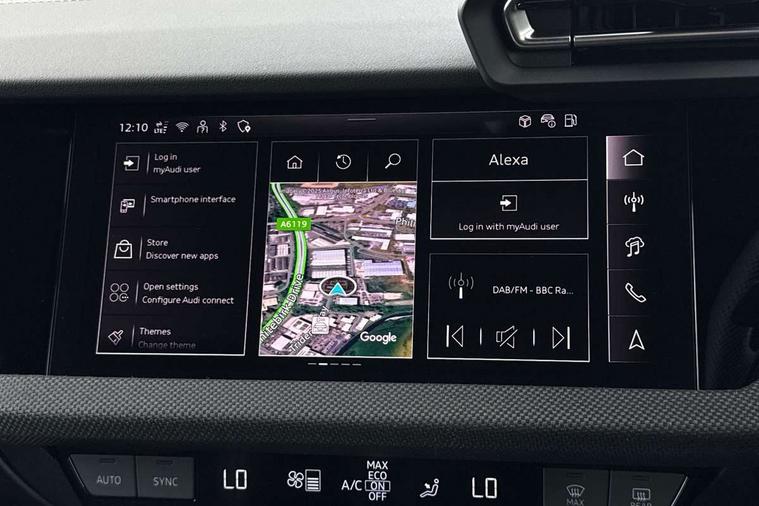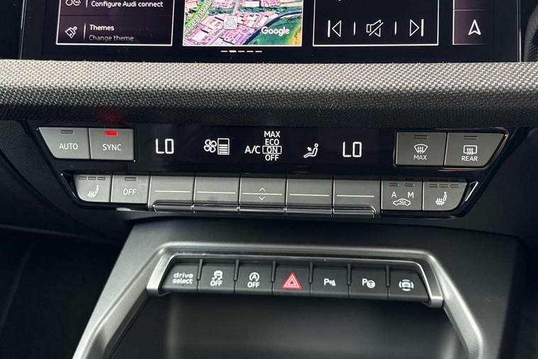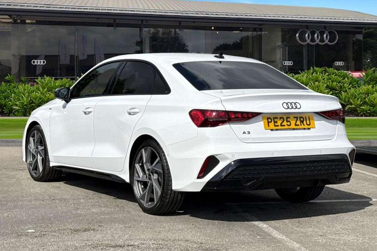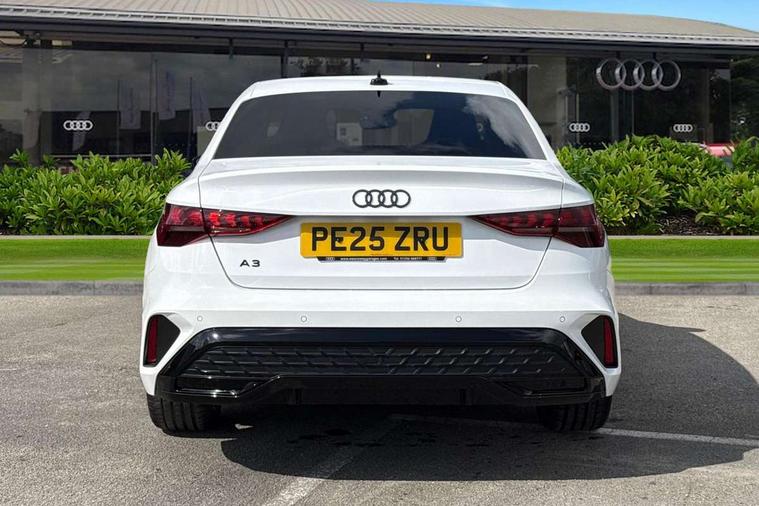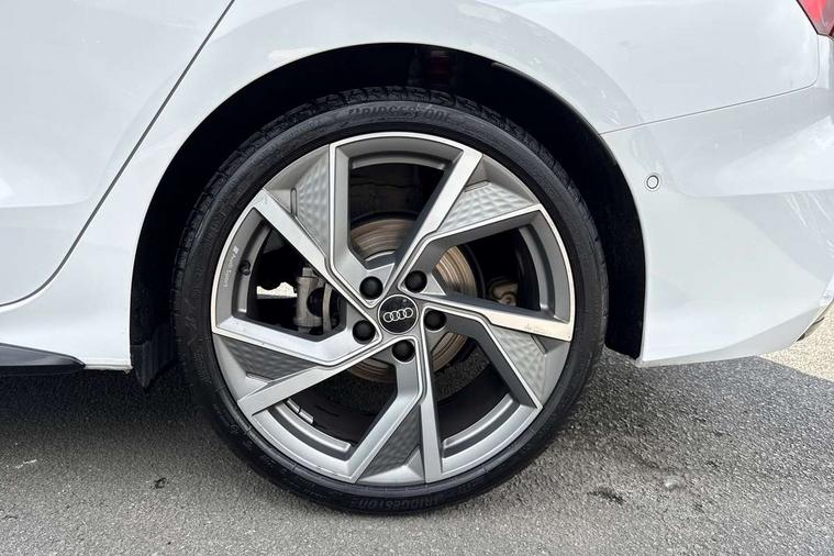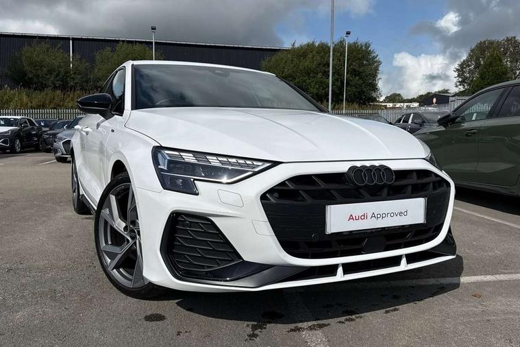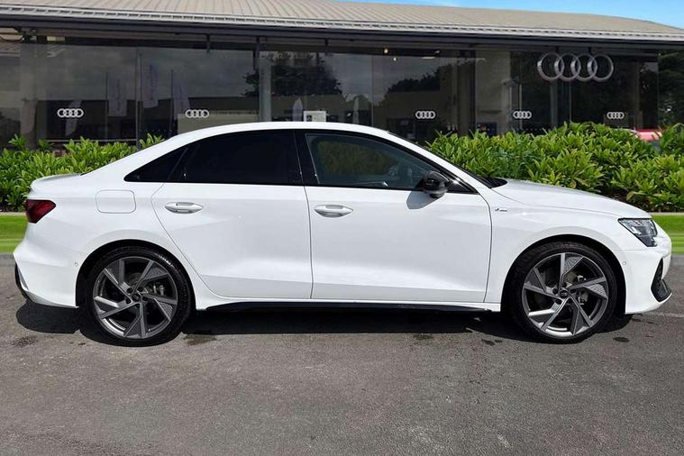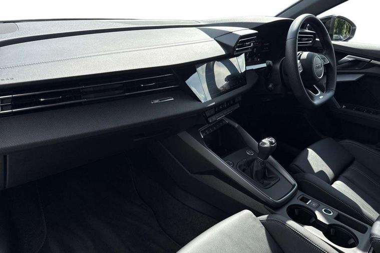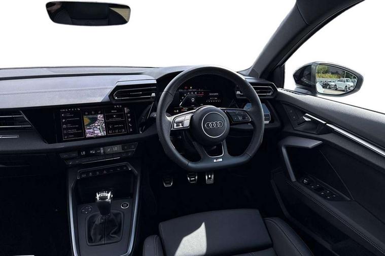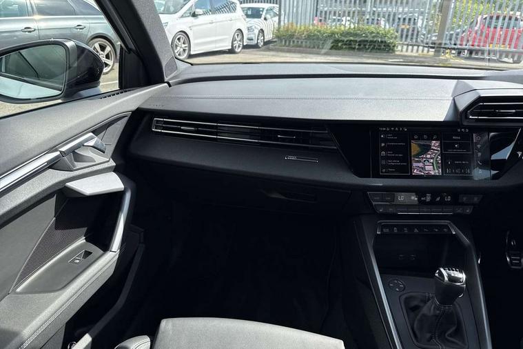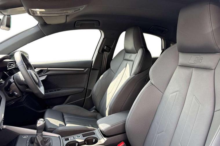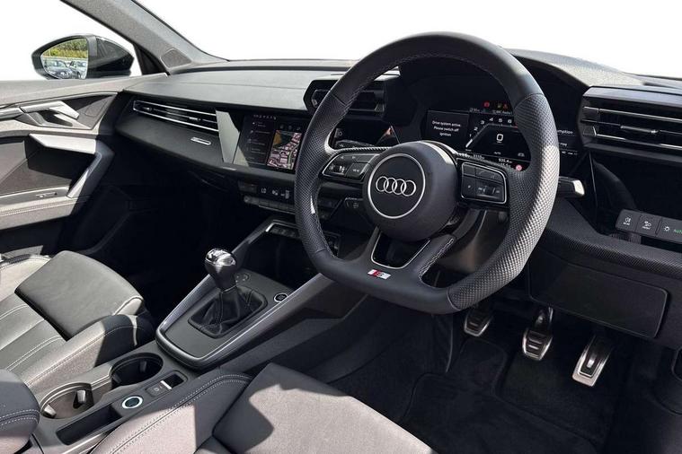 Adjustable speed limiter, Audi drive select, Audi smartphone interface with app store includes wireless Apple carplay, Android auto and Amazon alexa integration, Audi virtual cockpit plus - 12.3" full HD resolution dynamic digital instrument cluster, Automatic start/stop system with recuperation, Bluetooth interface, Camera based traffic sign recognition, Collision avoidance assistant, Cruise control, Distraction and Fatigue warning, e-Call (emergency call), Electromechanical power speed sensitive steering, Lane departure warning system, MMI Navigation Plus with high resolution 10.1" colour touch screen display, Park Assist with parking system Plus, Service indicator, Trip computer, Voice control system with natural language interaction, Sports suspension, Audi Phonebox light with wireless charging, Audi sound system - 10 loudspeakers including centre loudspeaker and subwoofer, DAB Digital radio, USB ports with charging function in the rear, Acoustic glass windscreen, All weather light, Anthracite grey Audi rings (front and rear), Audi beam uses LEDs to project the Audi logo onto the ground as you exit your A3, Auto dimming frameless rear view mirror, Automatic dynamic range control, Black accents front and rear bumpers, Black accents in the area of the Audi single frame grille, Black accents window trims strips, Dipped beam, main beam, position light and turning light, Electrically adjustable/heated/folding/auto dimming door mirrors with integrated LED indications + kerb view function for passenger side, Exterior model badging, Front and rear side air inlets in grained matt black with dark liquid chrome frame, Front electric windows, Heat insulating glass windscreen, Illuminated door sills with aluminium inserts at the front with S logo, Intersection light, LED 3rd brake light, LED brake lights, LED daytime running x3, LED headlights with LED rear lights and dynamic rear indicators, LED rear number plate lights, LED reverse light, LED tail lights, Light and rain sensors, Manoeuvring light, Motorway light, Privacy glass - dark tinted rear window, rear door and side windows, Rear boot, Rear diffuser and grill in grained matt black with inlay in dark liquid chrome, Rear electric windows, Rear side wing doors, Static Cornering lights, 12V socket and storage compartment in front centre console, 3 seat bench in 2nd row, 3 spoke flat bottomed multi-function leather sport steering wheel, 3-zone deluxe automatic air conditioning, 4 way electrically adjustable lumbar support for driver and front passenger, 40/20/40 split folding rear seat bench, Black cloth headlining, Black front and rear floor mats, Front and rear centre armrest in artificial leather with contrasting stitching on armrests and instrument panel, Front and rear headrests, Heated front seats, Height and reach adjustable steering wheel, Manual boot compartment lid, Manually adjustable front seats, Rear centre armrest with cupholder, S badging on the steering wheel, Seat side bolsters, Single front passenger seat, Stainless steel pedals and front footrest in black, Twin leather upholstery with front sports seats S embossed logo, Aluminium interior elements pack - A3, 3x3 point rear seat belts, Driver and front passenger airbag with passenger airbag deactivation, Electronic Stabilisation Control (ESC) including ABS, ASR and EDL, First aid kit with warning triangle and 2 safety vests, Front side airbags with head airbags and interaction airbag, Hill hold assist, Pre-sense front with pedestrian and cyclist detection, Seatbelt monitoring, Tyre pressure loss indicator, Anti theft alarm, Anti-theft wheel bolts, Electronically operated child locks, Immobiliser, Remote central locking with safelock, Black dashboard,