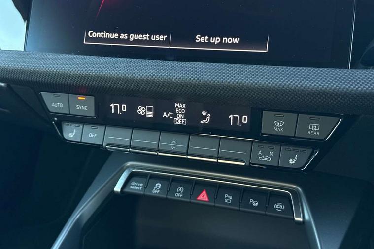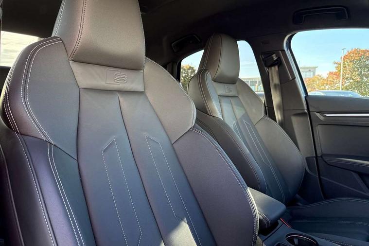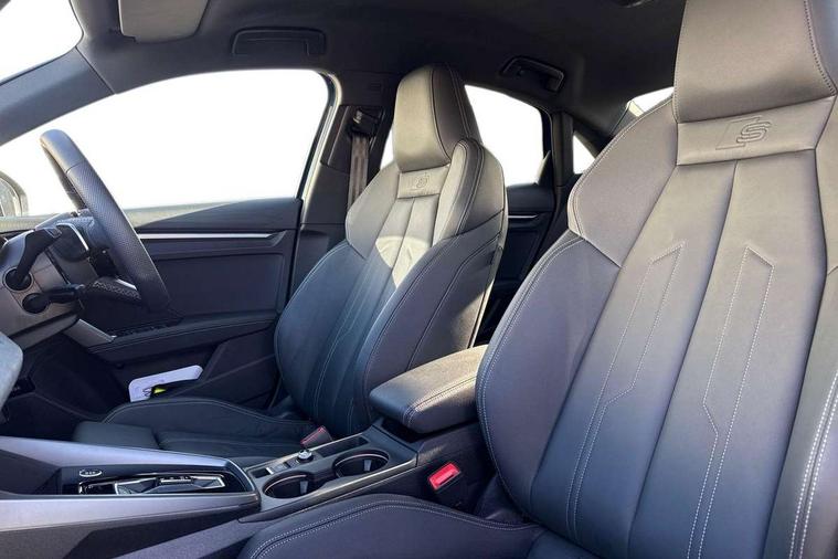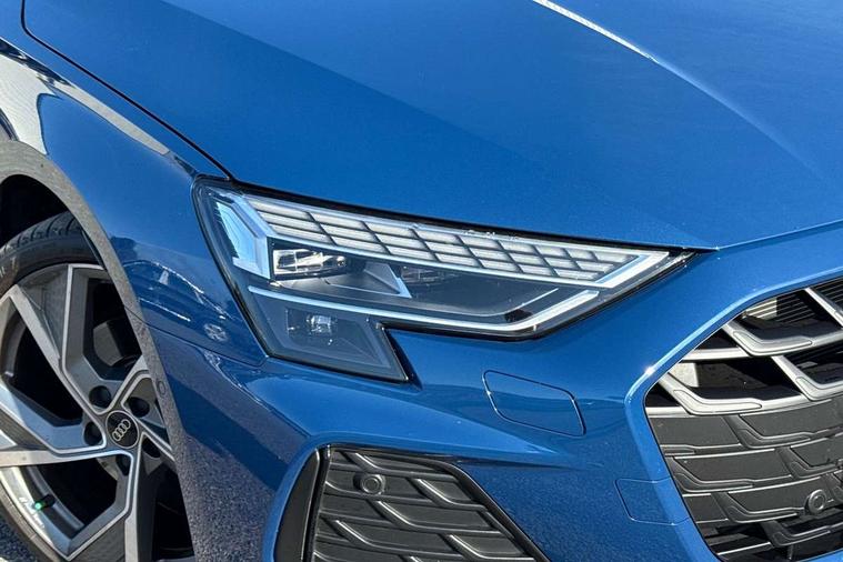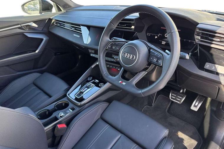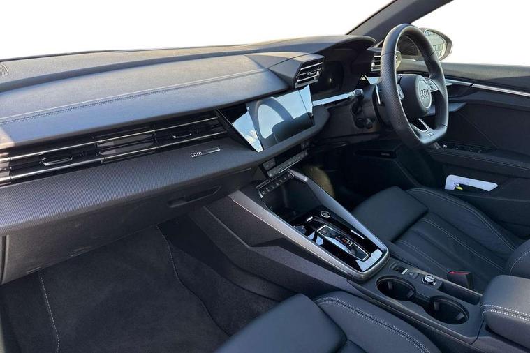 Adjustable speed limiter, Audi drive select, Audi smartphone interface with app store includes wireless Apple carplay, Android auto and Amazon alexa integration, Audi virtual cockpit plus - 12.3" full HD resolution dynamic digital instrument cluster, Automatic start/stop system with recuperation, Bluetooth interface, Camera based traffic sign recognition, Collision avoidance assistant, Cruise control, Distraction and Fatigue warning, e-Call (emergency call), Electromechanical power speed sensitive steering, Emergency assist, Lane departure warning system, MMI Navigation Plus with high resolution 10.1" colour touch screen display, Park Assist with parking system Plus, Service indicator, Trip computer, Voice control system with natural language interaction, Sports suspension, Audi Phonebox light with wireless charging, Audi sound system - 10 loudspeakers including centre loudspeaker and subwoofer, DAB Digital radio, USB ports with charging function in the rear, Acoustic glass windscreen, All weather light, Anthracite grey Audi rings (front and rear), Audi beam uses LEDs to project the Audi logo onto the ground as you exit your A3, Auto dimming frameless rear view mirror, Automatic dynamic range control, Black accents front and rear bumpers, Black accents in the area of the Audi single frame grille, Black accents window trims strips, Dipped beam, main beam, position light and turning light, Electrically adjustable/heated/folding/auto dimming door mirrors with integrated LED indications + kerb view function for passenger side, Exterior model badging, Front and rear side air inlets in grained matt black with dark liquid chrome frame, Front electric windows, Heat insulating glass windscreen, Illuminated door sills with aluminium inserts at the front with S logo, Intersection light, LED 3rd brake light, LED brake lights, LED daytime running x3, LED headlights with LED rear lights and dynamic rear indicators, LED rear number plate lights, LED reverse light, LED tail lights, Light and rain sensors, Manoeuvring light, Motorway light, Privacy glass - dark tinted rear window, rear door and side windows, Rear boot, Rear diffuser and grill in grained matt black with inlay in dark liquid chrome, Rear electric windows, Rear side wing doors, Static Cornering lights, 12V socket and storage compartment in front centre console, 3 seat bench in 2nd row, 3 spoke flat bottomed leather multifunction sport steering wheel with gear shift paddles, 3-zone deluxe automatic air conditioning, 4 way electrically adjustable lumbar support for driver and front passenger, 40/20/40 split folding rear seat bench, Black cloth headlining, Black front and rear floor mats, Front and rear centre armrest in artificial leather with contrasting stitching on armrests and instrument panel, Front and rear headrests, Heated front seats, Height and reach adjustable steering wheel, Manual boot compartment lid, Manually adjustable front seats, Rear centre armrest with cupholder, S badging on the steering wheel, Seat side bolsters, Single front passenger seat, Stainless steel pedals and front footrest in black, Twin leather upholstery with front sports seats S embossed logo, Aluminium interior elements pack - A3, 3x3 point rear seat belts, Driver and front passenger airbag with passenger airbag deactivation, Electronic Stabilisation Control (ESC) including ABS, ASR and EDL, First aid kit with warning triangle and 2 safety vests, Front side airbags with head airbags and interaction airbag, Hill hold assist, Pre-sense front with pedestrian and cyclist detection, Seatbelt monitoring, Tyre pressure loss indicator, Anti theft alarm, Anti-theft wheel bolts, Electronically operated child locks, Immobiliser, Remote central locking with safelock, Black dashboard,