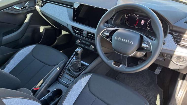 Advanced driver attention and drowsiness monitor, Bluetooth, e-Call (emergency call), Front assist system, PAS, Rear parking sensors, Rear view camera, Speed limiter, Tailgate, Traffic sign recognition, Virtual Cockpit - 10.25" digital display, Voice control system, Wireless smartlink, 4 USB C ports, 8 Speakers, 9.2" Skoda navigation display, DAB radio, Auto dimming rear view mirror, Automatic headlamp activation with Coming home and Leaving home feature, Automatic high/low beam, Body colour bumpers, Body colour door mirrors and handles, Chrome moulding around grille, Front and rear electric windows, Full LED headlights, Heated rear window, LED 3rd brake light, LED brake lights, LED daytime running lights, LED front turning lights, LED high beam, LED low beam, LED taillights, Rear LED fog light, Rear side wing doors, Rear wiper, Tinted windows, Unique dark chrome design logo on alloy wheels, 12V socket in luggage compartment, 3 seat bench in 2nd row, Black / Grey armrest stitching, Black hotstamping, Cargo elements, Chrome inner door handles, Door inserts in satin black, Driver and passenger sun visors with vanity mirror, Dual zone climate control, Front and rear roof lights, Front centre armrest, Front head restraints, Glasses storage in roof liner, Height adjustable driver seat, Height adjustable passenger seat, Ice scraper, Illuminated glove compartment, Inner circulation control with pollen filter, ISOFIX for front passenger seat, Isofix preparation for back seats, Leather gearknob and handbrake lever, Loft cloth upholstery, Luggage net under rear parcel shelf, Manual lumbar support for front seats, Net package and top tether hooks in boot space, Pearl grey ceiling, Pocket on the back of both front seats, incl. mobile phone pockets, Single front passenger seat, Skoda lettering on steering wheel, Textile floor mats, Third rear headrest, Ticket holder, Top tether for front passenger seat, Umbrella in driver's door, 3x3 point rear seatbelts, ABS, Child locks, Curtain airbags and front side airbags, Disc brakes, Driver and front passenger airbags, ESP, Hill hold control, Manual leather parking brake, One tone horn, Passenger airbag switch off function, Seatbelt reminder for driver and front passenger, Tyre pressure monitoring system, Anti theft alarm system with interior monitoring, backup horn and towing protection, Anti-theft wheel bolts, Remote central locking with 2 remote folding keys, SAFE function for remote central locking, Decord pad, door inserts Kota uni,