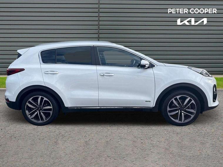 360 degree surround camera, 4.2" supervision colour cluster display, 8" touchscreen satellite navigation with European mapping and traffic messaging channel, Android auto with voice control, Apple car play with voice control, Blind spot collision warning, Bluetooth connectivity with voice control, Cruise control + speed limiter, Digital clock, Drive mode selector, Driver attention warning, Emergency stop signalling system, Forward collision avoidance assist, Front parking sensor, Kia connected services featuring TomTom live, Lane keep assist, Rear parking sensor, Speed limit information, Speed sensitive power steering, Trip computer, Windscreen washer level indicator, Intelligent Stop and Go, Bluetooth audio streaming, DAB Radio with MP3, JBL Premium sound system with 8 speakers, external amp, subwoofer and front centre speaker, Rear USB port, Steering wheel mounted audio controls, USB/iPod/auxiliary input connections, All round electric windows with drivers auto up/down function, Auto dimming rear view mirror, Automatic defog system, Automatic headlights, Black wheel arch body mouldings and side sills with chrome insert, Body colour door handles with chrome inserts, Body colour door mirrors, Chrome front bumper insert, Chrome grille surround, Chrome window surround, Cornering light, Electric panoramic glass sunroof, Electrically adjustable/heated/folding door mirrors with LED indicators, Front fog lights, High beam assist, High gloss black diamond mesh radiator grille, LED Bi-Function headlights, LED daytime running lights, LED rear lights, Privacy glass (rear side windows and rear screen), Rain sensing front wipers, Rear spoiler, Rear wiper, Roof rails, Shark fin antenna, Silver painted front and rear skid plates, Speed sensitive front wipers, Tinted glass, Trailer stability assist, Welcome and follow-me home light functionality, Wide view drivers door mirror, Windscreen wiper de-icer, 10 way driver/8 way passenger electrically power adjustable seats, 12V power in front and rear centre console, 3 x passenger assist grips, 60/40 split folding rear seat, Air filter, All-round height adjustable headrests, Centre console storage box, Door armrest in leather, Driver and front passenger side sunvisors with illuminated vanity mirrors, Drivers seat power lumbar support, Dual zone automatic air conditioning, Front and rear door storage, Front cabin LED map light with sunglasses case, Front door courtesy reflectors, Front seat and rear pockets, Front/rear centre armrests, Gear shift indicator, Glovebox illumination, Heated front and outer rear seats, Heated steering wheel, Illuminated glovebox, Interior door lock/unlock function, ISOFIX Child seat top tethers and anchor fixings, Leather steering wheel, Leather trimmed gearshift, Leather upholstery, Light grey headlining, Luggage area LED light, Luggage area load cover, Luggage net with hooks, Rear centre armrest with cupholder, Rear coat hooks, Rear headrests, Satin chrome interior door handles, Side cabin LED lights, Stainless Steel Scuff Plates, Tilt/telescopic adjustable steering wheel, Ventilation ducts to rear compartment, 3x3 point rear seatbelts, Active front headrests, All round 3-point seatbelts, Anti-lock braking system with electronic brakeforce distribution, Dual front side airbags, Electronic parking brake, Electronic stability control with downhill brake control, ESP + traction control, Front passenger airbag cut-off switch, Front seatbelt pretensioners + load limiters, Height adjustable front seatbelts, Hill start assist control (HAC), Impact sensing auto door unlocking, Rear door child safety locks, Twin curtain airbags with roll over sensor, Twin front airbags, Tyre pressure monitoring system, Advanced anti-theft system including immobiliser and alarm, Door deadlocks, Engine Start/Stop Button with Smart Entry System, Locking wheel nuts, Speed sensitive auto door locking, Visible vehicle identification number, High gloss black centre fascia, 19" Alloy wheels, Temporary spare wheel,