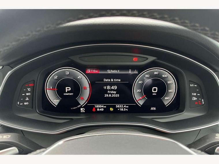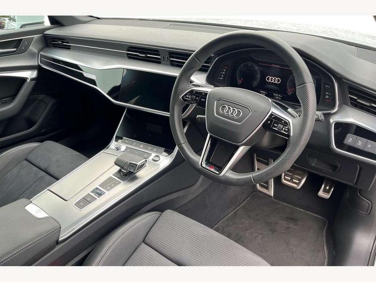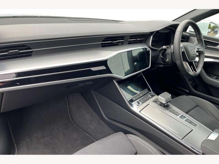 7" high resolution colour driver information display system, Audi connect safety and service (e-call), Audi connect with Amazon Alexa Integration, Audi drive select, Audi parking system plus - acoustic and visual park assist system for front and rear, Automatic start/stop system with coasting functionality, Bluetooth interface, Lane departure warning system, Power operated tailgate, Progressive steering, Rear view camera, Service interval indicator, Smartphone interface includes wireless Apple carplay/Android Auto, Voice control system, 12V Mild hybrid, 24 litre AdBlue tank, Diesel particulate filter, Quattro on demand, Sports suspension, Audi front music interface, Audi sound system, Auxiliary input socket, DAB Digital radio, USB connection, Aluminium roof rails, Body coloured door mirrors, Electric front/rear windows, Frameless auto dimming interior rear view mirror, Front intermittent wipers, Headlight washers, Heat insulating darkened glass in side and rear windows, Heat insulating glass in windshield, LED signature front daytime running light, LED third brake light, Matrix LED headlights, Matt black side air intake grille with inlay in matt aluminium, Privacy glass, Radiator grille in anthracite black matt, single frame in chrome and horizontal struts in matt aluminium silver, Rain and light sensors, Rear side wing doors, Rear wiper, S line air inlet design with inlay in matt aluminium, S Line badge on front fender, S Line front and rear bumpers, S line rear diffuser and grille in matt black with matt aluminium tailpipes, S Line roof edge spoiler, S Line side skirts, Signature rear LED light design, 2 zone deluxe electronic climate control, 4 way electric lumbar support for driver and front passenger, 40/20/40 split folding 3 rear seat bench in 3 parts with rear centre armrest, Black cloth headlining, Black steering wheel insert, Electrically adjustable front seats with driver memory, Front centre armrest, Front head restraints, Heated front seats, Height/reach adjust steering wheel, Illuminated door sill trims with S logo, Illuminated sun visors with vanity mirrors, ISOFIX child seat mounting and Top Tether with front passenger airbag deactivation, Leather gear knob, Luggage compartment system, Perforated leather steering wheel with contrast stitching, Rear headrests, S line front and rear black carpet floor mats with contrast stitching, Single front passenger seat, Stainless steel pedals and foot rest, LED Interior Ambient Lighting Pack - A6, Non smoking pack - A6, Technology pack - A6, 3 point seatbelts on all seats, Airbags - Front side, front and rear including head, Audi pre-sense front, Black seatbelts, EBD - Electronic brakeforce distribution, Electromechanical parking brake, Electronic Stability Control (ESC) including ABS, ASR and EDL, Extended pedestrian protection measures, Manual child proof rear door locks, Seatbelt monitoring, Tyre pressure warning light, Warning triangle and first aid kit, Anti theft alarm with tow away protection, Anti-theft wheel bolts and wheel loosening detection, Immobiliser, Keyless Go, Remote central locking, Matt brushed aluminium dark inlays,