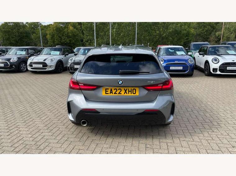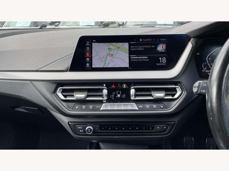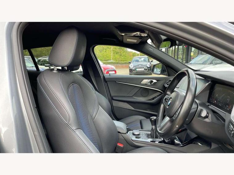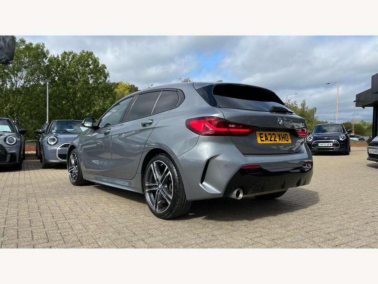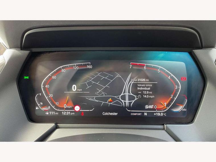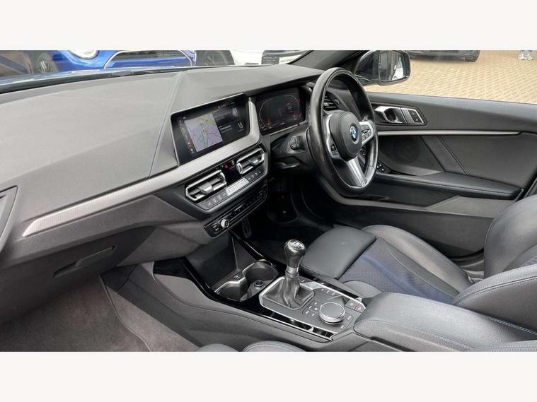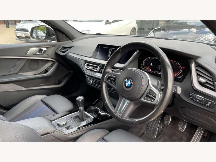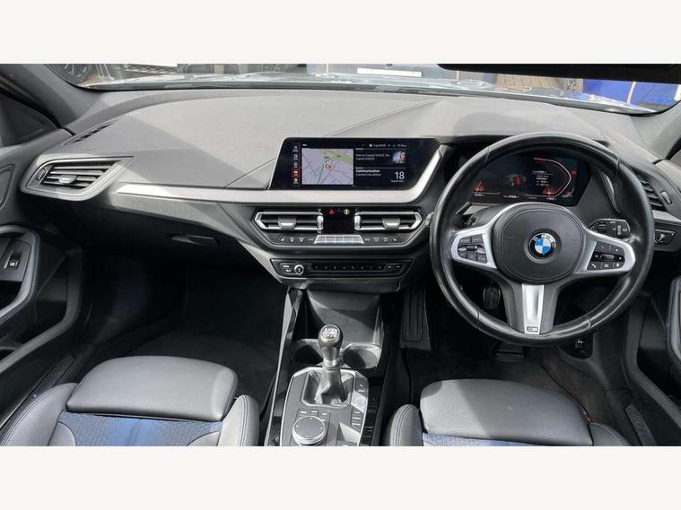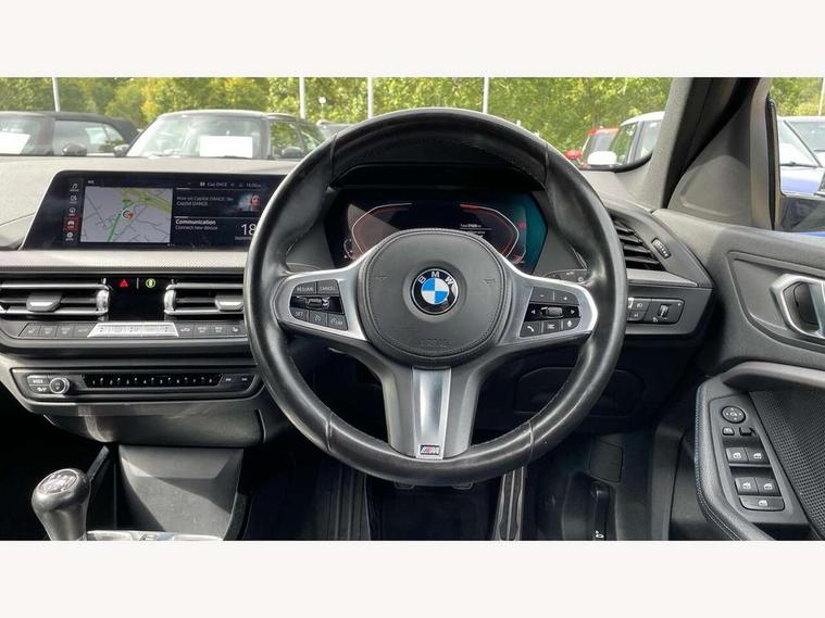 Active guard plus, Attentiveness assist, BMW ConnectedDrive online services, BMW Teleservices, Check Control warning system for monitoring of lights and door/luggage compartment open warning, Cruise control with brake assist, Eco pro mode, Front axle single joint with specific axle kinematics to minimise drive influences on steering + provide increased rigidity agile driving behaviour, Integrated owners handbook, Lane departure warning system, Oil sensor for level and grade, On board computer, Optimum shift indicator, Personal Profile, Pull away assistant, Rigidly mounted rear subframe - Multi link construction with separate spring / damper configuration and excellent driving characteristics, Speed limit Info including no-overtaking indicator, Speed limiter, Aluminium lightweight construction, Anti roll bar front and rear, Balancer shaft, Double VANOS twin scroll turbocharging system, Drive Performance Control, Electronic differential lock, High precision injection, M sport suspension, Petrol Particulate Filter, Twin tube gas filled shock absorbers with degressive characteristic curve, VALVETRONIC engine management, DAB Digital radio, Auto dimming rear view mirror, Automatic headlight beam throw control, Automatic windscreen wipers and automatic headlight, Body colour door handles, Body colour mirror caps, Body colour roof trims, Chrome 'M' logo side designation, Chrome exhaust twin tailpipes round 90mm in left, Chrome kidney grille frame with Satin Aluminium struts, Direction indicator side lights in exterior mirrors, Fading support, Folding side mirrors with auto dimming/folding wing mirrors with auto dimming, Follow me home headlights, Front and rear bumper system with replaceable deformation elements, Front and rear electric windows with open and close fingertip control, anti trap facility and comfort closing, Front door sill finishers in black plastic with M designation in metallic look, Green tinted heat protection glazing, Heated, electrically adjustable exterior mirror aspheric on driver side, convex on passenger side, High gloss shadowline window frame, Recess cover mirror frames and B/C pillar embelisher trim, High level third brake light, Integrated front windscreen with washer jets, LED daytime running lights, LED eyebrow turn indicators, LED front fog lights, LED Headlights, Lightweight engineering, Matt black air guide grilles, Matt black wheel arch trim, Model designation on electric bootlid, Nearside reverse light in rear light cluster, Preparation for high beam assistant, Rear fog lights, Rear side wing doors, Rear window wiper, Shark fin antenna, Trailer stabilisation logic, Visible VIN plate, Welcome lighting, 12V power socket in front centre console with blanking plug, 3 rear seat head restraints, 3 seat bench in 2nd row, 3 spoke sports leather steering wheel in black leather with black stitching and decorative finisher in pearl chrome, specific M badge + leather knob, Ambient interior lighting, Anthracite headlining, Black boot net with lashing eyes, Cargo function on 2nd seat row, Child seat ISOFIX attachment for two outer rear seats and front passenger seat with anchorage points, Conditioned based service, Driver and front passenger seat heating, Folding rear clothes hook, Four grab handles integrated in roof lining, Front and rear door pockets with bottle holders, Front and rear side armrest integrated into door trim, Front armrest, Front sports seats, Gearshift lever with M designation, Glove compartment, Height adjustable front head restraints, Luggage compartment for bag hooks on left and right, foldable luggage compartment liner and four lashing eyelets, Manual adjust steering wheel, Multi-function controls for steering wheel, Single front passenger seat, Storage compartment in centre console, Sun visors with vanity mirrors and insert tab, Two front centre console cupholders, Two zone automatic air conditioning, Velour floor mats, Additional interior lighting pack - 1 Series, BMW live cockpit professional pack- 1 Series, Connected pack professional - 1 Series, Interior lights pack - 1 Series, M Sport exterior styling aerodynamics pack - 1 Series, 2 tone horn, 3 point seatbelts on all seats, front pyrotechnic belt tensioners, stopper and belt force limiters, rear coded belt buckles, Airbags - Front driver/passenger, front and rear curtain head protection, front side, manual deactivation of front passenger airbag, Anti lock braking system (ABS) with brake assist, BMW emergency call, Brake drying, Braking readiness, Child proof locking system in rear door, City braking function, Comfort modes, Cornering brake control, Crash sensor activating central locking release, hazard warning lights, fuel cut off, interior lighting + activation of safety battery terminal clamp, Driver and front passenger seat belt security check, Dynamic stability control + (DSC+), Dynamic Traction Control - DTC, Electrically operated hand brake, Front and rear disc brakes, Seatbelt warning, Side impact protection, Tyre pressure monitoring system, Warning triangle and first aid kit, Central locking switch for all doors, fuel filler cap and luggage compartment, Deadlocking function system to all doors, Drive away locking system on all doors and luggage compartment with de-activated in iDrive settings, Locking wheel bolts, Remote control with integrated key with High-gloss Black inlay and M designation and 1 button for open/ close lock, window, open luggage compartment, Start/stop button illuminated in centre console with keyless engine start and auto start stop deactivation button, Thatcham Cat.1 alarm and immobiliser, Wheel slip limitation close to the actuator (ARB), Contrast stitching on instrument panel, Electrically powered 12V compressor, Reduced rolling resistance tyres,