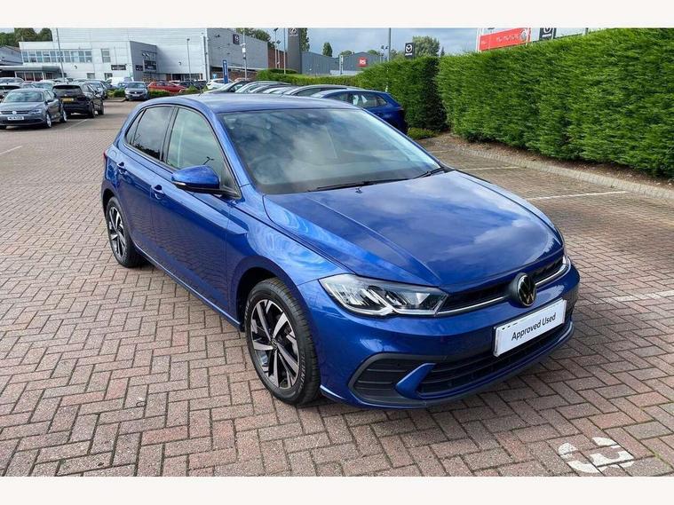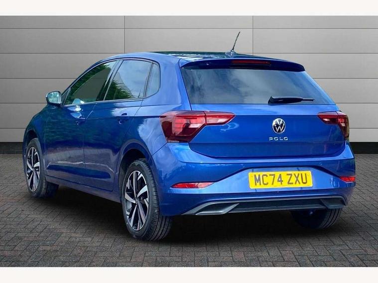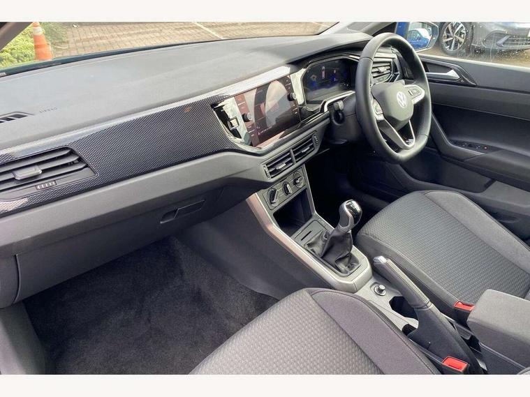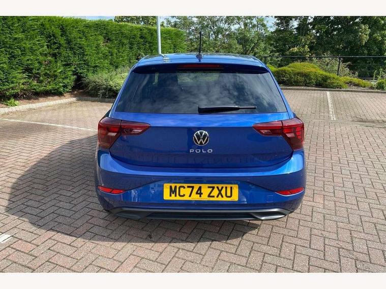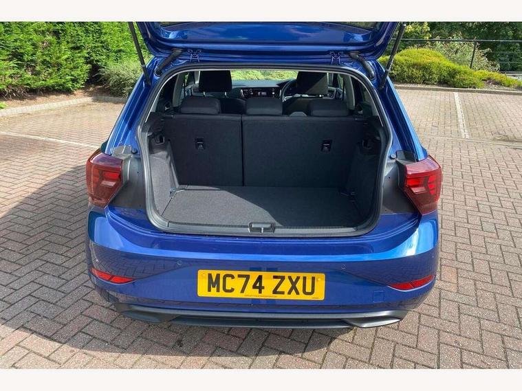 Adaptive cruise control without follow-to-stop and speed limiter, Advanced driver attention and drowsiness monitor, Bluetooth mobile phone interface, Dynamic road sign display, Emergency call service, Multifunction front facing camera for distance control, Park distance control, Power assisted speed sensitive steering, Preparation for navigation system with media and internet package, Preparation for We connect and We connect plus, Rear view camera, Speedo and rev counter, electronic odometer, trip, service interval display and exterior temperature gauge, Standard rear axle, Travel Assist - Lane keeping system and traffic jam assist, Travel assist including emergency assist, Trip computer, Warning signal and warning light for front and rear seatbelts not fastened, Washer fluid level indicator, Wireless app connect, Front wheel drive, Rear shock absorpion, Start-stop system with battery regeneration (recuperation - energy recovery during braking), DAB Digital radio, Diversity antenna for FM reception, Front and rear 6 speakers, Automatic dimming interior rear view mirror, Automatic headlight control with LED separate daytime running lights with coming/leaving home function, Body colour bumpers with chrome inserts, Body colour door handles, Body colour door mirrors, Electric front windows, Engine badge deletion, Headlight range adjustment, Heat insulating and laminated safety glass windshield, LED Headlights, LED rear combination lamps, Power folding adjustable/heated exterior mirrors and front passenger exterior mirror lowering function, Rain sensor, Rear electric windows, Rear fog light, Rear side wing doors, Rear tinted glass from B-pillar backwards approx 65% tinted, Rear windscreen washer and wiper with interval delay, Third brake light, 12V power socket in centre console, 2 front and 2 rear reading lights with switch off delay and dimmer, 2 USB-C ports in the front, 2 USB-C charging sockets on the center console in the rear, 3 rear head restraints, 60/40 split folding rear seat and rear seat bench not split, Ceramique roof lining, Chrome plated radiator grille inserts, air vent surrounds and light switch surrounds, Door and side trim panel, Driver and front passenger seat height adjustment, Driver/passenger sunvisors with illuminated vanity mirrors, Front centre armrest, Front seat backrest storage pockets, Front standard seats, Handbrake lever handle in leather, Hartley/Thomas cloth upholstery, Headliner in recycled material, Isofix child seat preparation easy-fit (for two outer rear seats, and front passenger seat) compatible with I-size, Leather trimmed gear knob, Luggage compartment cover, Luggage compartment lighting, Removable luggage compartment floor, Single front passenger seat, Standard climatic zones, Standard pedal cluster, Three spoke leather wrapped multifunction steering wheel, Light and vision pack - Polo, 3 point height adj front seatbelts + pretensioners, 3 point seat belt for centre rear seat, 3 point seatbelts, outer rear with ECE lable, ABS, Driver and front passenger airbag with front passenger airbag deactivation, Drivers and front passengers safety optimised head restraints, ESC (Electronic stability control) + EDL (Electronic Differntial lock) and ASR (Traction control), Extended and predictive pedestrian/ cyclist protection, Front assist with autonomous emergency braking (for Adaptive Cruise Control ACC up to 130 mph), Front curtain and side airbags with center airbag, Front disc brakes, Hill hold control, Manual child lock in rear doors, Rear drum brakes, Single tone horn, Tyre pressure loss indicator, Alarm with interior protection, Anti-theft alarm system with interior monitoring, backup horn, and towing protection, Anti-theft wheel bolts, Electronic engine immobiliser, Lava stone black gloss/matt decorative inserts in dash and front door panels, 16" Torsby alloy wheels, Low rolling resistance tyres,
