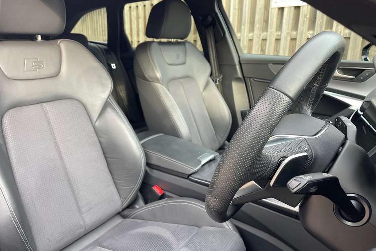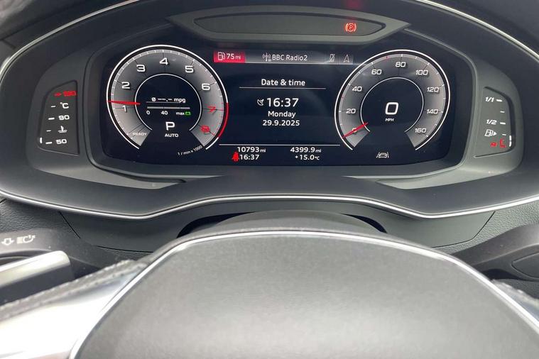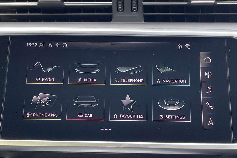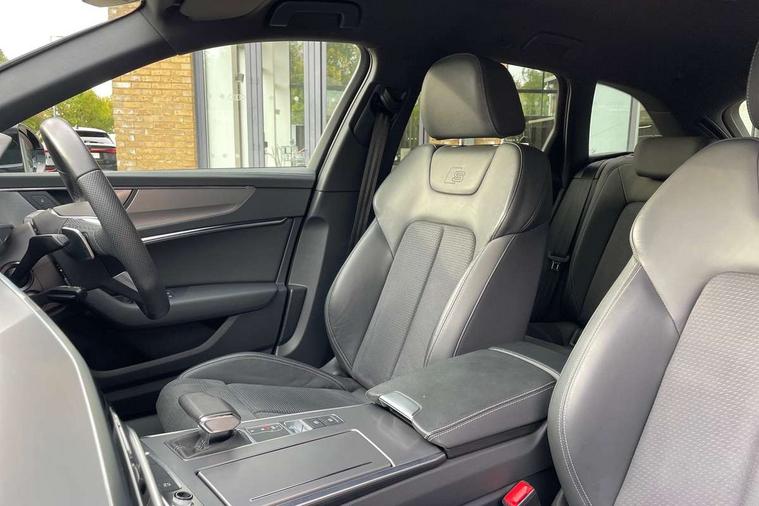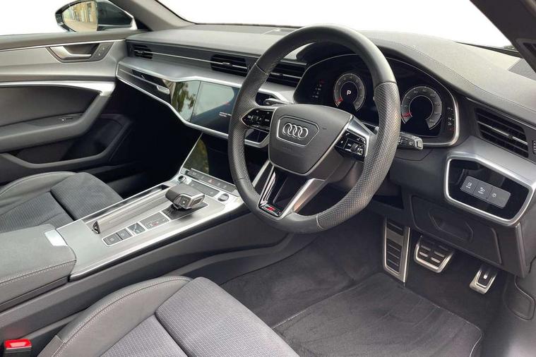 7" high resolution colour driver information display system, Audi connect safety and service (e-call), Audi connect with Amazon Alexa Integration, Audi drive select, Audi parking system plus - acoustic and visual park assist system for front and rear, Automatic start/stop system with coasting functionality, Bluetooth interface, Lane departure warning system, Power operated tailgate, Progressive steering, Rear view camera, Service interval indicator, Smartphone interface includes wireless Apple carplay/Android Auto, Voice control system, Sports suspension, Audi front music interface, Audi sound system, Auxiliary input socket, DAB Digital radio, USB connection, Aluminium roof rails, Body coloured door mirrors, Electric front/rear windows, Frameless auto dimming interior rear view mirror, Front intermittent wipers, Headlight washers, Heat insulating darkened glass in side and rear windows, Heat insulating glass in windshield, LED signature front daytime running light, LED third brake light, Matrix LED headlights, Matt black side air intake grille with inlay in matt aluminium, Privacy glass, Radiator grille in anthracite black matt, single frame in chrome and horizontal struts in matt aluminium silver, Rain and light sensors, Rear side wing doors, Rear wiper, S line air inlet design with inlay in matt aluminium, S Line badge on front fender, S Line front and rear bumpers, S line rear diffuser and grille in matt black with matt aluminium tailpipes, S Line roof edge spoiler, S Line side skirts, Signature rear LED light design, 2 zone deluxe electronic climate control, 4 way electric lumbar support for driver and front passenger, 40/20/40 split folding 3 rear seat bench in 3 parts with rear centre armrest, Black cloth headlining, Black steering wheel insert, Electrically adjustable front seats with driver memory, Front centre armrest, Front head restraints, Heated front seats, Height/reach adjust steering wheel, Illuminated door sill trims with S logo, Illuminated sun visors with vanity mirrors, ISOFIX child seat mounting and Top Tether with front passenger airbag deactivation, Leather gear knob, Luggage compartment system, Perforated leather steering wheel with contrast stitching, Rear headrests, S line front and rear black carpet floor mats with contrast stitching, Single front passenger seat, Stainless steel pedals and foot rest, LED Interior Ambient Lighting Pack - A6, Non smoking pack - A6, Technology pack - A6, 3 point seatbelts on all seats, Airbags - Front side, front and rear including head, Audi pre-sense front, Black seatbelts, EBD - Electronic brakeforce distribution, Electromechanical parking brake, Electronic Stability Control (ESC) including ABS, ASR and EDL, Extended pedestrian protection measures, Manual child proof rear door locks, Seatbelt monitoring, Tyre pressure warning light, Warning triangle and first aid kit, Anti theft alarm with tow away protection, Anti-theft wheel bolts and wheel loosening detection, Immobiliser, Keyless Go, Remote central locking, Matt brushed aluminium dark inlays,