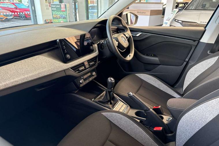 8" Digital display, Advanced driver attention and drowsiness monitor, Bluetooth system, E-call, Front assist system, PAS, Rear parking sensors, Service indicator, Speed limiter, Traffic sign recognition, Wireless smartlink, 4 USB C ports, 8 Speakers, 8.25" Skoda infotainment display, DAB Digital radio, Auto dimming rear view mirror, Automatic headlight control with coming home and leaving home feature, Automatic headlights, Black roof rails, Body colour bumpers, Body colour door mirrors and handles, Chrome grille surround, Front and rear electric windows, Full LED headlights, Heated rear window, LED daytime running lights, LED front turning lights, LED high beam, LED low beam, LED third brake light, Rear side wing doors, Rear wiper, Ticket holder inside windscreen, 12V socket in luggage compartment, 3 seat bench in 2nd row, Black hotstamping, Cargo elements, Chrome inner door handles, Driver and passenger sun visors with vanity mirror, Dual zone climate control, Front and rear roof lights, Front centre armrest, Front head restraints, Glove compartment with illumination, Height adjustable driver seat, Height adjustable front passenger seat, Ice scraper, Inner circulation control with pollen filter, ISOFIX on front passenger seat, Isofix preparation for back seats, Krepp recycled decor inserts, Leather gearknob and handbrake lever, Loft cloth upholstery, Manual lumbar support for front seats, Net package and top tether hooks in boot space, Net under rear shelf, Overhead glasses storage compartment, Pocket on the back of both front seats include mobile phone pockets, Rake/reach adjustable steering wheel, Reading lights, Satin black door inserts, Single front passenger seat, Textile floor mats, Third rear headrest, Top tether for front passenger seat, Umbrella in driver's door, 3x3 point rear seatbelts, Airbags - driver and front passenger, Disc brakes, ESP, Extended and predictive pedestrian/cyclist protection, Front passenger airbag deactivation switch, Front side airbags with curtain airbags, Hill hold control, Manual leather parking brake, Manual rear child locks, One tone horn, Seatbelt reminder for driver an co-driver, Traction control, Tyre pressure monitor, Anti-theft alarm system with interior monitoring, backup horn, towing protection and remote central locking with SAFE system, Anti-theft wheel bolts, Electronic engine immobilizer,