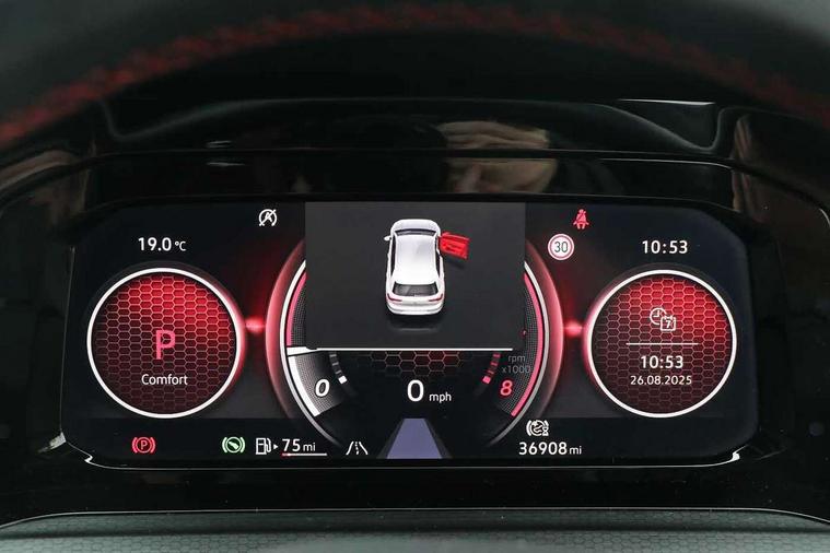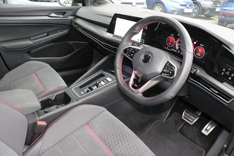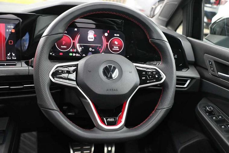 Adaptive cruise control (ACC) with speed limiter and front assist (reacting to vehicles pedestrians and cyclists), Car2X communication, Digital cockpit pro - 10.25" high resolution TFT dash display screen with customizable menus and information, Driver alert system, Driver profile selection, Dynamic road sign display, eCall - Emergency call service for SOS calls to emergency response, Lane assist, Lane change assistant, Mobile phone interface with wireless inductive charging function, Progressive steering, Speedo, rev counter, electronic odometer, trip, service interval display, exterior temperature and fuel gauge, Start/Stop function, Travel assist with emergency side assist with electrically foldable door mirrors, Warning buzzer and light for front seatbelts unfastened, Wireless app connect, Front differential lock, Petrol Particulate Filter, XDS electronic differential lock for improved traction and handling, Premium USB cable in choice of either Apple or Android smartphone compatibility, '45' lettering on the side sill panel and on the boot lid, Advanced high beam control dynamic light assist for LED matrix headlamps, Akrapovic titanium sport exhaust system, Ambient lighting, exterior illuminated styling elements at the sides, Auto dimming rear view mirror, Automatic headlamp activation with Coming home and Leaving home feature, Black painted roof, upper shell of the spoiler and door mirror covers, Body colour bumpers, Body colour door handles, Front and rear electric windows, GTI Clubsport styled bumpers, Heat insulating glass windscreen, Heated rear windscreen, High level 3rd brake light, Highway light, Illuminated front grille, IQ.Light - LED Matrix headlights, dynamic headlight control with advanced high beam control matrix dipped main beam + LED DRL + 22 LED lights, LED front fog lights with 5 honeycomb design, LED License plate illumination, LED rear combination lamp inlcuding dynamic turn signal, Performance rear spoiler, Rain sensor, Rear fog light on one side and reversing lights on both sides, Rear tinted glass 65% light absorbing from B pillar backwards, Rear windscreen washer and wiper with interval delay, Remote electrically heated, adjustable and foldable door mirrors, including door mirror puddle lights and reverse activated kerb-view adjustment on pa, Welcome light, 12V socket in front centre console, 12V socket in luggage compartment, 3 rear head restraints, 3 zone climate with controls in the rear, 45 decal and badge on steering wheel, Aluminium gear knob, Ambient lighting - Customisable 30 colour ambient lighting, Black roof lining, Brushed stainless steel pedals, Centre console, Chrome plated surround to electric mirror button, window switch and air vent surrounds, Door insert in Artvelours, Drivers and front passengers sun visors with vanity mirrors, Front + rear carpet mats, Front centre armrest with storage compartment, Front cupholders x 2, Front reading lights x 2 incorporating LED technology, Front seat lumbar support adjuster, Front sports seats, Glovebox, GTI lettering on the backrests of the front sport seats, Height adjustable front seats, Height and reach adjustable steering wheel, Isofix child seat preparation for 2 rear child seats and front passenger seat, Leather wrapped multifunction sports heated steering wheel with paddle shift, Luggage compartment lighting, Removable luggage compartment cover, Side trim panel and arm support in leatherette, Split folding backrest with centre armrest and unsplit rear seat bench, Woven fabric storage compartments in front and rear doors, 3 point height adj front seatbelts + pretensioners, 3 rear three point seatbelts, ABS, Driver and front passenger airbag with front passenger airbag deactivation, Drivers and front passengers safety optimised head restraints, Electronic parking brake with auto hold, ESC (Electronic Stability Control), Extended pedestrian protection measures, Front and rear passengers curtain airbag system including front side airbags, Front disc brakes, Rear disc brakes, Two tone horn, Tyre pressure monitoring system, Alarm with interior protection and deactivation via infotainment system, Electronic engine immobiliser, Keyless entry with start/stop button on centre console, Black metal chrome decorative inserts in dash and front door trim panels, Soul dashboard, 19" Scottsdale alloy wheels with anti theft wheel bolts, Tyre mobility kit Includes 12V compressor and tyre sealant,