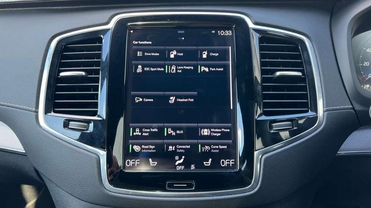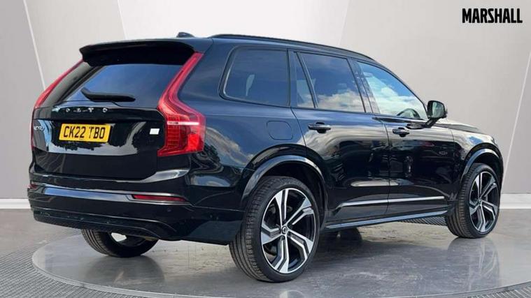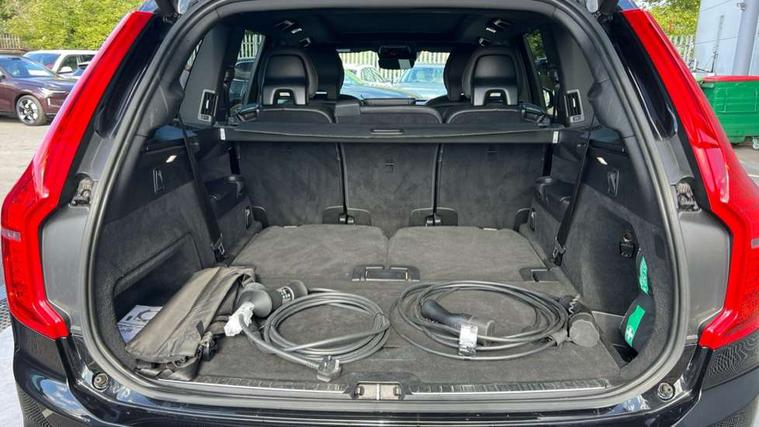 12.3" Active TFT crystal driver's instrument display, 9" centre console portrait touch screen, Adjustable steering wheel force, Bluetooth hands free telephone connection, Drive mode settings, Driver alert control with lane keeping aid, Driver assistance (pilot assist and adaptive cruise control), Driver awareness - Blind spot information system with steer assist, cross traffic alert with autobrake and rear collision warning and mitigation, Emergency call service, Front and rear park assist, Handsfree power tailgate opening and closing, Oncoming Lane Mitigation, Sensus navigation with European mapping and traffic information, Service interval indicator, Speed limiter, Speed sensitive steering, Trip computer, Voice activated control for key functions, Volvo on call, 7m Charge Cable with 3 Pin Plug, 7m Type 2/mode 3 charge cable, 8 speed automatic transmission with start/stop + manual change functions, All wheel drive system, Electric rear axle drive, Lithium-ion battery, Recharging port located in nearside front wing, Touring chassis, DAB Radio (Digital Audio Broadcasting), Steering wheel remote infotainment controls, Adaptive brake lights with high level LED brake lights, Auto dimming interior + exterior mirrors, Automatic headlight levelling system, Automatic LED Headlights + Active high beam incorporating daytime running lights, Body colour bumpers, Dark tinted windows for rear side windows and cargo area, Dual integrated exhaust pipes with high gloss black surround, Electric folding and heated door mirrors, Front and rear power windows, Heated washer nozzles, High gloss black Deco lower front bumper, High gloss black door mirrors, High gloss black lower rear valance, High gloss black mesh front grille with surround, High gloss black window surround, Home safe and approach lighting, Integrated roof rails in high gloss black, Puddle lights, Rain sensor with automatic windscreen wiper activation, Rear side wing doors, Rear wash/wipe with intermittent wipe setting, Roof antenna, Roof spoiler, Visible VIN plate, 12V socket front tunnel console, rear passenger compartment and cargo area, 2 seat bench in 3rd row, 3 seat bench in 2nd row, 4 Zone electronic climate control + cooled glovebox, A-pillar parking ticket holder, Ambient door and instrument panel lighting, B Pillar ventilation, Bright metal luggage threshold, Cargo divider with grocery bag holder, Centre console cupholders and storage, Charcoal headlining, Driver's side lower dashboard storage compartment, Front and rear door pocket and front cupholder illumination, Front footwell and side step illumination, Front headrests, Front seat cushion extensions, Heated front seats, Height/reach adjustable steering column, Illuminated luggage compartment, Illuminated tailgate, Illuminated vanity mirrors + ticket holder, Illumination lockable glovebox compartment, Integrated sun curtains in rear doors, Load protection net, Lower dashboard, tunnel console, Lower door panel in blond, Multicolour theatre lighting, Outboard armrest with cupholder and storage for third row passengers, Power driver seat with multi directional lumbar support and memory for seat and exterior mirrors, Power folding 2nd row headrests, Power passenger seat with multi directional lumbar support and memory, Rear footwell and side step illumination, Rear headrests, Recharge aluminium tread plates, Semi automatic load cover, Single front passenger seat, Sports floor mats, Sports leather gear knob, Sports pedals, Underfloor cargo storage, 7 three point seatbelts, City safety includes pedestrian, cyclist and large animal detection and front collision warning with full auto brake, Drivers knee airbag, Dual stage driver/passenger airbags, First aid kit, Front seats SIPS airbags, Hill descent control, Hill start assist, IC (Inflatable Curtains) - Full Length, Passenger airbag cut-off switch, Power parking brake with auto hold function, Road sign information display, Run off Road Mitigation, Run off Road Protection, Seatbelt reminder and pretensioners for all seats, SIPS (Side Impact Protection System), Slippery road and hazard light alert, Stability and Traction Control with Spin control, Engine Drag Control and Corner Traction Control, Tyre pressure monitoring system, Vehicle deceleration control with Anti-lock Brake System, Electronic Brake Distribution and Emergency Brake Assist, Warning triangle, WHIPS whiplash protection system - front, Anti-theft alarm including immobiliser/volume sensor + level sensor, Care key with user defined top speed, Key integrated remote control central locking + fuel flap with deadlocking system and auto open/close power windows, Keyless drive (includes keyless entry and keyless start) with remote tag, Locking wheel nuts, Private locking for glovebox and tailgate, Metal mesh inlays, Tailored Instrument Panel and Door Tops with Contrast Stitching, Tyre sealant kit + 12v compressor,