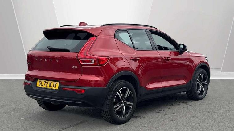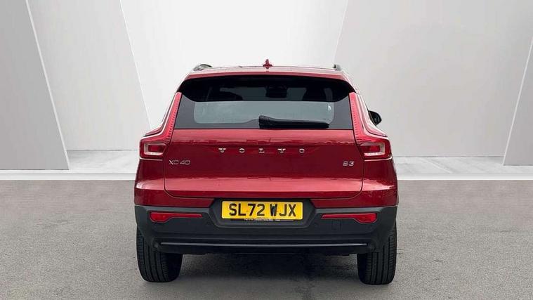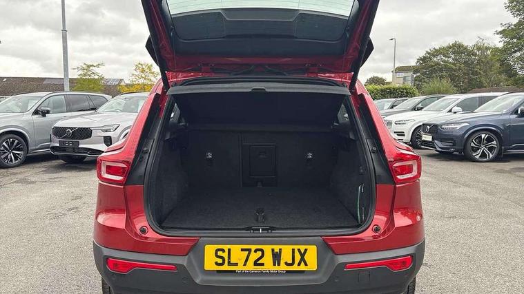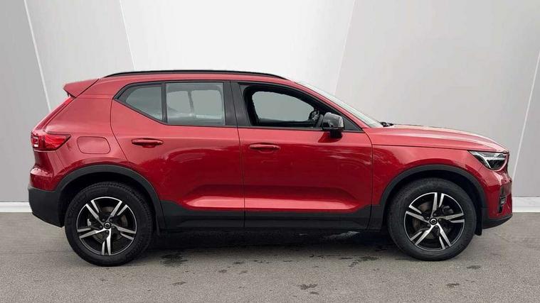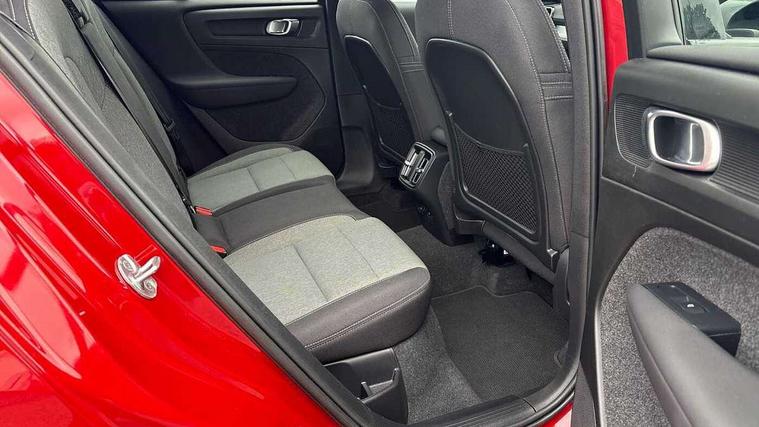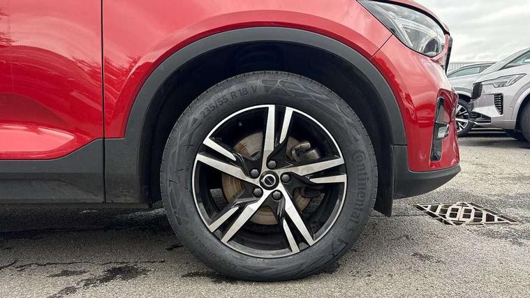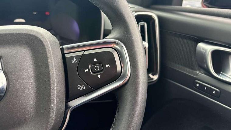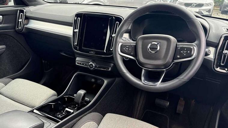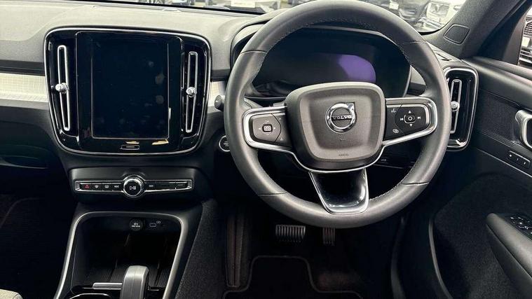 12.3" Progressive Driver Display, 9" centre console portrait touch screen, Adjustable steering wheel force, Bluetooth hands free telephone kit, Cruise control, Driver awareness - blind spot information system with steer assist, cross traffic alert with autobrake, rear collision warning and migitation, E-call, Front park assist, Google automatic services - Nav with google maps, apple carplay/android auto, voice recognition with google assistant, Hands free power tailgate, Lane keep assist with driver alert control, Oncoming Lane Mitigation, Rear park assist, Rear park assist camera, Speed limiter, Speed sensitive steering, Wireless/Inductive Mobile Phone Charging, Dynamic chassis, DAB Digital radio, High performance sound, 8 speakers/250W, front USB and 2 rear type C USB, Steering wheel mounted remote controls, Adaptive brake lights with high level LED brake lights, Auto dimming feature for exterior door mirrors, Auto dimming interior mirror, Automatic headlamp levelling, Automatic LED Headlights + Active high beam incorporating daytime running lights, Front aluminium tread plates, Front and rear electric windows, High gloss black front and rear skid plate, High gloss black mesh front grille with high gloss black surround, High gloss black window trim, Home safe and approach lighting, Integrated roof rails in high gloss black, LED front fog lights, Puddle lights, Rain sensor with automatic windscreen wiper activation, Rear side wing doors, Rear wiper, Roof antenna, Roof spoiler, Visible VIN plate, 12V socket in front tunnel console and luggage compartment, 2-Zone electronic climate control with CleanZone air quality system and pollen filter, 3 seat bench in 2nd row, 3 Spoke tailored steering wheel with chrome trim, 60/40 versatile split folding rear seat, A-pillar parking ticket holder, Ambient front door and instrumental panel lighting, Centre console cupholders and storage, Flexible load floor and grocery bag holder, Floor mats, Front door pocket and front cupholder illumination, Front footwell illumination, Front headrests, Front reading light and theatre lighting, Front seat cushion extensions, Front tunnel pocket, Glovebox bag hook, Heated front seats, Height adjustable passenger seat, Height/reach adjustable steering column, High gloss centre tunnel deco, Illuminated glovebox, Illuminated luggage compartment, Illuminated tailgate, Illuminated vanity mirrors, Integrated waste bin, Isofix attachments on outer rear seats, Load protection net, Multi directional lumbar support, Power driver seat with memory + exterior mirrors memory, Rear armrest / integral cup holders / storage tray, Rear headrests, Rear reading and courtesy lights, Single front passenger seat, Underfloor cargo storage, Climate pack without heated front seats - XC40, 3x3 point rear seatbelts, City safety with steering support with Pedestrian + cyclist + front collision warning with full auto brake and rear auto brake, Drivers knee airbag, Dual stage driver/passenger airbags, Electronic parking brake with auto hold, First aid kit, Front and outer rear seatbelt reminder and pretensioners, Front seats SIPS airbags, Hill descent control, Hill start assist, Inflatable curtain, Passenger airbag cut-off device, Power child locks on rear doors, Road sign information display, Run off Road Mitigation, Run off Road Protection, SIPS (Side Impact Protection System), Slippery road and hazard light alert, Stability and Traction Control with Spin control, Engine Drag Control and Corner Traction Control, Tyre pressure monitoring system, Vehicle deceleration control with Anti-lock Brake System, Electronic Brake Distribution and Emergency Brake Assist, Warning triangle, WHIPS whiplash protection system - front, Anti-theft alarm including immobiliser/volume sensor + level sensor, Key integrated remote control central locking + fuel flap with deadlocking system and auto open/close power windows, Keyless drive includes keyless entry and keyless start, Locking wheel nuts,