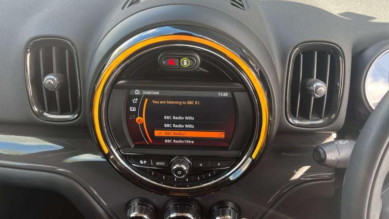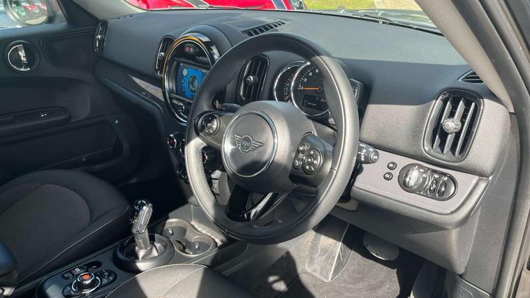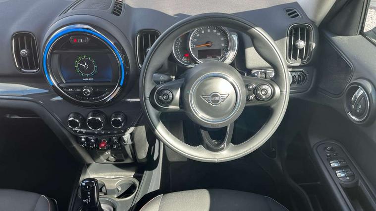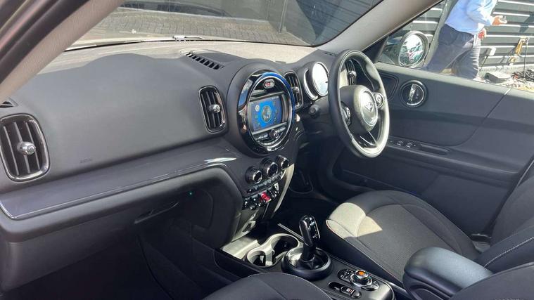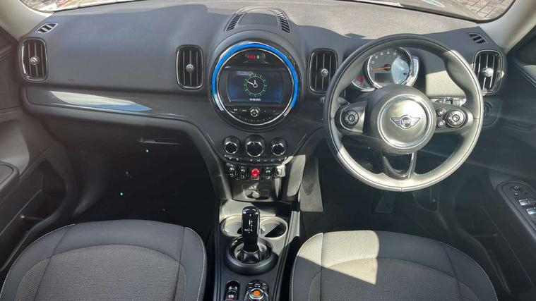 Active Guard incl speed limiting and lane departure functions with auto steering, and front collision warning with brake intervention, Automatic start/stop function with brake energy recuperation, Electro-mechanical speed dependant steering assistance, Instrument cluster, Mini E-call, MINI TeleServices, On board computer, Rear parking distance control, Double Vanos system, Fully variable valve control, High precision injection, Steptronic transmission with double clutch, FM tuner and DAB digital radio, Body colour fuel filler cap, Day time driving lights, Door sill strips, Dynamic brake lights, Electric windows, Heated rear window, Heated windscreen washer jets, Left exhaust tailpipe with chrome finisher, Model logo, Model logo on Tailgate, Radiator grille, Rain sensor with auto headlights, Rear fog lights, Rear window wiper, Side scuttle panel with integrated indicator, Split rear doors, Sun/heat protection glass, White indicator lenses, 12V Accessory socket in centre console, 360L luggage compartment capacity, 4 lashing eyes in luggage compartment, 40:20:40 split folding rear seats, Chrome interior highlights, Colour line - Carbon black, Cupholders, English handbook, Front headrests, Glove compartment, Headliner with grab handles and clothes hooks, Height and length steering column adjustment, Isofix rear child seat preparation, Leather gearshift lever and handbrake gaiters, LED reading lights, vanity mirror lights, front foot well light and spotlight on front seats, Manual air conditioning, Mechanical seat adjustment, driver seat height adjust, forward/back and front seats backrest, Multifunction steering wheel, Passenger seat height adjuster, Rear headrests, Storage compartments in doors, Sunvisors with vanity mirrors, Excitement pack - Countryman, Navigation pack - Countryman, 2 tone horn, 3 point seatbelts on all seats, 6 Airbags - front, side, head and seat belt tensioners, Anti-lock braking system (ABS), DSC - Dynamic Stability Control, Electronic handbrake, Front and rear disc brakes, Hill start assist, Tyre pressure monitoring system, Alarm system with tilt sensor, monitoring doors, bonnet interior and tailgate, Auto drive away locking, Deadlocking function, Electronic vehicle immobiliser, Locking wheel bolts, Start/stop toggle with keyless go, Tool kit,