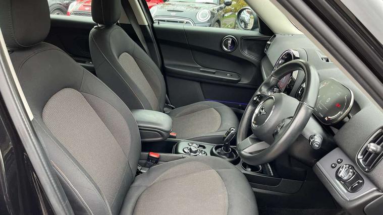 Active Guard incl speed limiting and lane departure functions with auto steering, and front collision warning with brake intervention, Automatic start/stop function with brake energy recuperation, Compatible mobile phone bluetooth with audio streaming, Cruise control with brake assist, Electro-mechanical speed dependant steering assistance, Instrument cluster, On board computer, Rear parking distance control, 51 Litre fuel tank, Double Vanos system, Fully variable valve control, High precision injection, Performance Control, Steptronic transmission with double clutch, 6 speakers, FM tuner and DAB digital radio, Body colour fuel filler cap, Day time driving lights, Door sill strips, Dynamic brake lights, Electric windows, Heated rear window, Heated windscreen washer jets, LED fog lights, LED Headlights, Left exhaust tailpipe with chrome finisher, Model logo, Model logo on Tailgate, Radiator grille, Rain sensor with auto headlights, Rear fog lights, Rear window wiper, Side scuttle panel with integrated indicator, Split rear doors, Sun/heat protection glass, White indicator lenses, 12V socket in centre console, 3 spoke sport leather steering wheel + limiter function and audio controls, 360L luggage compartment capacity, 4 lashing eyes in luggage compartment, 40:20:40 split folding rear seats, Chrome interior highlights, Colour line - Carbon black, Cupholders, English handbook, Floor mats, Front headrests, Glove compartment, Headliner with grab handles and clothes hooks, Height and length steering column adjustment, Interior lighting with 12 basic colours selectable via toggle switch in roof, Isofix rear child seat preparation, Leather gearshift lever and handbrake gaiters, LED reading lights, vanity mirror lights, front foot well light and spotlight on front seats, Manual air conditioning, Mechanical seat adjustment, driver seat height adjust, forward/back and front seats backrest, Multifunction steering wheel, Passenger seat height adjuster, Rear headrests, Storage compartments in doors, Sunvisors with vanity mirrors, Excitement pack - Countryman, Navigation pack - Countryman, 2 tone horn, 3 point seatbelts on all seats, 6 Airbags - front, side, head and seat belt tensioners, Anti-lock braking system (ABS), DSC - Dynamic Stability Control, Electronic handbrake, Front and rear disc brakes, Hill start assist, Tyre pressure monitoring system, Alarm system with tilt sensor, monitoring doors, bonnet interior and tailgate, Auto drive away locking, Deadlocking function, Electronic vehicle immobiliser, Locking wheel bolts, Start/stop toggle with keyless go, Tool kit,