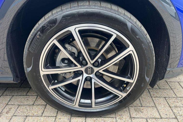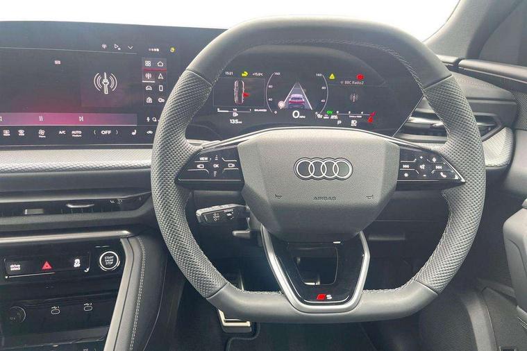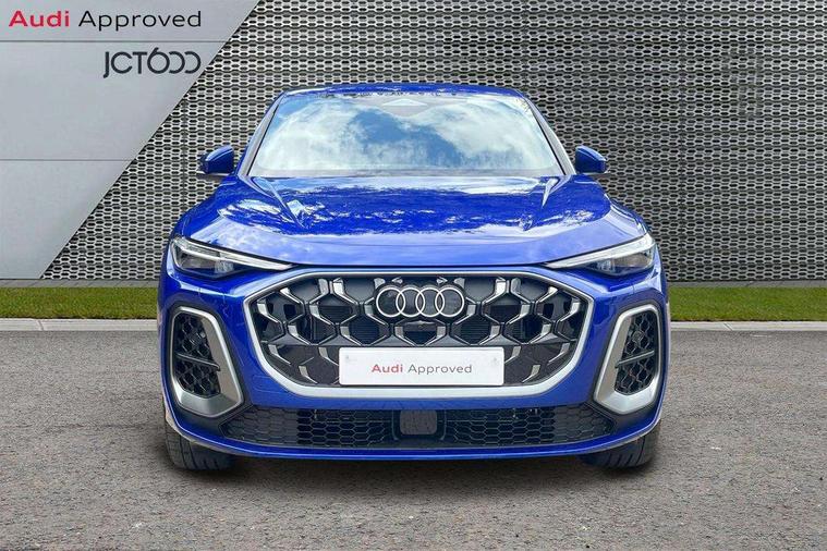 Adaptive cruise control, Advanced driver attention alert, Audi application store, Audi connect emergency call and service, Audi drive select, Audi smartphone interface, Audi virtual cockpit plus with 11.9" OLED colour display, Camera based traffic sign recognition, Fatigue monitor, Front cross traffic intersection assist, Lane departure warning system, MMI navigation plus with high resolution 14.5" OLED touchscreen colour display, Park assist plus, Parking system plus with 360 display, PAS, Reversing camera, Swerve assist and turn assist, Traffic sign based speed limiter, 2 USB-C ports in both the front and rear, Audi sound system impressive sound with 8 loudspeakers including centre speaker and subwoofer, 6-channel amplifier with a total output of 180 watts, DAB Digital radio, Smartphone compartment with wireless charging, Auto dimming rear view mirror, Body coloured door mirrors, Coming/leaving home lighting function, Electrically adjustable heated and folding + automatically dimming exterior mirrors, Front and rear electric windows, Front door sill trims with aluminium inlays, illuminated with 'S' logo, Headlight cleaning system, Heated rear window, High beam assist, High gloss window surrounds, Inlay and front air inlets in matt anthracite chrome, LED headlights plus incl. digital DRL, dynamic coming and leaving home function with turning/all weather/motorway/manouevring and intersection lights, LED rear lights pro incl. dynamic rear indicators and illuminated light strip with animated coming and leaving home function, Logo projection light in exterior mirrors, Privacy glass, Projection light for rear window, Radiator grille in phantom black, Rear and side windows with heat insulating glass, Rear honeycombe grille in matt black with inlay in matt anthracite chrome, Rear side wing doors, Rear wash/wipe, S Line badge on the front wings, S line bumpers in contrasting Volcano grey metallic paint finish, Towbar preparation, Windscreen with acoustic glazing, 3 rear head restraints, 3 seat bench in 2nd row, 3 spoke leather steering wheel with multi-function buttons with touch control, flattened on top and bottom, with S badging and contrast stitching, 40:20:40 split folding rear seat bench with centre armrest and cup holders, Comfort centre armrest, Deluxe 3 zone electronic climate control, Front and rear floor mats, Front seats with manual adjustment for position and 4-way electric lumbar support, Front sport seats with integrated head reastrains, Headlining in black cloth, Heated front seats, i-Size child seat mounting on the front passenger side and outer rear seats, i-Size and top tether on the outer rear seats, Interior trim in aluminium look, Luggage compartment lid, electrically opening and closing, Manual steering column adjustment, S embossed logo on front sport seats, Single front passenger seat, Softwrap in leatherette, Stainless steel pedals and footrest, Steering wheel grips in perforated leather and shift paddles, Ambient lighting package plus - Q5, Storage and luggage compartment pack - Q5, 3x3 point rear seatbelts, ABS, Acoustic vehicle alerting system, Driver and front passenger airbag with passenger airbag deactivation, Electric child safety locks, First aid kit with warning triangle and high visibility vests, Front emergency brake assist, Front side airbags with head airbag system and front interaction airbag, Hill hold assist, Rear seat occupant reminder, Tyre pressure loss indicator, Anti theft alarm, Anti-theft wheel bolts, Remote control key with SAFELOCK and keyless go, Accent surfaces and control buttons in gloss black, Anthracite matt brushed aluminium inlays with linear embossing, Black dashboard with contrast stitching, Upper and lower interior elements in artificial leather, Tyre repair kit,