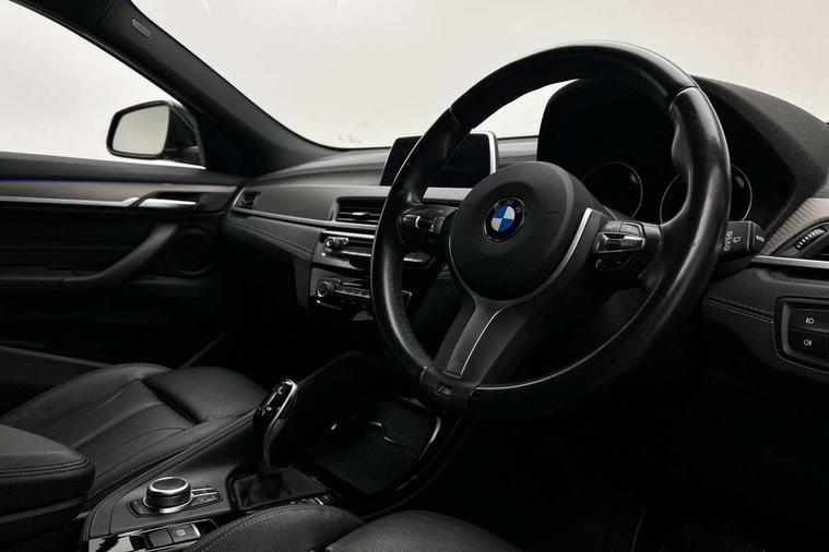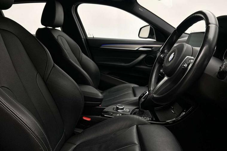 Automatic powered tailgate, Bluetooth hands free facility with USB audio interface, BMW Online services, BMW remote services, BMW Teleservices, Brake pad wear indicator in front and rear, Check Control warning system for monitoring of lights and door/luggage compartment open warning, Eco pro mode, Instrument cluster with black optic and 5.7" colour display + speedometer + tachometer + fuel gauge + instant fuel economy, Lights on warning by audio warning signal when ignition is switched off, On board computer - average speed+fuel consumption, service interval, clock/date, odometer/trip meter, outside temperature display and ice warning, Optimum shift indicator, Personal Profile, Real time traffic information, Speed limiter, TMC for lifetime of vehicle, 12V compressor with integrated sealant injection bottle and hose, Anti roll bar front and rear, Balancer shaft, Drive performance control with ECO PRO comfort + sport mode, Dual clutch sport automatic transmission, Electronic differential lock, Twin tube gas filled shock absorbers with degressive characteristic curve, 2x USB sockets in front, Bluetooth audio streaming, BMW professional radio with CD player, DAB Digital radio, Steering wheel mounted audio/telephone controls, Adjustable headlights, Automatically dimming rear view mirror, BMW badge on bonnet, tailgate with integrated tailgate release and C pillars, Body colour door handles, Body colour mirror caps, Body colour roof trims, Chrome kidney grille with black vertical slats, Clear lenses direction indicator lights, Direction indicator side lights integrated in exterior mirrors using LED technology, Door mirror integrated indicators, Dynamic brake lights, Electrically adjustable and heated door mirrors glass aspheric on driver's side and convex on passenger side, Fingertip control / anti-trap function on electric window, Front and rear bumper system, Front and rear electric windows, Frozen grey front air intakes, Green tinted heat protection glazing, Halogen headlights, Heated windscreen washer jets, High gloss black front side air intake with matt black insert, High gloss shadowline in mirror frame and B-Pillar trim, High level third brake light, LED front fog lights, LED headlights with extended contents - cornering, high beam assist, LED day running lights with dynamic beams-through for urban and motorway, Lightweight engineering, M logo designation in side chrome, M Sport X aerodynamic bodystyling, Manual headlight beam throw control, Model designation in left tailgate, Rain sensor with automatic headlight activation, Rear fog lights, Rear tail lights with LED technology and 3D design, Rear window aerial, Rear window wiper with wash/wipe function, Reversing light in rear light cluster, Satin aluminium in window frame, recess covers, mirror frame and C-Pillar trim, Shark fin antenna, Twin chrome exhaust tailpipes, Visible VIN plate, Welcome lighting, 40:20:40 manually split folding rear seat with two tilt positions for backrest, Anthracite headlining, Armrest in centre section of rear seat backrest and folding, Automatic two zone climate control air conditioning, Child seat ISOFIX attachment for two outer rear seats and front passenger seat with anchorage points, Conditioned based service, Driver + passenger vanity mirrors, Driver and front passenger seat heating, Driver/passenger sunvisors with ticket holders, Drivers folding storage compartment, Floor mats with contrasting stitching on dashboard and centre console, Front and rear door armrests, Front armrest, Front door sill finishers with M designation, Front sports seats, Glovebox with light, Luggage compartment lighting, Luggage compartment loading edge with stainless steel insert, M Sport multifunction leather steering wheel, Rake/reach adjustable steering wheel, Retaining strap on the left side of the luggage compartment, Three rear headrests, Two cupholders in front and rear centre console, Extended storage pack - X2, M Sport X exterior styling pack - X2, 3 point seatbelts on all seats, front pyrotechnic belt tensioners, stopper and belt force limiters, rear coded belt buckles, Airbags - Front driver and passenger, front and rear head, front side, curtain head protection, Anti lock braking system (ABS) with brake assist, ASC - Active stability control, BMW emergency call, Brake drying, Brake energy regeneration, Braking readiness, Child proof locking system in rear door, Crash sensor activating central locking release with hazard warning lights and interior lighting + battery safety cut-off, Driver and front passenger seat belt security check, DSC - Dynamic Stability Control, Dynamic Traction Control - DTC, Electrically operated parking brake with automatic drive release, Electronic parking brake, Front passenger airbag deactivation, Front ventilated brake disc, Hill descent control, Hill start assist, Multi collision braking system, Rear brake discs, Side impact protection, Twin horns, Tyre pressure monitor, Warning triangle and first aid kit, Auto door lock when driving, Central locking switch for all doors, fuel filler cap and luggage compartment, Engine immobiliser, Incorrect fuel protection system, Locking wheel bolts, Remote control including integrated key with M specific highlight, Remote control Thatcham category 1 alarm, Start/stop button with comfort go keyless engine start and auto start stop deactivation button, Dash top finished in black with decorative stitching line on upper section, High gloss black centre console, Reduced rolling resistance tyres,