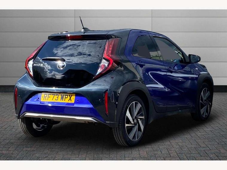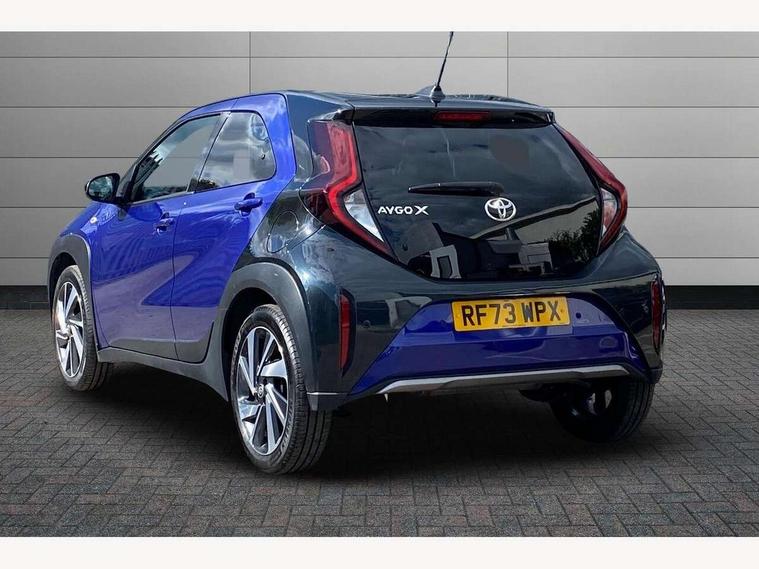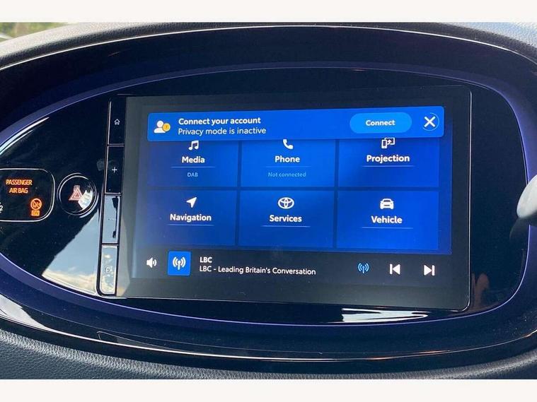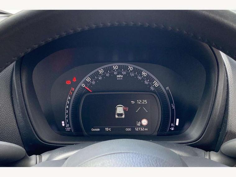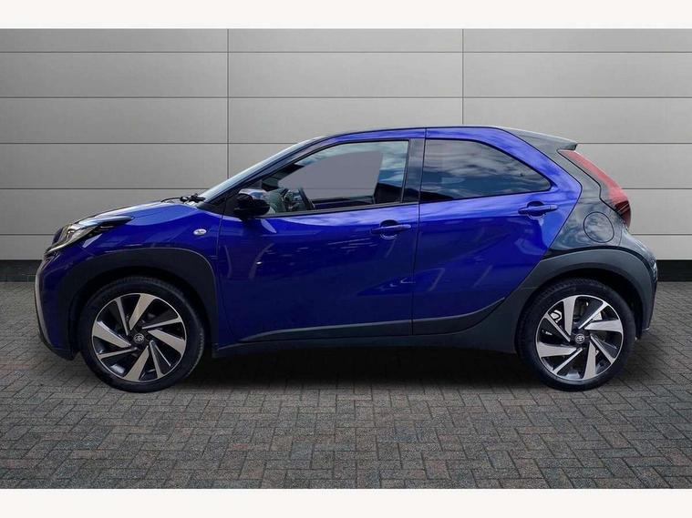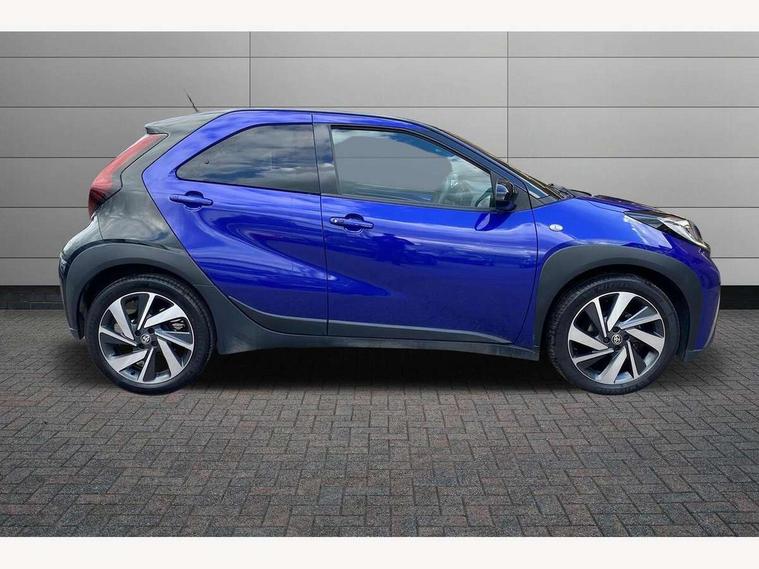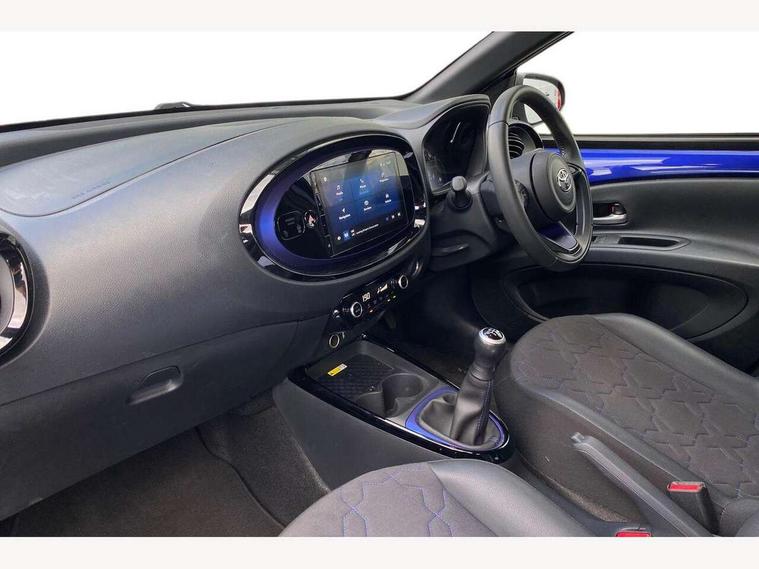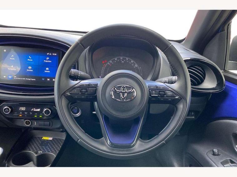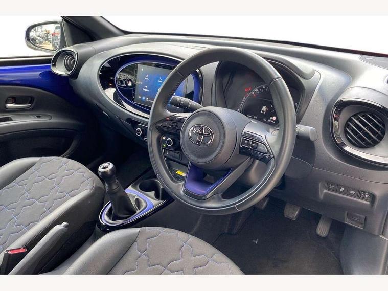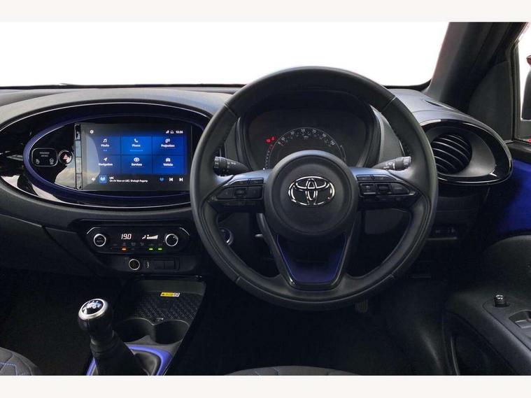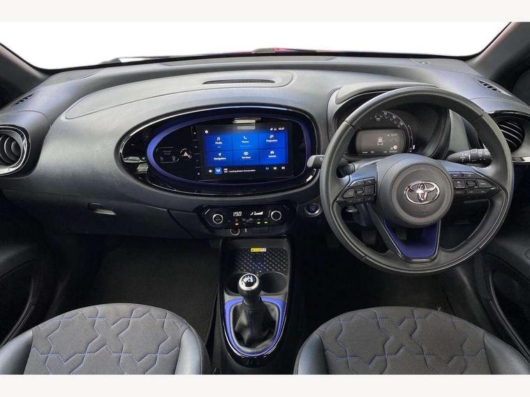 4.2" TFT colour screen, Adjustable speed limiter, Analogue speedometer, Bluetooth connectivity, Digital tachograph, Driver attention alert system, eCall emergency call system, Electric power steering, Front and rear parking sensors with auto brake, Intersection turn assist, Key reminder warning, Noise reduction kit, Pre collision system with emergency steering assist, Remote boot door release on key, Reversing camera with static guide lines, Smart entry and push button start, Smart phone integration with Apple car play/Android Auto, Speed limit display, Start and stop, Wireless charger, Vehicle Stability Control (VSC), 10.5" HD multimedia display touch screen with Toyota smart connect, 4 speakers, DAB digital audio broadcast, USB connector, Auto headlights, Auto wipers, Automatic headlights cut-off, Automatic high beam On/Off switch, Bicycle towing hook, Black contrast roof, Black fog light surrounds, Black side protection mouldings, Black wheel arch mouldings, Body colour door handles, Body coloured front bumper, Boot door scuff plate, Eclipse black rear bumper, Electric heated door mirrors, Follow me home headlights, Front and rear underruns in silver, Front fog lights, Front power windows, Gloss black door mirrors, Gloss black upper front grille, Headlight cut-off reminder, LED daytime running lights guide, LED front light guide, LED High mounted stop lamp, LED projector headlights, Manual day/night rear view mirror, Manual headlight levelling, Pagoda roof, Power adjustable door mirrors, Power back door, Privacy glass, Rain sensor, Rear combination lights LED bulb type, Rear side wing doors, Rear windscreen defogger, Rear windscreen wiper, Remote hazard lights system, Short antenna, Variable intermittent windscreen wipers, 12v power outlet - front, 2 seat bench in 2nd row, 3 spoke leather steering wheel, 50/50 split folding rear seat, Adhesive roof headlining, Adjustable speed limiter switch on steering wheel, Audio and telephone switches on steering wheel, Auto air conditioning, Black roof lining, Body colour satin anodised insert on steering wheel, Boot light, Centre room light, Chrome interior door handles, Chrome surround on air conditioning buttons, Clean air filter, Console box storage, Floor mats, Front and rear cup holders, Front head rest deco art, Front head restraints, Height adjustable driver seat, Intelligent adaptive cruise control switch on steering wheel, ISOFIX child restraint system on rear seats, Lane departure alert switch on steering wheel, Leather gearshift knob, Light blue ambient lighting in centre console, Manual tilt steering wheel, Manually reclining and sliding driver seat, Manually reclining and sliding front passenger seat, Multimedia switches on steering wheel, Partial synthetic leather upholstery, Pollen filter, Rear door pockets, Rear head restraints, Satin silver insert on gear shift knob, Single compartment glovebox with lights, Single front passenger seat, Soft tonneau cover, Sun visors with mirror on driver and passenger side, Voice recognition switch on steering wheel, Toyota safety sense pack - Aygo X, Anti lock braking system + Electronic brake force distribution, Child safety door lock, Emergency brake light signal (EBS), Hill start assist control (HAC), Passenger airbag on/off switch, Seat belt reminder for front and rear seats, Supplement restraints system (SRS) - 6 airbags, Traction control, Tyre pressure warning system, Immobiliser, Remote power door locks, Black wheel centre caps, Tyre repair kit,
