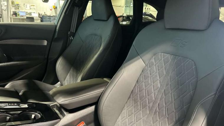 Adaptive cruise control, Advanced driver attention and fatigue montior, Audi application store, Audi assistant, Audi connect emergency call and service, Audi drive select, Audi smartphone interface, Audi virtual cockpit plus with 11.9" OLED colour display, Automatic start/stop system with coasting functionality, Camera based traffic sign recognition, Intersection assist, Lane change assistant with exit warning system, rear cross traffic alert and rear turn assist, Lane departure warning with emergency assist, MMI 10.9" front passenger touch display, MMI navigation plus with high resolution 14.5" OLED touchscreen colour display, Park assist plus, Parking system plus with 360 display, Progressive steering with servotronic, Swerve assist and turn assist, Top view camera, Traffic sign based speed limiter, Sports suspension lowered by 20mm, 2 USB-C ports in both the front and rear, Audi sound system impressive sound with 10 loudspeakers including centre speaker and subwoofer, 6-channel amplifier with a total output of 180 watts, DAB digital radio reception, Smartphone compartment with wireless charging, Aluminium window trims, Auto dimming rear view mirror, Black door handles, Black roof rails, Dark chrome-plated tailpipe trims, Door mirrors - electrically adjustable, heated, folding and auto dimming on both sides, Front and rear electric windows, Front door sill trims with aluminium inlays, illuminated with 'S' logo, Headlight cleaning system, High beam assist, LED daytime running lights, LED rear lights pro incl. dynamic rear indicators and illuminated light strip with animated coming and leaving home function, LED third brake light, Matrix LED headlights with eight light signatures selectable via the MMI or the myAudi app, Privacy glass, Rear and side windows with heat insulating glass, Rear side wing doors, Rear wash/wipe, S Line badges on the front wings, S line bumpers, radiator grille and diffuser in phantom black and diffuser insert in matt anthracite, White rhombus logo projection light in exterior mirrors, Windscreen with acoustic glazing, 3 rear headrests, 3 seat rear bench, 3 spoke leather steering wheel with multi-function buttons with touch control, flattened on top and bottom, with S badging and contrast stitching, 3-zone automatic climate control, 40:20:40 split folding rear seat bench with centre armrest and cup holders, Comfort front centre armrest, Electrically adjustable front seats, Front and rear floor mats, Front sport seats with integrated headrest and S embossed logo, Headlining in black cloth, Heated front seats, i-Size child seat mounting on the front passenger side and outer rear seats, i-Size and top tether on the outer rear seats, Luggage compartment lid, electrically opening and closing, Manual steering column height and depth adjustment, Memory function for driver seat, Single front passenger seat, Stainless steel pedals and footrest, Steering wheel grips in perforated leather and shift paddles, Ambient lighting package plus - A5, Black styling package plus - A5, 3x3 point rear seat belts, Acoustic vehicle alerting system, Convenience key with safelock, Driver airbag, Electric child safety locks, First aid kit with warning triangle and vests, Front emergency brake assist, Front passenger airbag, Front passenger airbag deactivation, Hill hold assist, Occupant detection in rear seat area, Proactive passenger protection system for front, sides and rear, Red brake calipers, Seat belt monitoring with rear seat occupant reminder, Side airbags in front and rear with head airbag system and front interaction airbag, Tyre pressure loss indicator, Anti theft alarm, Anti-theft wheel bolts, Keyless Go, Accent surfaces and control buttons in gloss black, Black dashboard with contrast stitching, Softwrap in Dinamica with contrast stitching, Upper and lower interior elements in dinamica microfiber, 20" 5 arm fold design Audi sport alloy wheels in silk matt grey and gloss turned finish, Tyre repair kit,