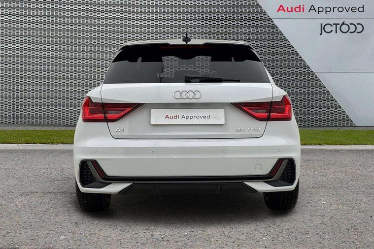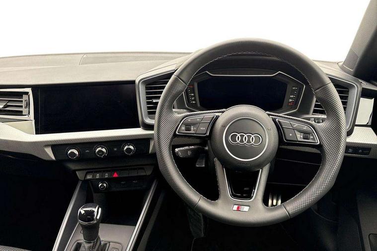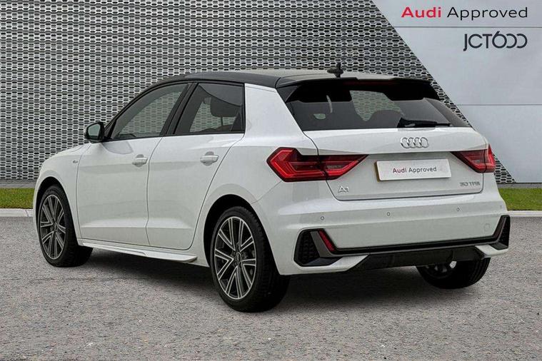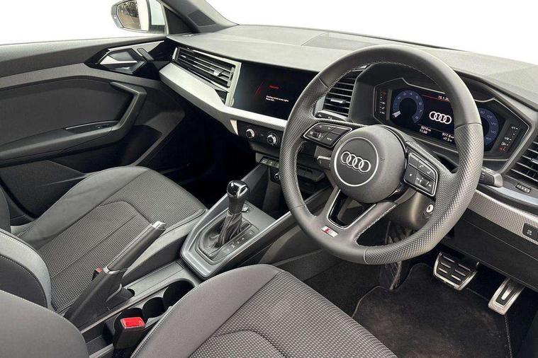 10.25" Digital instrument cluster display classis style instrument dials + speed, odometer, time, outside temperature, telephone menu + fuel level warning, Advanced driver attention and drowsiness monitor, Audi connect emergency call and service, Audi drive select, Audi remote connect and control, Audi smartphone interface, Bluetooth interface, Camera based traffic sign recognition, Cruise control, Driver's information system, Electromechanical power steering, Lane departure warning system, Rear parking sensor, Service interval indicator, Speed limiter, Start stop system with recuperation, Voice control system, Washer fluid level indicator, Sports suspension, 2 x USB type C connection points, 6 loudspeakers, DAB Digital radio, MMI radio plus with 10.1" colour MMI display screen and MMI touch, Auto dimming rear view mirror, Body coloured door mirrors, Door sill trims with aluminium inlays and S line logo in front, Electric front and rear windows, Electrically adjustable, heated, folding door mirrors with integrated LED side indicator, Front side air inlets in grained matt black and C frame in anthracite black, Headlight cleaning system, Heat insulating glass windscreen and side windows, Heated rear windscreen, High level LED brake light, LED daytime running lights, LED headlights with range control LED rear lights + dynamic rear indicators, Light and rain sensors, Privacy glass, Radiator grille and rear diffuser in matt anthracite black, Radiator protective grille frame in matt aluminium silver, Rear fog lights, Rear side wing doors, Rear wiper, S line badges on front wings, Side front spoiler lips in grained matt black, 12V socket in centre console with two cup holders, 3 rear seats with headrests, 3 seat bench in 2nd row, 3 spoke leather multi-function plus steering wheel features S badging and grips in perforated leather with contrast stitching, 40:60 Split folding rear seat or fully collapsed, Black cloth headlining, Front and rear velour black floor mats with contrast stitching in fine silver, Front head restraints, Front passenger seat, Height and reach adjustable steering wheel, Interior lighting includes roof module, front and rear reading lights and right luggage compartment lighting, ISOFIX child seat mounting for front passenger and outer rear seats including top tether attachment point of outer rear seats, Leather gear knob with aluminium trim, Leather handbrake grip, Manual air conditioning, Manual height adjustable for driver and front passenger seat, Manually adjustable lumbar support in front seats, Stainless steel pedals, Ambient lighting package - A1, Luggage compartment pack - A1, S line exterior styling pack - A1 Sportback, 3x3 point rear seatbelts, Audi pre-sense front with pedestrain and cyclist recognition, Brake assist function, Driver and front passenger airbag with front side and head airbags, Electronic Stability Control including ABS, EBD, ASR and EDL, Front passenger airbag deactivation switch, Hill hold assist, Manual rear child locks, Seatbelt height adjustment for front seats, Seatbelt monitoring, Tyre pressure loss indicator, Warning triangle and first aid kit, Anti theft alarm, Anti theft wheel bolts, Immobiliser, Remote control key with safelock, Aluminium trim for control switches, air vents and digital instrument cluster, Black dashboard, Silver grey inlays polygon structure in diamond paint finish, Structured grey accent surfaces insert of air vents, interior door handle recesses and centre console in quartz paint finish,