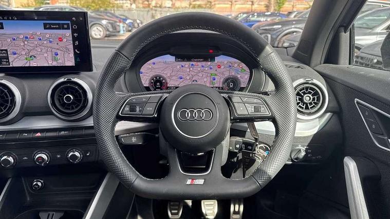 3D map display, Audi connect navigation and infotainment includes innovative services, Audi connect remote and control connects your vehicle to your smartphone, Audi drive select: power steering assistance + engine (modes: comfort, auto, dynamic, individual), Audi smartphone interface - Apple carplay/Android Auto, USB connect, 2xSDXC card readers, voice control for navi, telephone, music and 3rd party apps, Audi virtual cockpit, Automatic start/stop system with recuperation, Bluetooth interface includes bluetooth audio streaming, Camera based traffic sign recognition, Cruise control, Distraction and Fatigue warning, E-call, Jukebox hard drive memory for music (10GB), Lane departure warning, MMI navigation plus with 8.8" touchscreen, Natural voice recognition, Power operated tailgate, Progressive steering, Rear parking sensors, Sport suspension, 6 passive loudspeakers, DAB Digital radio, USB type C port, Audi beam, Auto dimming rear view mirror, Black window trims, Bumper in full body colour paint finish, Electrically adjustable, folding, auto dimming and heated door mirrors with integrated LED side indicators, Front windscreen with grey tinted sunband, LED daytime running lights, LED headlights with dipped beam, high beam, position lights, indicators, LED rear lights, LED third brake light, Privacy glass - dark tinted rear and rear side windows from B-pillar backwards, Rear side wing doors, Rear wiper, Variable front intermittent wipers, Wheel arch trims in manhattan grey, 12v socket in front, 3 seat bench in 2nd row, 3 spoke flat bottomed multi-function leather sport steering wheel, 4-way electric lumbar support for front seats including manual seat height adjustment for both front seats, 60/40 split folding rear seat bench, Black carpets, Black cloth headlining, Front and rear head restraints, Front centre armrest, Front sport seats, Front/rear floor mats, Height/reach adjust steering wheel, Illuminated door sill trims with S logo, ISOFIX child seat mounting in front passenger and rear outer seats, Manual air conditioning, Single front passenger seat, Stainless steel pedals, Black styling pack - Q2, 3x3 point rear seatbelts, 6 airbags - Front, curtain and front side airbags, Electromechanical parking brake, Electronic stabilisation control including ABS, ASR and EDL, Front passenger airbag deactivation, Hill hold assist, Pre-sense front with pedestrian recognition, Seatbelt monitoring, Tyre pressure warning light with visual and acoustic warning, Warning triangle and first aid kit, Anti theft alarm, Anti theft wheel bolts, Electronically operated child locks, Remote central door locking, Aluminium interior element, Black dashboard, Gloss black centre console, Matt brushed aluminium trim inlays, Tool kit,