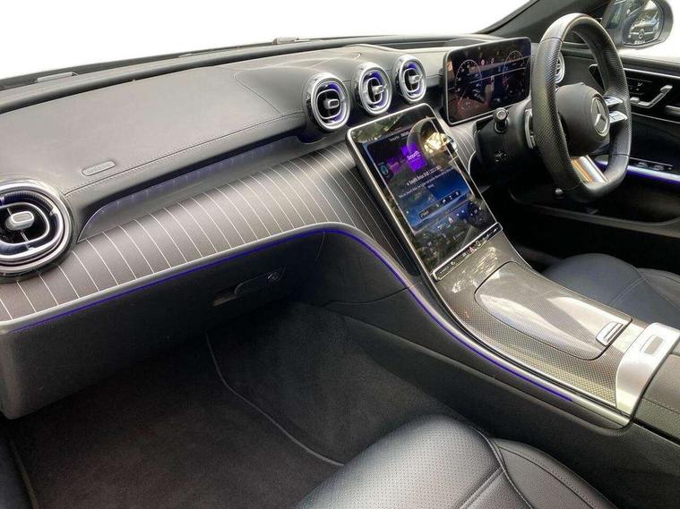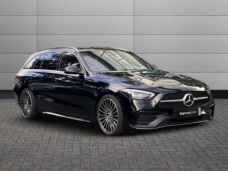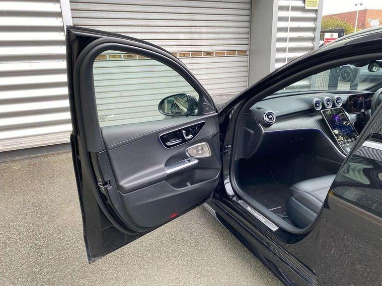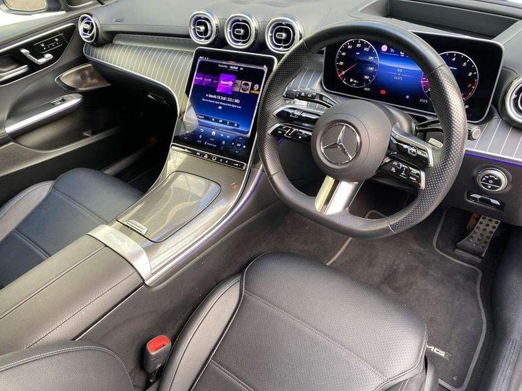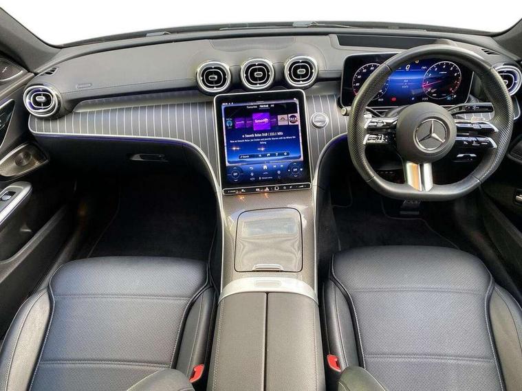 11.9" high resolution multimedia colour display, 12.3" digital instrument cluster display, Active parking assist with PARKTRONIC, Attention assist, DYNAMIC SELECT with a choice of driving modes (Comfort, ECO, Sport, Sport+, Individual), E-call, Extended MBUX functions, Finger print sensor, Fluorescent jacket for driver, Hard disc navigation, Head up Display, MBUX navigation premium, Mercedes me remote services, Outside temperature gauge, Service indicator (ASSYST), Smartphone integration, Sports direct steer speed sensitive steering, Status display for rear seat belts in instrument cluster, Tailgate, Traffic sign assist, Wireless charging system for mobile devices, 9G TRONIC 9 speed automatic transmission, Petrol Particulate Filter, Sport suspension, Burmester 3D surround sound system, DAB Digital radio, MBUX multimedia system, Adaptive brake lights, Adaptive high beam assist plus, Aluminium roof rails, AMG body styling front apron, rear apron and side skirts, AMG Line exterior, Body coloured bumpers, Body coloured door mirrors, Digital light LED headlamps, Electric panoramic glass sunroof, Electric windows with one touch opening/closing and obstruction sensors, Electrically adjustable and heated door mirrors, Heat insulating dark tinted glass, LED daytime running lights, LED Indicators, LED tail lights, LED third brake light, Noise acoustic glass, Radiator diamond grille with integrated Mercedes Benz star and louvre silver with chrome pins, Rain sensor with automatic windscreen wiper activation, Rear side wing doors, Rear wiper, Two visible exhaust pipes integrated into rear bumper, 3 seat bench in 2nd row, 40:20:40 split folding rear bench seat, Ambient lighting premium, Ambient lighting with projection of brand logo, AMG floor mats, AMG line interior, Artico man-made leather upholstery, Auto Mercedes-Benz child seat recognition sensor, Black roof liner, Comfort seats, Double cupholder in centre console, Electrically height/reach adjustable steering column, Folding rear seat backrest, Front and rear head restraints, Gearshift paddles on steering wheel, Illuminated door sills with Mercedes Benz lettering, Illuminated glove compartment stowage, Load compartment cover, Multifunction sports steering wheel in nappa leather, Rear top tether child seat ISOFIX attachment, Single front passenger seat, Sunvisors with illuminated vanity mirrors, THERMATIC 2 zone automatic climate control, AIR BALANCE Package - C Class, Boot comfort package - C Class, Easy pack tailgate - C Class, Energizing package plus - C Class, Interior light package - C Class, Keyless go comfort package - C Class, Memory package - C Class, Mirror package - C Class, Parking package with 360 degree camera - C Class, Stowage space pack - C Class, USB package plus - C Class, 3 rear 3 point seatbelts, Active bonnet pedestrian safety measure which detects an impact and raises bonnet, Adaptive brake system with HOLD function and brake drying in the wet, Anti-lock braking system (ABS), Black seat belts, Brake calipers with Mercedes-Benz lettering + perforated front brake discs, Child proof door locks, Drivers knee airbag, Drivers pelvis airbag, Dual stage driver/passenger airbags, Electric parking brake, Electronic Stability Programme (ESP), Front centre airbag between driver and front passenger seats, Front side airbags, Tyre pressure monitoring system, Warning triangle and first aid kit, Window airbags for driver, front passenger and rear passenger, Antitheft alarm system, Interior monitoring system and Increased antitheft protection, Central locking with interior switch, automatic locking and crash sensor with emergency opening function, Chrome surround electric key, Urban guard vehicle protection plus, Black open pore aluminium lines wood trim with centre console in metal structure finish, Dashboard, instrument panel and beltlines in ARTICO man made leather in nappa look, 19" AMG multi spoke light alloy wheels painted black with high sheen finish, TIREFIT with tyre inflation compressor,