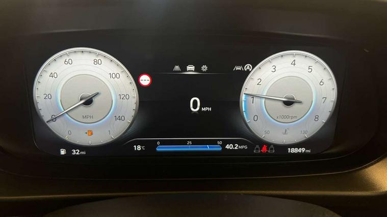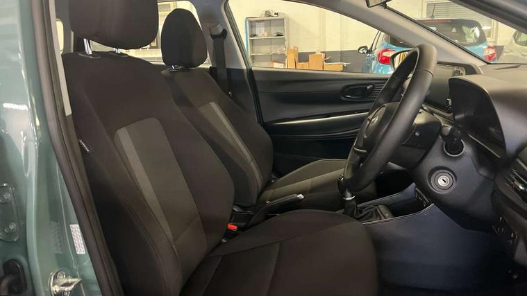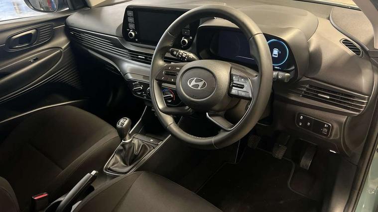 10.25" digital supervision cluster, 2nd Gen eCall, 8" Touchscreen with DAB, Apple car play/Android Auto, Cruise control + speed limiter, Forward collision assist with car, pedestrian and cycle detection, Intelligent speed limit warning, Lane follow assist, Lane keep assist, PAS, Rear parking sensor, Rear view camera with dynamic guidelines, USB C port front, 3rd brake light, Dusk sensor, Electric adjustable heated door mirrors, Front grille mesh pattern design, High beam assist, LED daytime running lights, LED Headlights, LED taillights, Rain sensor, Rear side wing doors, Rear wiper, Repositioned flat metal hyundai emblem, 3 seat bench in 2nd row, Adjustable head restraints, Air conditioning, Cloth upholstery, Floor mats, Leather steering wheel, Single front passenger seat, 3x3 point rear seatbelts, ABS with front and rear diagonally split, Autonomous emergency braking, Child locks on rear doors, Front ventilated disc brakes, Rear solid disc brakes, Tyre pressure monitoring system, 16" alloy wheels, Tyre repair kit,