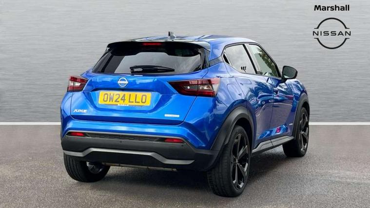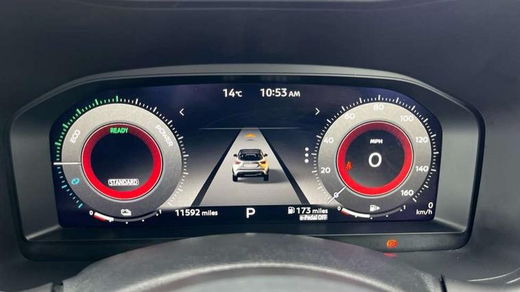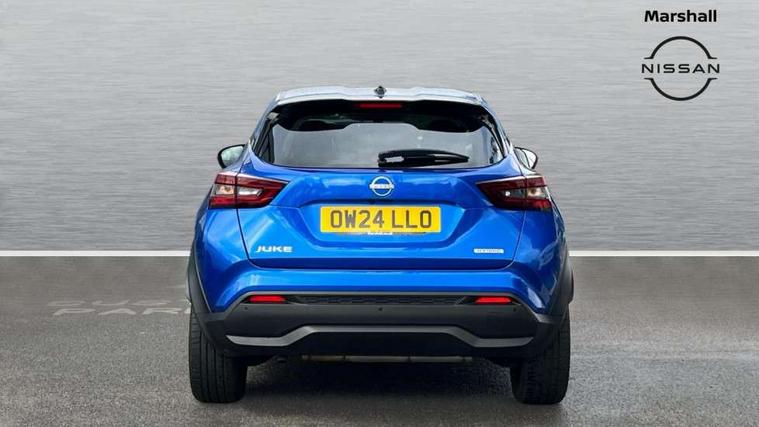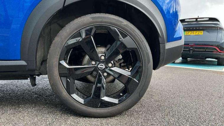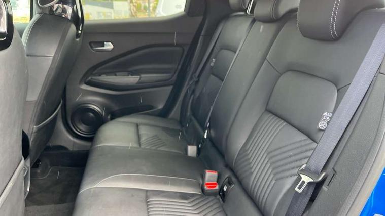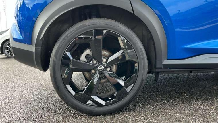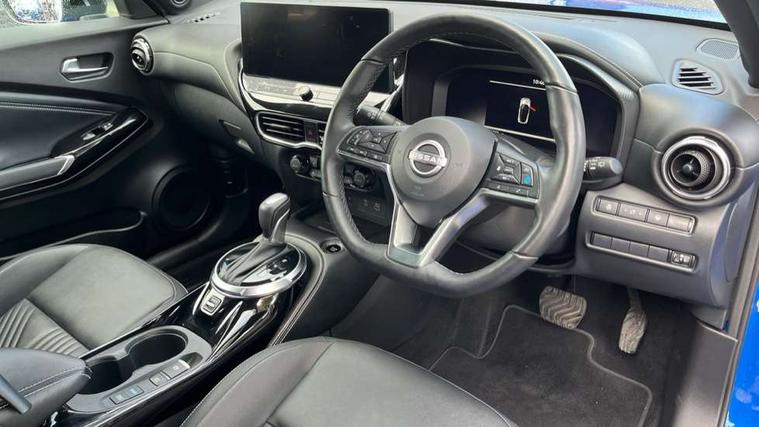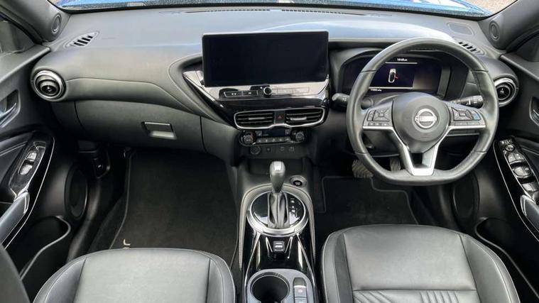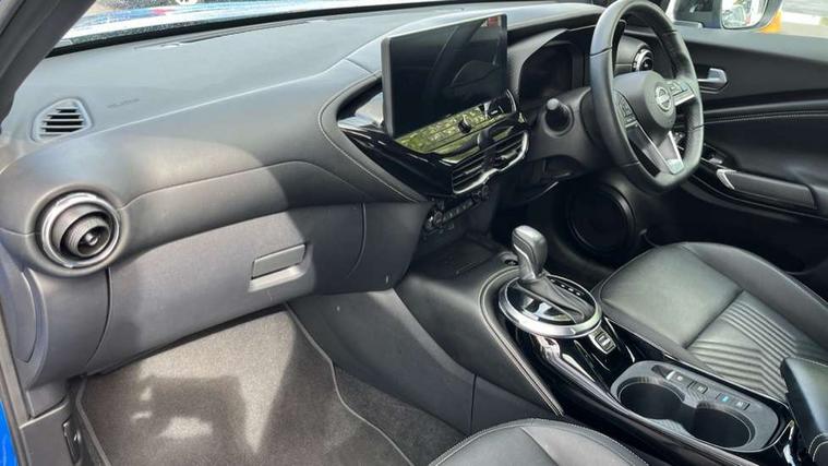 12.3" full colour TFT screen combimeter, Drive modes select (Eco, normal and sport), e-Pedal step, Emergency and breakdown call, EV mode selector, Front parking sensor, Intelligent driver alert system, Intelligent lane intervention, Lane departure warning system, Nissan connect 12.3" touch screen entertainment system, Nissan connect nav with TomTom traffic, Nissan connect services and Wifi connection, Outside temperature sensor, Power Steering, Rear parking sensor, Stop/start button, Traffic sign recognition, Trip computer, Voice recognition, Wireless Apple CarPlay and Google Android auto, Wireless Smartphone charger, 10 Bose speakers 6 speakers and 2 headrest speakers for driver/passenger seats, 2 X Rear console USB port, Bluetooth system, USB, Aux-in and 12V socket, Bose personal sound stage control, DAB Digital radio, Auto dimming frameless rear view mirror, Automatic hazard signal with emergency stop signal, Body colour door handles, Electrically adjustable door mirrors with integrated indicators, Follow me home headlights, Front and rear electric window with one touch driver window, Heated and auto folding door mirrors, High beam assist, LED 3rd brake light, LED daytime running lights, LED front fog lights, LED headlamps, LED rear fog lamp, LED rear lamps, One touch passenger window, Rain sensor windscreen wipers, Rear privacy glass, Rear side wing doors, Rear wiper, Roof spoiler, Shark fin roof antenna in solid Black, Three blink turn signal, 3 height adjustable rear headrests, 3 seat bench in 2nd row, 60/40 split folding rear seat, Automatic climate control, Card holder on driver sunvisor, Door ambient lighting, Driver seat back pocket, Driver side rear coat hanger, Driver/passenger sunvisors and vanity mirrors, Front and rear cabin lights, Front armrest, Front door pockets with bottle holders, Front head restraints, Front/rear passenger grab handles, Gear console ambient circle lighting, Height adjustable driver's seat, Internal chrome door handles, Leather gearshift knob, Leather steering wheel, Luggage space lighting, Monoform sporty seats, Multifunction steering wheel, Passenger seat back pocket, Rear door bottle holders, Single front passenger seat, Synthetic leather kneepad, Synthetic leather upholstery, Telescopic steering wheel adjustment, Two cupholders in front centre console, Two rear isofix child seat anchorage points with top tether, Welcome light and console tray ambient lighting, Heat pack with height adjustable passenger seats - Juke, ProPilot pack - Juke Auto, ABS with EBD and brake assist, Active ride control, Active Trace Control, Driver and passenger airbags, Driver and passenger side airbags, Electric handbrake with auto hold function, Electronic Stability Programme (ESP), Front and rear curtain airbags, Height adjustable seatbelts, Hill start assist, Intelligent emergency braking with pedestrian and cyclist recognition, Rear door child safety locks, Seatbelt reminder for driver/front passenger and rear seats, Three 3 point rear seatbelts, Traction control, Tyre pressure monitoring system, VDC Dynamic Vehicle Control, Alarm, Immobiliser, Intelligent key and start push button with walk away lock and approach unlock functions, Remote central locking, 19" Alloy wheels,