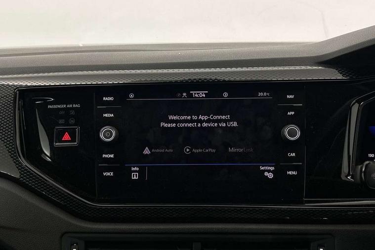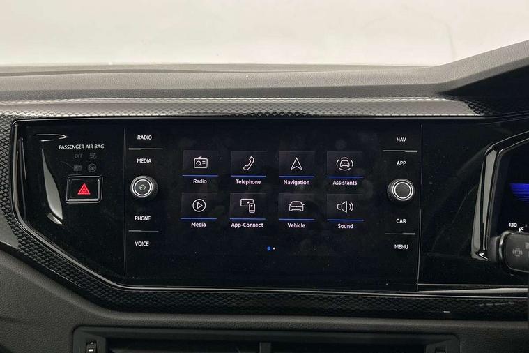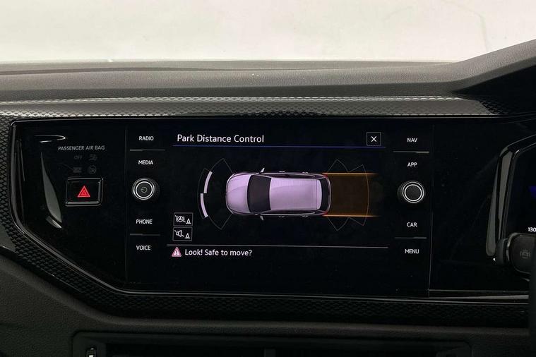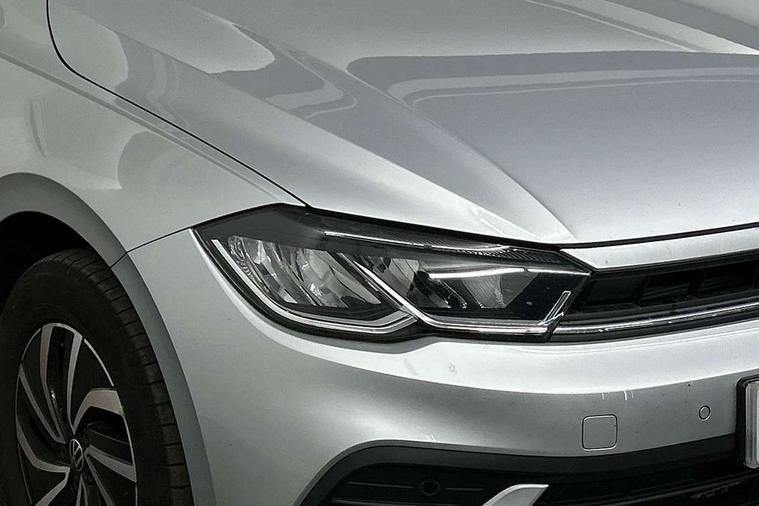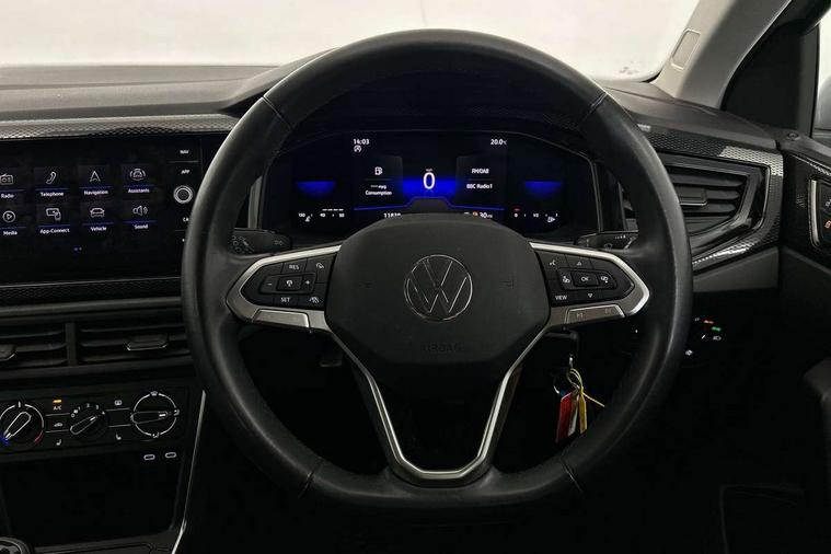 Adaptive cruise control without follow-to-stop and speed limiter, Bluetooth mobile phone interface, Driver alert system, Emergency call service, Front assist system, Power assisted speed sensitive steering, Preparation for We connect and We connect plus, Speedo and rev counter, electronic odometer, trip, service interval display and fuel gauge, Standard rear axle, Travel Assist - Lane keeping system and traffic jam assist, Travel assist including emergency assist, Trip computer, Warning signal and warning light for front and rear seatbelts not fastened, Washer fluid level indicator, Wireless app connect, Front wheel drive, Rear shock absorpion, Start-stop system with battery regeneration (recuperation - energy recovery during braking), DAB Digital radio, Diversity antenna for FM reception, Front and rear 6 speakers, Automatic dimming interior rear view mirror, Body colour bumpers, Body colour door handles, Body colour door mirrors, Electric front windows, Heat insulating darkened glass in side and rear windows, Heat insulating glass windscreen, Power folding adjustable/heated exterior mirrors and front passenger exterior mirror lowering function, Rain sensor, Rear electric windows, Rear fog light, Rear side wing doors, Rear windscreen washer and wiper with interval delay, Third brake light, 12V power socket in centre console, 2 front and 2 rear reading lights, 2 USB-C ports in the front, 2 USB-C charging sockets on the center console in the rear, 3 rear head restraints, 60/40 split folding rear seat and rear seat bench not split, Ceramique headliner, Chrome plated radiator grille inserts, air vent surrounds and light switch surrounds, Door and side trim panel, Driver and front passenger seat height adjustment, Driver/passenger sunvisors with illuminated vanity mirrors, Front centre armrest, Front seat backrest storage pockets, Front standard seats, Handbrake lever handle in leather, Hartley/Thomas cloth upholstery, Isofix child seat preparation easy-fit (for two outer rear seats, and front passenger seat) compatible with I-size, Leather trimmed gear knob, Luggage compartment cover, Luggage compartment floor, Luggage compartment lighting, Multifunction steering wheel, Single front passenger seat, Standard pedal cluster, Light and vision pack - Polo, 3 point height adj front seatbelts + pretensioners, 3x3 point rear seatbelts, ABS, Driver and front passenger airbag with front passenger airbag deactivation, Drivers and front passengers safety optimised head restraints, ESC (Electronic stability control) + EDL (Electronic Differntial lock) and ASR (Traction control), Extended and predictive pedestrian/ cyclist protection, Front curtain and side airbags with center airbag, Front disc brakes, Hill hold control, Manual child lock in rear doors, Rear drum brakes, Single tone horn, Tyre pressure loss indicator, Alarm with interior protection, Anti-theft alarm system with interior monitoring, backup horn, and towing protection, Anti-theft wheel bolts, Electronic engine immobiliser, Lava stone black gloss/matt decorative inserts in dash and front door panels, Low rolling resistance tyres,
