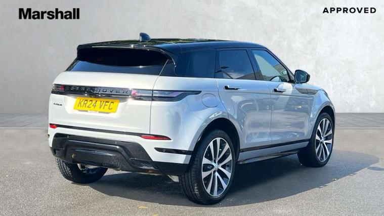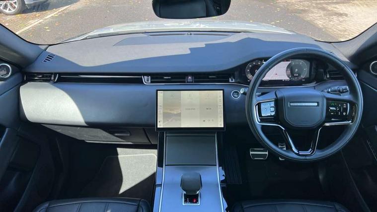 11.4" touch screen, Adaptive cruise control, Android Auto, Apple car play, Blind spot assist, Bluetooth connectivity, Brake pad wear indicator warning light, Driver condition monitor, eCall emergency system, Eco mode, Electronic power assisted steering (EPAS), Front and rear parking aid, InControl remote, Interactive driver display, Land Rover InControl apps, Lane keep assist, Pivi pro connected includes diamond pivi variant, smart settings, connected navigation pro, nuance speech licence, Powered tailgate/boot lid, Rear collision monitor, Rear traffic monitor, Traffic sign recognition with adaptive speed limiter, Voice control system, Wireless device charging, All terrain progress control, Diesel exhaust fluid (DEF) large tank, Efficient Driveline, Large fuel tank, Passive suspension, Terrain Response 2, Digital Audio Broadcast radio-DAB, Steering wheel mounted controls, Acoustic laminated windscreen, Auto headlights, Automatic headlight levelling, Electric windows with one touch open/close and anti trap, Flush deployable exterior door handles, Front and rear recovery eyes, Front fog lights, Heated rear window with timer, Heated washer jets, Heated windscreen, Pixel LED headlights with signature DRL and LED tail Lights, Power fold, auto-dimming, heated door mirrors with approach lights and auto dimming driver side, Rain sensing windscreen wipers, Rear animated directional indicators, Rear fog lights, Rear side wing doors, Rear wiper, Side repeater indicators in mirror, Tailgate spoiler, Third brake light, Winter wiper park position, 14 way driver memory electric front seats with 2 way manual headrests + 4 way lumbar support, bolsters, 40:20:40 split folding rear seats with centre headrest and armrest, Ambient interior lighting, Bright metal pedals, Carpet mats, Chrome tread plates with range rover branding Includes stainless steel loadspace scuff plate with etched graphic, Customer configurable single point entry, Electrically adjustable steering column with memory function and easy entry/exit, Front and rear cupholders, Heated steering wheel, Isofix system on outer rear seats, Overhead lighting console, Overhead stowage for sunglasses, Passive front head restraints, Rear air vents, Rear head restraints, Satin chrome gearshift paddles, Single passenger seat, Sunvisors with illuminated vanity mirrors, Twin sliding front centre armrest, Online pack with data plan - Evoque, Power socket pack 2 - Evoque, 3 rear 3 point seatbelts, Anti-lock braking system (ABS), Brake hold function, Customer configurable autolock, DSC - Dynamic Stability Control, Electronic brake force distribution, Electronic parking brake, Electronic traction control, Emergency braking, Front and rear seatbelt reminder, Hill descent control, Hill launch assist, Low traction launch, Occupant protection assist, Passenger seat occupant detector, Power operated child locks, Roll stability control, Six airbags - Driver and passenger airbags/driver knee airbag/front side airbag and curtain airbags, Torque vectoring brake, Tyre pressure monitoring system, Alarm, Immobiliser, Intrusion sensor, Keyless entry, Locking wheel nuts,