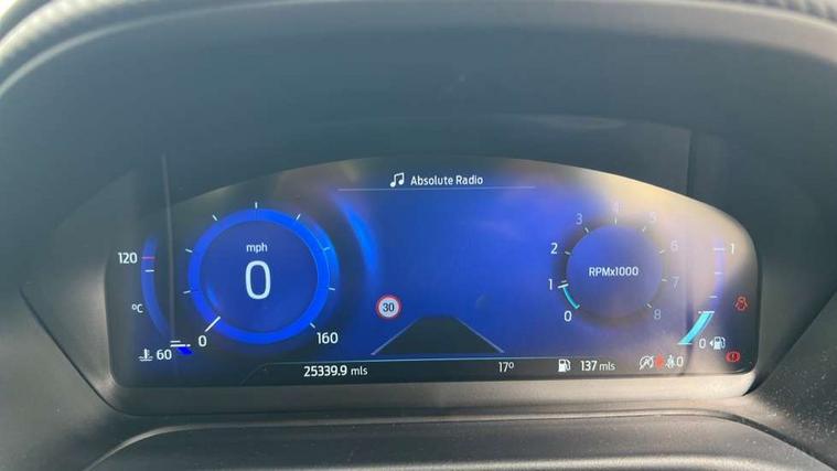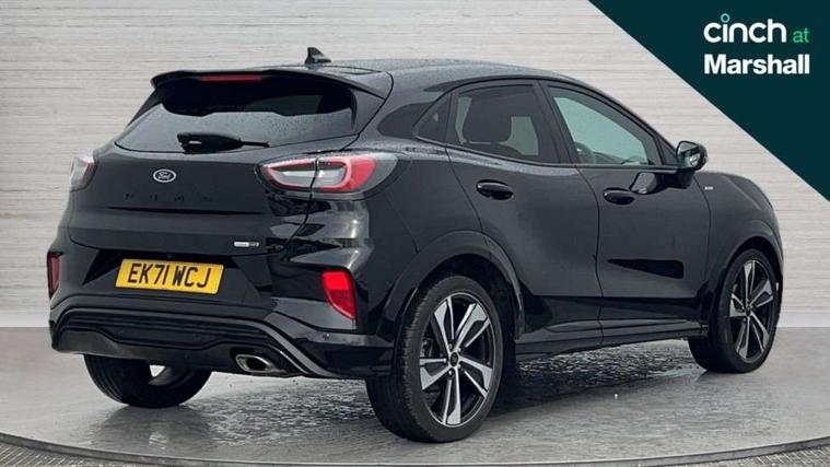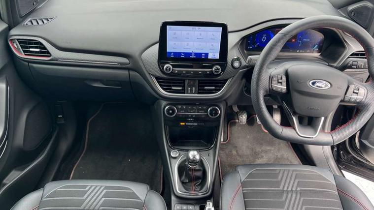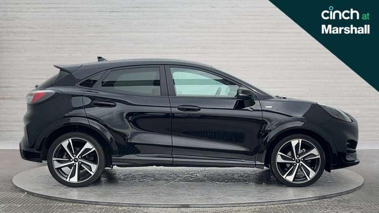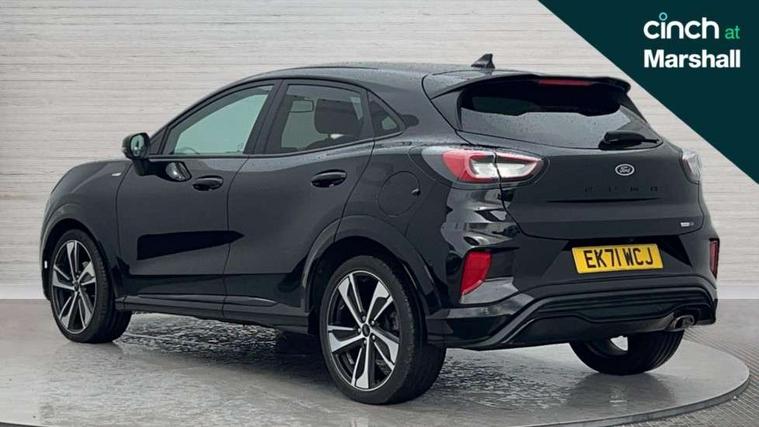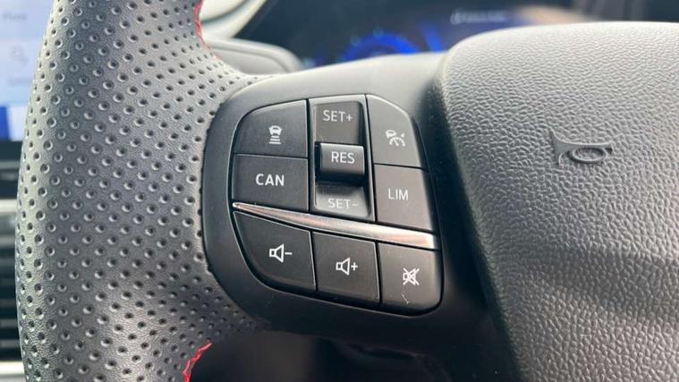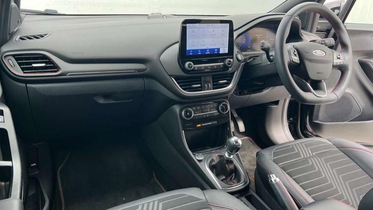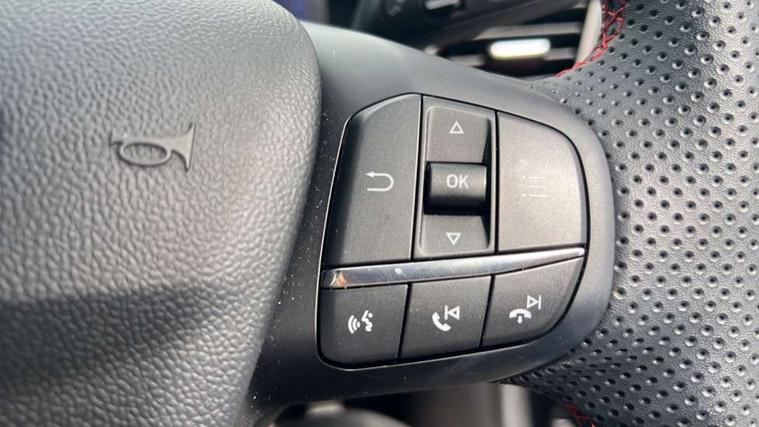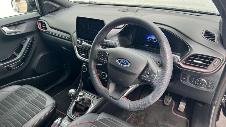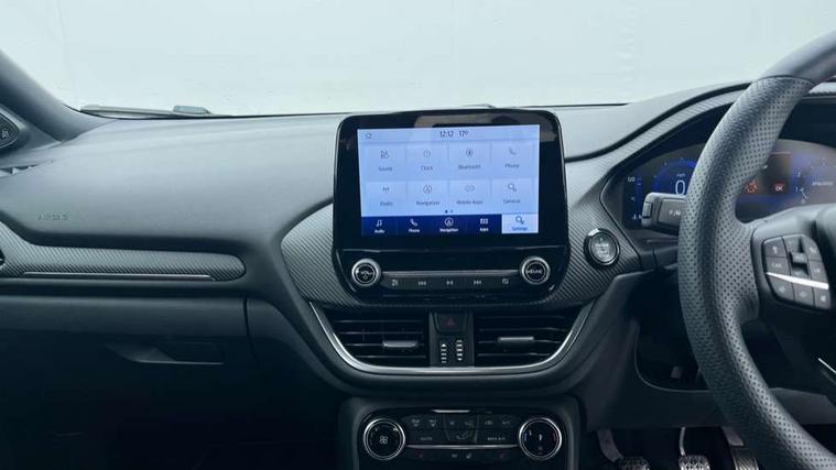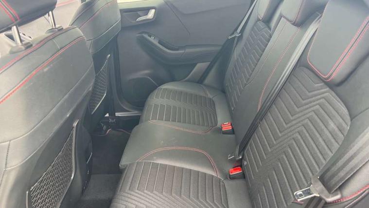 Ford easy fuel, Full digital 12.3" instrument cluster, Power assist steering, Power start button, Rear parking sensor, Selectable drive modes(Normal, sport, Eco, trail, slippery), Wireless charging pad, Automatic rain sensing wipers, Body coloured door mirrors, Front fog lights with cornering lights and LED rear lamps, Power foldable heated door mirrors with puddle lamps, Privacy glass to side rear windows and tailgate glass, Quickclear heated windscreen, Rear wiper, ST-Line body kit with large rear spoiler wth sports suspension, Centre console with armrest and stowage, Driver and passenger seat lumbar and height adjust, Ford megabox extended bootspace, Front and rear floor mats, Front and rear head restraints, Manual air conditioning, Sensico partial premium upholstery, ST-Line flat bottomed sensico leather steering wheel with leather handbrake and aluminium gear knob, Wireless charging pad with electronic air temperature control (EATC), B&O Premium Audio system + Ford SYNC 3 navigation pack - Puma, Driver assistance pack with Lane departure warning - Puma, 3 rear seatbelts, Electronic stability control (ESC) and hill start assist, Pedestrian/cyclist detection & post-collision braking, Tyre pressure monitoring system (TPMS), Thatcham alarm, Carbon look interior deco spears,