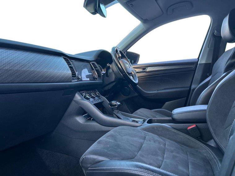 Bluetooth system, E-call, ECO Stop/start function, Exterior temperature indicator, Smartlink wireless for apple carplay and wired for android auto, Speed limiter, Tailgate unlocking from outside, USB C Port x 2 in front centre console, Wireless charging, DAB Digital radio, Aero front windscreen wipers with intermittent function, Aero rear window wiper, Auto dimming rear view mirror, Black wheel arch surrounds, Body colour bumpers, Body colour door mirrors and handles, Chrome front grille, Chrome roof rails with chrome window surround, Electric front and rear windows, Extended rear spoiler with finlets in gloss black, Front fog lights, Full LED matrix headlights with AFS (adaptive front light system), cornering function and AWL (all weather lighting system), Headlight washers, Heated rear window, Invisible tailpipe, LED daytime running lights, LED rear fog light, LED third brake light in rear spoiler, Light assistant (coming/leaving home/tunnel light), Off-road style lower front bumper element, Privacy glass, Rain and light sensors, Rear LED lights (high functionality) with welcome effect and dynamic indicators, Safety reflectors on front and rear doors, Window control switches with black trim, 12V socket in boot, 2 rails with 2 hooks, 4 foldable roof handles with rear coat hooks, 60:40 foldable rear seat with sliding adjustment and backrest angle adjustment, Bottle holders in door panel in the 1.5 litre front and 1 litre rear, Cargo storage compartments, Chrome headlight control button, Chrome interior door handles, Coat hooks on B pillar, Covered storage compartment on driver side, Decorative door sills in the front and rear, Front centre armrest with storage compartment, cup holder and 12V socket, Front courtesy lights, Gear shift lever with chrome frame and black gloss insert, Grey stitching in front and rear armrests and door armrests + door inserts, Height adjustable front headrests, Illuminated and cooled glovebox, Illuminated luggage compartment, Isofix child seat fittings in outer rear seats with top tether, Manually adjustable steering column, Net programme in boot (1x horizontal Net, 2x vertical Nets), Overhead glasses storage compartment, Pollen filter, Rear centre armrest with cupholders, Sliding trunk cover, Small Bags on the inner sides of the front backrests, Sunvisors with illuminated vanity mirrors, Three rear height adjustable headrests, Ticket holder on A Pillar, Umbrella in door panel, Variable boot floor, Auto door release and activation of warning lights in the event of an accident, Driver and front passenger airbag with knee airbag and front passenger airbag deactivation, Electronic parking brake with hill start assist, Emergency rear braking signal, ESC (incl. ABS+MSR+ASR+EDS+HBA+DSR+RBS+MKB), Front assist with autonomous emergency braking, Front side airbags with curtain airbags, Fuel cut off safety device, Height adjustable front 3 point seatbelts + pretensioners, Hill hold control, Rear disc brakes, Safety vest holder in door, Seat belt reminder for all seats, Three point rear seat belts, Two tone horn, Tyre pressure monitor, Alarm with interior monitoring and tilt sensor with safe function, Anti-theft wheel bolts, Immobiliser, Keyless entry and start system (KESSY), Remote central locking with 2 keys, Grey stitching in dashboard, Linear diamonds decorative inserts, Temporary spare wheel (space saver),
