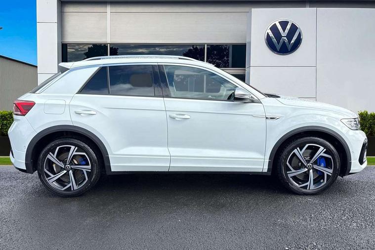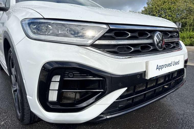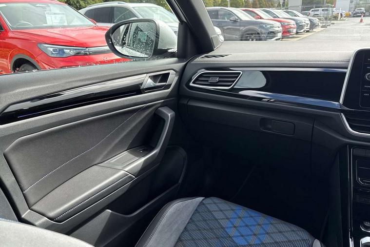 10.25" Digital cockpit pro, Bluetooth mobile phone interface, Driver alert system with fatigue detection, Driver tips and journey analysis, Emergency call service, Lane keeping system Lane Assist, Modified key software - reduce switch off time for key status change to Long no motion, Online services, Park assist including front and rear parking sensors, Service interval indicator, Tailgate/trunk lid release from outside, Think blue trainer driver tips and journey analysis, Warning sound and light for front seatbelts unfastened, Wireless app connect, Battery regeneration during braking, Four wheel drive, Start/stop function with battery regeneration, Diversity antenna for FM reception, Front and rear 6 speakers, Music playback - MP3, WMA and AAC files, Premium USB cable in choice of either Apple or Android smartphone compatibility, SD card slot, Simultaneous pairing of 2 compatible mobile devices, Title and cover art display, We Connect and We Connect Plus functionality, 3rd brake light, Auto dimming interior rear view mirror, Automatic hazard lights activation under emergency braking, Automatic headlight control with LED separate daytime running lights with coming/leaving home function, Extended roof spoiler, Exterior mirrors aspherical on driver side, convex on front passenger side, External USB type C socket and charging sockets, Front windscreen wiper with intermittent wipe and 4 position delay, Heated rear window, LED Plus headlamps, LED rear combination lamps, LED rear number plate lights, LED tail lamp rear comination lamps, Power windows with comfort operation and circuit breaker, Privacy glass for rear side windows and rear window, R-Line design body coloured bumpers, Rain sensor, Rear fog light on one side and reversing lights on both sides, Rear side wing doors, Rear wash/wipe with intermittent wipe setting, Remote electrically foldable door mirrors, puddle lights and reverse activated passenger's door mirror, 12V power socket in centre console, 3 rear head restraints, 3 seat bench in 2nd row, 4 load lashing points in luggage compartment, Air care climatronic air conditoning system with active combination filter and 2-zone temperature control, Ambient lighting - 10 colour (blue), Black roof lining, Chrome plated radiator grille inserts, air vent surrounds and light switch surrounds, Door and side trim panel with leatherette insert, Drawer under drivers seat, Driver/front passenger seat height adjustment, Front + rear carpet mats, Front centre armrest, Front cupholders x 2, Front footwell illumination, Front scuff plates with R logo in door apertures, Front sport seats, Heated leather wrapped multi function sports steering wheel with tiptronic, Instrument lighting, white adjustable panel illumination, Interior light delay, Isofix child seat preparation, Leather gearshift handle, LED interior light with switch off delay/dimmer and 2 front/rear LED reading lights, Load-through provision with cup holder when folded down ('Unsplit rear seat bench, split folding backrest, with centre armrest), Luggage compartment lighting, Lumbar support for driver's and front passengers seat, Non-folding front passenger seat backrest, R-logo stitching in floor mats, Single front passenger seat, Stainless steel pedals, Storage compartment in left and right luggage area, Storage compartment in rear doors, Storage compartments in driver and front passenger doors, Sunvisors with illuminated vanity mirrors, Variable boot floor, height adjustable and removable, Driver assistance pack without proactive passenger protection - T-Roc, R styling pack - T-Roc, 3 point height adj front seatbelts + pretensioners, 3 point seatbelts in outer rear with ECE label, ABS, Child locks on rear doors, Driver and front passenger airbag with front passenger airbag deactivation, Driver and front passenger safety-optimised head restraints, Drivers seatbelt reminder, Electronic parking brake, Electronic Stability Control (ESC) inc EDL (Electronic Differential Lock) and ASR (Traction Control), Front and rear passengers curtain airbag system including front side airbags, Front assist with city emergency braking and pedestrian monitoring, Front seat side impact airbags, Hill descent control, Hill start assist, Predictive pedestrian protection, Rear disc brakes, Single tone horn, Tyre pressure loss indicator, Volkswagen roadside assistance, Alarm with interior protection, Anti-theft alarm system with interior monitoring, backup horn, and towing protection, Keyless entry and start, Remote central locking with SAFELOCK, radio remote control with 2 remote control folding keys, Trims for alloy wheels,