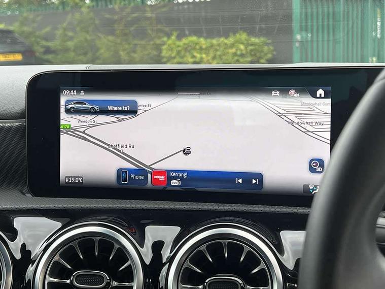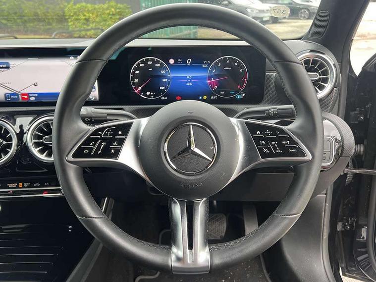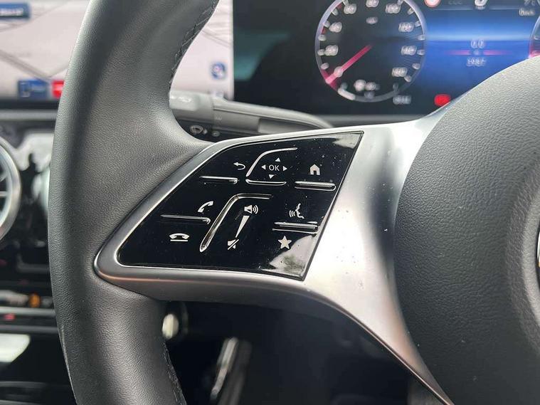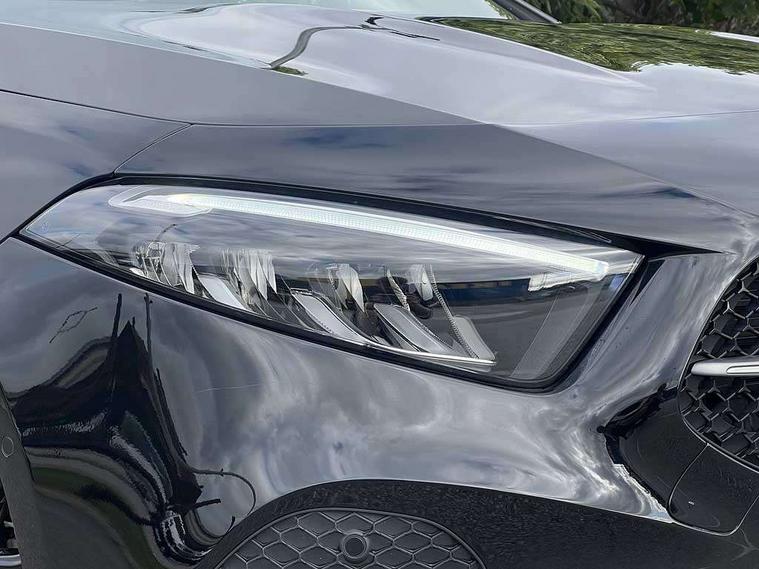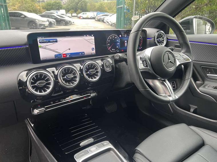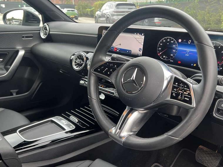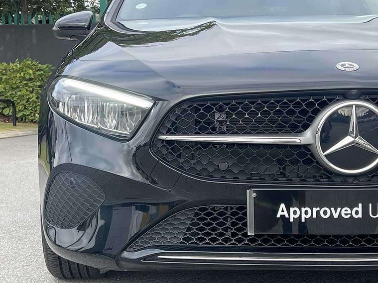 10.25 inch touchscreen central media display, 10.25" Digital instrument cluster display screen, Attention assist, Blind spot assist, Brake pad wear indicator warning light, Car wash mode, Cruise control + speed limiter, Direct steering, Direction indicators with lane change function, Dual bluetooth interfaces, DYNAMIC SELECT with a choice of driving modes (ECO, Comfort, Sport and Individual), ECO start/stop function, Engine start/stop button, Fingerprint scanner, Fluid level warning indicator for fuel, oil, coolant and washer fluid, Fluorescent jacket for driver, Hard-disk navigation, Hey Mercedes Voice activation, Lamp failure indicator, Lane keeping system, Mercedes me connect including emergency call system, accident recovery, breakdown and maintenance management, Mercedes me remote services, Outside temperature gauge, Owners manual in English, Pre-installation of private car share, Preinstallation for Mercedes Benz link, Remote boot closing, Service indicator (ASSYST), Smartphone integration with Apple CarPlay and Android auto, Speed limit assist, Speed sensitive power steering, Trip computer in multifunction display with current consumption indicator, Wireless charging, Lowered comfort suspension, DAB Digital radio, MBUX multimedia system, Mercedes Benz sound system (100 W) with 6 speakers, 4 Electric Front and Rear windows, Adaptive brake lights, Body colour bumpers, Body colour door handles with chrome inserts, Body colour side skirt, Body coloured door mirrors, Chrome beltline strips, Diamond radiator grille with pins in fine star pattern, Electric adjustable and heated door mirrors with integrated LED side indicators, Exhaust system with 2 visible tailpipe trim elements and rear apron, Headlamp assist automatic headlamp activation, Heat insulating dark tinted rear and rear side windows, Heated glass rear windscreen + timer control, LED High Performance headlamps including integral LED daytime running lamps and adaptive highbeam assist, LED tail lamp, Privacy glass, Radio aerial, Rain sensing windscreen wipers with two sensitivity settings, Rear boot, Rear fog lights, Rear side wing doors, Third brake light featuring LED technology, Window line trim strip in chrome, 3 seat bench in 2nd row, 3 spoke ARTICO man-made leather multifunction sports steering wheel, 4 way lumbar support, 40:20:40 split folding rear seats, Air conditioning - One zone thermatic automatic climate control with automatically controlled air distribution, Artico man-made leather upholstery, Automatic child seat recognition sensor, Black air vents with surround in silver chrome, Black roof lining, Front centre armrest with stowage, Front comfort seats with adjustable head restraints, Front door sills with Mercedes Benz lettering, Front seat backs luggage nets, Gearshift paddles on steering wheel, Heated front seats, Height/reach adjustable steering column, Interior lighting - 64 colour Ambient lighting, Interior mirror with reading lamps in black and frameless, Rear armrest with 2 cupholders, Rear head restraints, Seat occupancy sensor for front passenger seat, Single front passenger seat, Stowage compartment in centre console with retractable cover, Sunvisors with illuminated vanity mirrors, Twin front cupholders, Velour floor mats, Keyless go comfort pack - A Class, Light and sight package - A Class, Mirror package - A Class, Parking pack with 180 degree view - A Class, Seat comfort pack - A Class, USB pack plus - A Class, 3 rear 3 point seatbelts, ABS with Brake Assist, Active bonnet, Active brake assist includes forward collision warning system with autonomous braking, Adaptive brake assist with hold function and hill start assist, Black seatbelts, Bonnet with power domes, Childproof locks manually operated for rear doors and electrically operated for rear power windows, Crash responsive emergency lighting, Driver and passenger head and side airbags, Drivers knee airbag, Dual stage driver/passenger airbags, Electronic parking brake, ESP curve dynamic assist, ESP with ASR, Front and rear seatbelt reminder, ISOFIX and top tether child seat fixing points in two outer rear seats, Tyre pressure monitoring system, Warning triangle and first aid kit, Window airbags, Alarm system/interior protection/immobiliser, Guard 360 degree vehicle protection, Remote central locking and crash sensor with emergency opening function, Dark carbon fibre interior trim, 17" 5 spoke light alloy wheels, aerodynamically optimised, painted in black with high sheen finish, Summer tyres, Tirefit sealant kit,