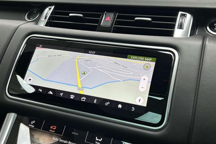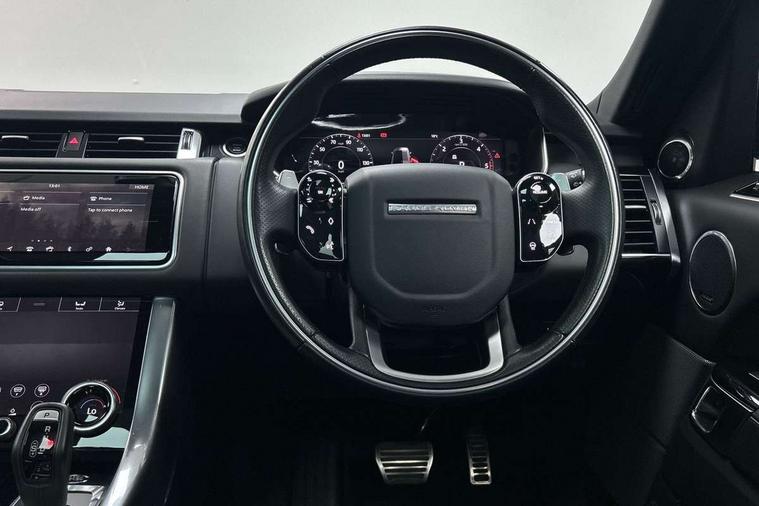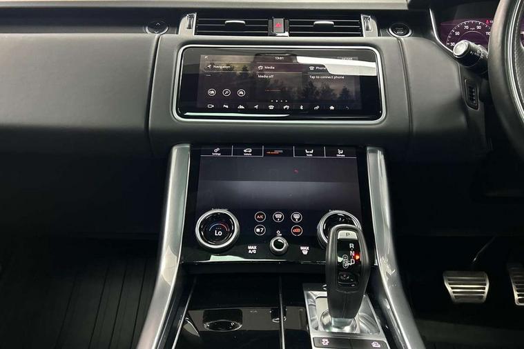 All Terrain Info Centre, Android Auto, Apple car play, Bluetooth connectivity, Electric power assisted steering (EPAS), Incontrol apps in vehicle touchscreen, Interactive Driver display instrument cluster, Mist sensor, Navigation pro system with 10" touch screen, app interface and media storage, Pro services and wifi hotspot, Push button start, Remote premium - Upgraded Incontrol remote app including remote climate control (engine dependent), remote lock + Unlock and remote beep + flash, TFT Virtual Instrument Panel, Touch pro duo system, Trip computer, Adaptive dynamics, All terrain progress control, Electronic active differential with brake torque vectoring, Electronic air suspension with dynamic response (active roll control), Gradient release control (GRC), Terrain Response 2 with dynamic program, Twin speed transfer box, Bluetooth audio streaming, DAB Radio (Digital Audio Broadcasting), Incontrol protect - SOS emergency call with automatic collision detection, optimised assistance call and Incontrol remote app essential, USB/aux input socket, Acoustic front and toughened rear side glass, Acoustic laminated front windows, Adaptive brake lights, Auto dimming interior rear view mirror, Automatic headlights, Body coloured side sills and bumpers corners, Centre high mounted stop light, Electric windows with one touch open/close and anti trap, Electrical towing preparation, Engine cover, Follow me home lighting, Front and rear recovery eyes, Front fog lights, Headlight power wash, Heated rear window, Heated windscreen includes heated washer jets, Illuminated metal treadplates with brand name script, LED rear lamps, Privacy glass (Tinted glass rear of B pillar), Rain sensing windscreen wipers, Rear fog lights, Rear side wing doors, Rear wash/wipe, Remote window closing, Side repeater indicators in mirror, Sport Badge in black, Standard bonnet, Trailer stability assist, Twin bright tailpipes, 2 way active front head restraints, 2 way rear head restraints, 3 seat bench in 2nd row, Auto air recirculation, Bright metal foot pedals, Centre console with armrest, Climate control memory, Customer configurable single point entry, Driver's footrest, Extended leather upgrade includes door top rolls and leather instrument panel mid section, Front and rear cupholders, Front door storage space, Front map lights, Front seat back map pockets, Front stowage pocket, Front/rear passenger grab handles, Heated steering wheel, Isofix child seat preparation, Leather steering wheel with Atlas inserts, Loadspace light, Loadspace mounting provisions, Lockable glovebox, Multifunction steering wheel, Perforated Windsor leather upholstery, Pollen filter, Power socket, Reach/rake electric adjustable steering column + entry/exit tilt away, Rear centre armrest, Rear ISOFIX, Roller blind loadspace cover, Satin chrome gearshift paddles, Single front passenger seat, Sports pedals, Three 12V accessory power outlets, Black Exterior pack - Range Rover Sport Dynamic, Smartphone pack - Range Rover Sport, 3 point seatbelts on all seats, Anti-lock braking system (ABS), Brake pre-fill technology, Cornering brake control (CBC), Curtain airbags, Customer configurable autolock, DSC - Dynamic Stability Control, Dual stage driver/passenger airbags, EBD - Electronic brakeforce distribution, Electric parking brake, Electronic traction control, Emergency braking includes city, urban AEB and pedestrian, Front seatbelt pretensioners, Gradient acceleration control, Grey anodised brake calipers, Height adjustable front seatbelts, Hill descent control, Hill launch assist, Low traction launch, Passenger seat occupant detector with front airbags, Power operated child locks, Roll stability control, Seatbelt warning, TPMS (Tyre pressure monitoring system), Immobiliser, Intrusion sensor, Keyless entry, Locking wheel nuts, Perimetric and volumetric anti theft alarm, Remote locking, Grand black veneer,