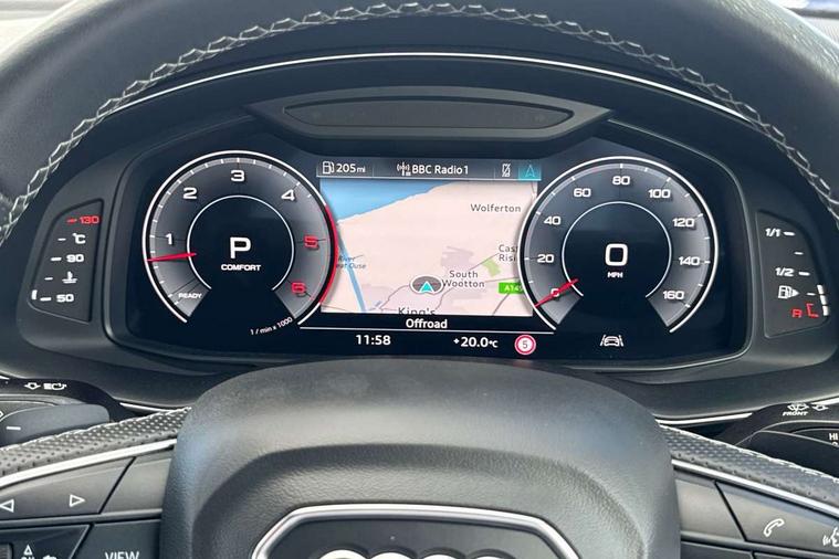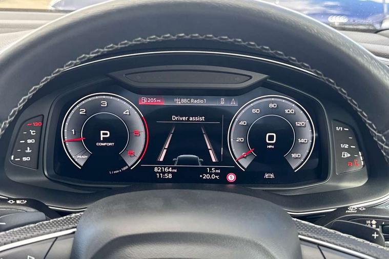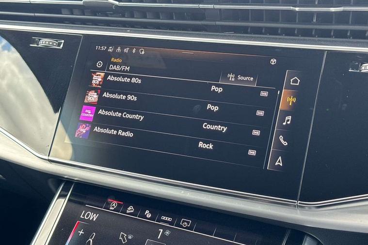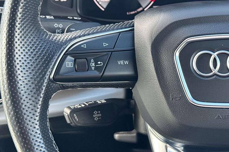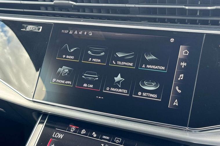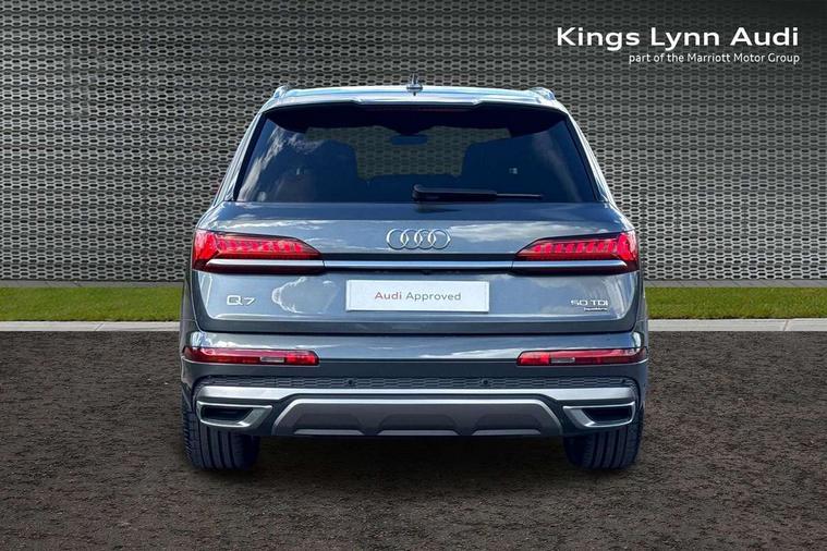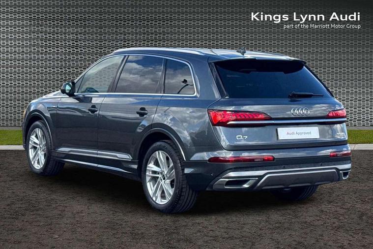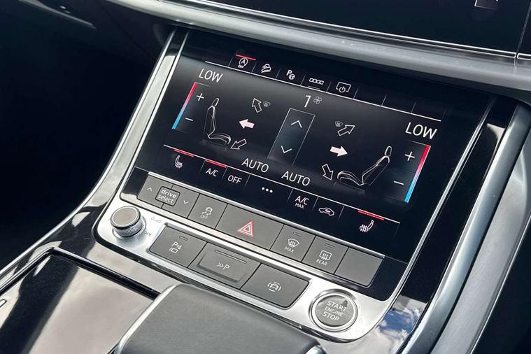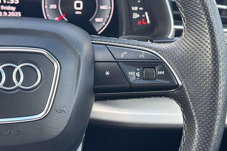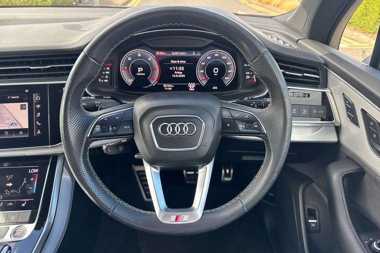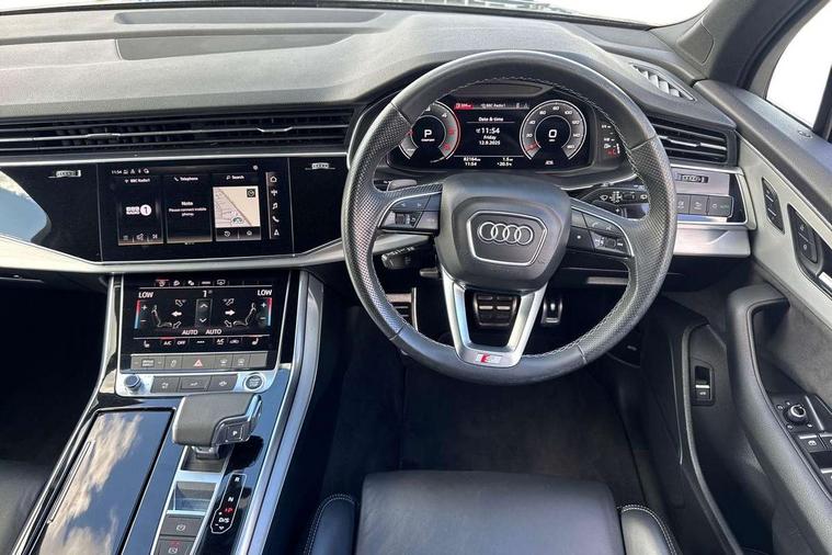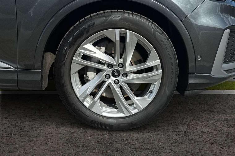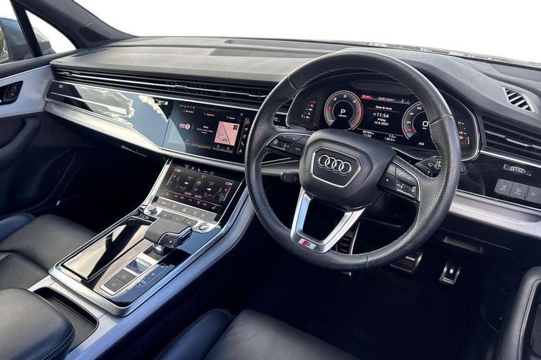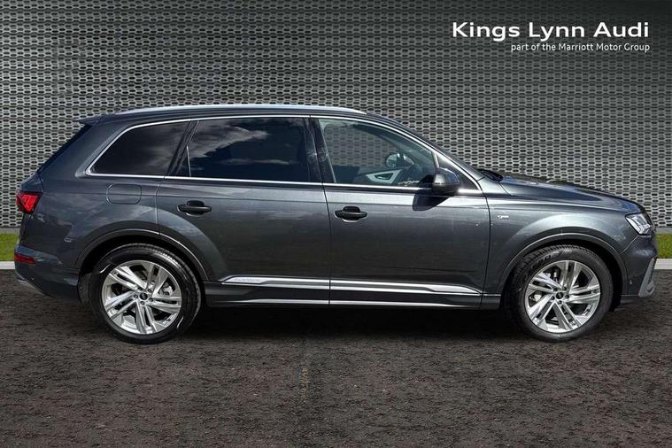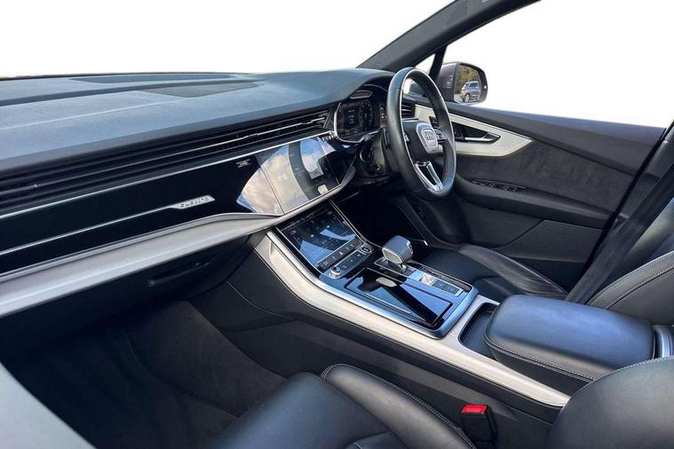 Audi connect safety and service (e-call), Audi connect with Amazon Alexa Integration, Audi drive select (Auto, Comfort, Dynamic, Efficiency, Individual, Off-road and All road), Bluetooth interface, Camera based traffic sign recognition, Electromechanical steering, MMI navigation plus with MMI touch screens includes 10.1" and 8.6" screens with haptic feedback, Natural voice recognition, Parking system plus with 360 degree display (front, rear and side sensors) - acoustic and visual park assist system, Power operated tailgate, Rear view camera, Smartphone interface includes wireless Apple carplay/Android Auto, Start/stop system, 48V Mild hybrid technology, Adaptive air suspension, Quattro all wheel drive with self locking centre differential, Audi music interface - front 2 USB-C ports with charger and data functions, Audi sound system with 6 channel amplifier, 180 watt amplifying capacity and 10 loudspeakers including subwoofer, DAB digital radio module, 3rd brake light, Aluminium roof rails, Aluminium window trim, Audi matrix LED headlights with dynamic front and rear indicators, Auto dimming frameless rear view mirror, Body coloured door mirrors, Electrically adj heated/folding + automatically dimming exterior mirrors with memory + automatic kerb side function for passenger side exterior mirror, Heat insulating glass in windshield, Integrated LED indications in door mirrors, LED daytime running lights, LED rear tail lights, Privacy glass - dark tinted rear and rear side windows from B-pillar backwards, Rear side wing doors, Rear wiper, S Line badge on wings, S line bumpers in full body colour paint finish, S line roof spoiler, S line styling side ventilation grilles and side skirts, 2 seat bench in 3rd row, 2 zone automatic climate control, 3 seat bench in 2nd row, 7 seat layout with ISOFIX points for the front passenger seat and rear passenger seat, Black cloth headlining, Comfort front centre armrest, Electric adjustable front seat with 4 way lumbar support, driver memory functionality, Folding rear seats, Front head restraints, Front/rear floor mats, Heated front seats, Illuminated door sill trims with S logo, LED interior ambient lighting, Luggage compartment cover, Luggage compartment sill protection in stainless steel, Rear head restraints, Single front passenger seat, Stainless steel pedals, Sunvisors with illuminated vanity mirrors, 3 point seatbelts on all rear seats, Audi pre sense front, Child locks on rear doors, Driver and front passenger, front side and curtain airbags, Electromechanical parking brake, Electronic Stabilisation Control (ESC) including ABS, ASR and EDL, Extended pedestrian protection measures, Hill hold assist, Seatbelt monitoring, Tyre pressure loss indicator, Warning triangle and first aid kit, Anti theft alarm, Anti-theft wheel bolts and wheel loosening detection, Keyless Go, Remote central locking, Darkened matt brushed aluminium inlays, Tool kit, Tyre repair kit,