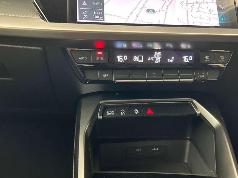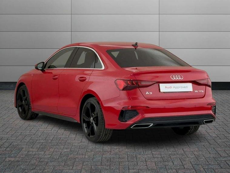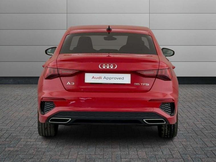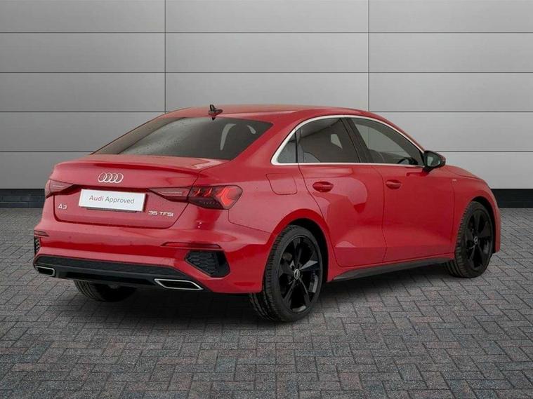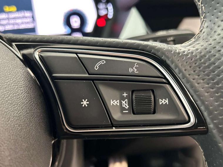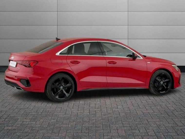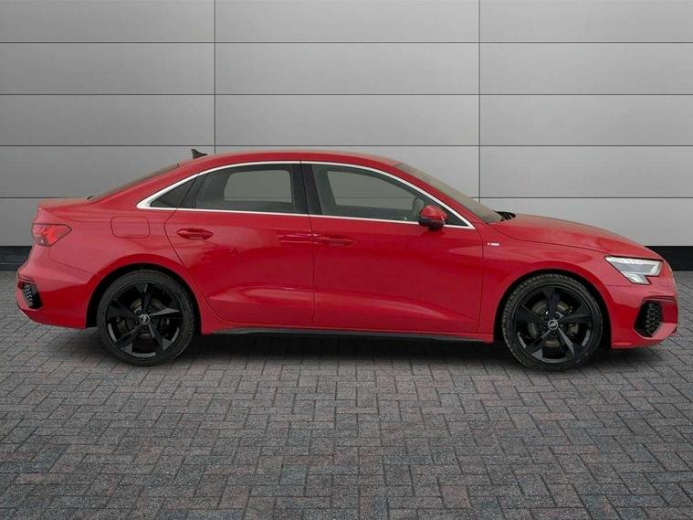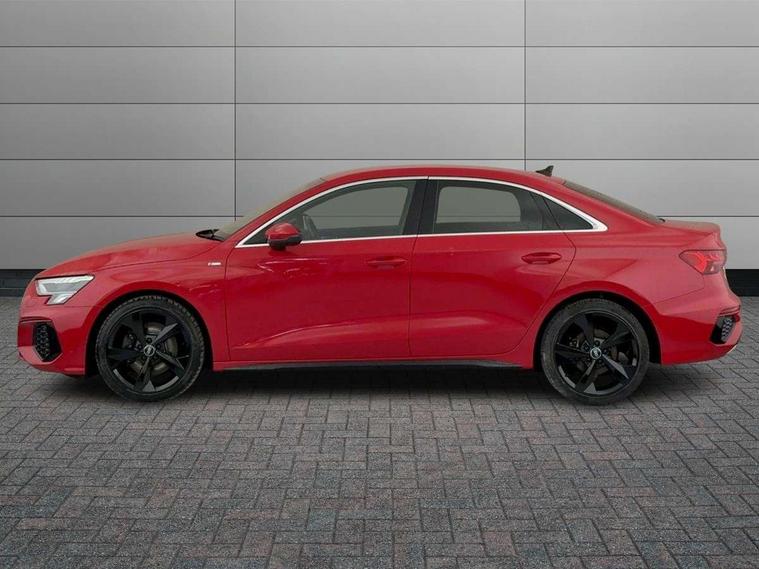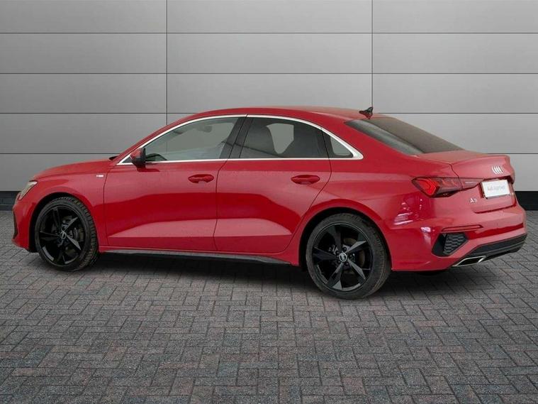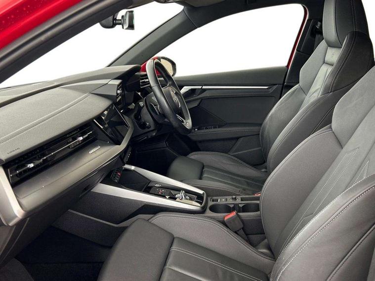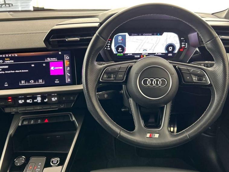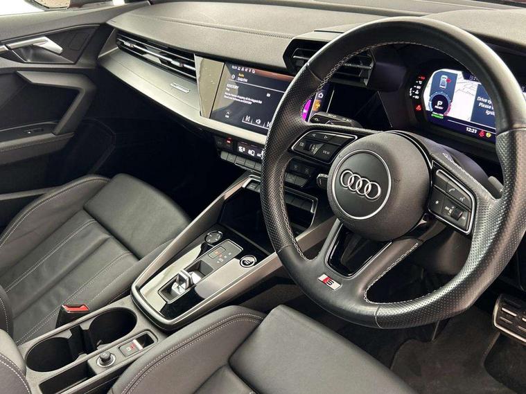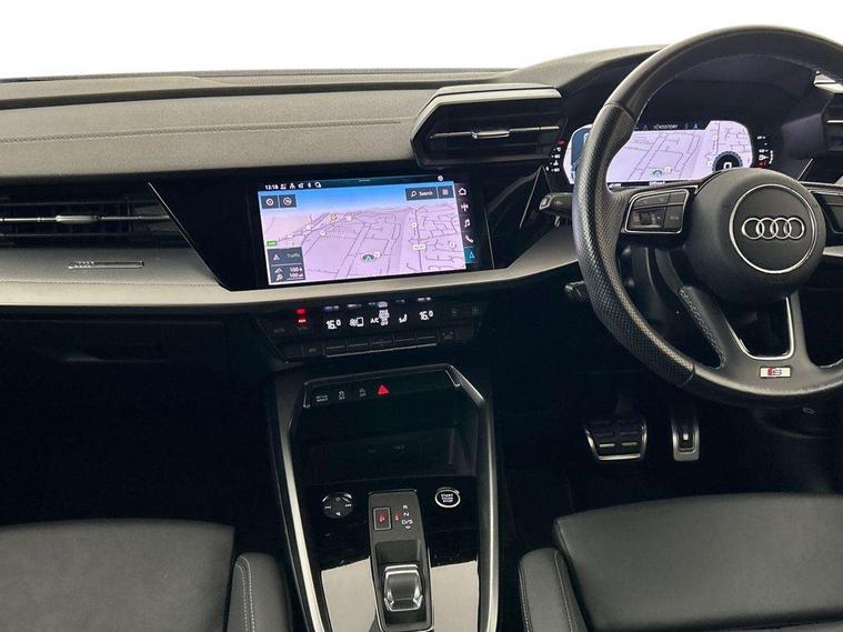 Aluminium air vent surrounds, Aluminium trim elements, Dark spectrum aluminium inlays, accent surfaces in the dashboard and centre console in platinum grey silk effect paint finish, Aluminium interior elements pack - A3 Saloon, S line styling pack - A3 Saloon, 3x3 point rear seat belts, Driver and front passenger airbag with passenger airbag deactivation, Electronic Stabilisation Control (ESC) including ABS, ASR and EDL, First aid kit with warning triangle and 2 safety vests, Front side airbags with head airbags and interaction airbag, Hill hold assist, Pre-sense front with pedestrian and cyclist detection, Seatbelt monitoring, Tyre pressure loss indicator, Anti theft alarm, Anti-theft wheel bolts, Electronically operated child lock, Immobiliser, Remote control central locking, 6 passive loudspeakers, CD player, DAB Digital radio, Acoustic glass windscreen, Aluminium window trim, Auto dimming frameless rear view mirror, Body colour exterior mirrors, Electrically adjustable/heated/folding/dimming door mirrors with kerb view includes integrated LED indications + kerb view function for passenger side, Front electric windows, Illuminated door sills with aluminium inserts at the front with S logo, LED daytime running lights, Light and rain sensors, Model and engine designation badges at rear, Privacy glass - dark tinted rear window, rear door and side windows, Rear electric windows, S line bumpers, S roof spoiler, 12V socket and storage compartment in front centre console, 40/20/40 split folding rear seat bench with cupholder, Black cloth headlining, Dual zone electronic climate control, Front and rear centre armrest in leather, Front and rear headrests, Front/rear floor mats, Height and reach adjustable steering wheel, Interior lighting - glove compartment light and right hand side, Luggage compartment floor covering, Manual boot compartment lid, Manually adjustable front seats, Seat side bolsters, Stainless steel pedals and front footrest, Twin leather upholstery with front sports seats S embossed logo, 2x USB Type C ports (for charging and data transfer), Audi connect emergency call and service, Audi drive select (Auto, Comfort, Dynamic, Efficiency and Individual), Audi smartphone interface, Audi Virtual Cockpit - 10.25" digital and colour instrument cluster, Automatic start/stop system with recuperation, Bluetooth interface, Collision avoidance assistant, Electromechanical power speed sensitive steering, Lane departure warning system, MMI Navigation Plus with high resolution 10.1" colour touch screen display, Service indicator, Voice control system with natural language interaction,