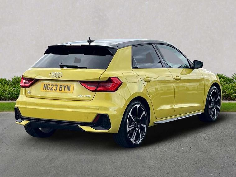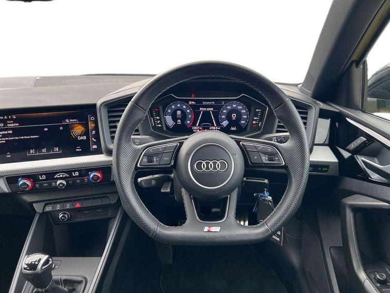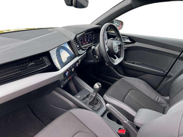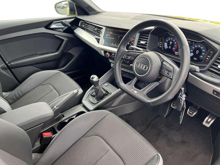 10.25" Digital instrument cluster display classis style instrument dials + speed, odometer, time, outside temperature, telephone menu + fuel level warning, Audi drive select - power steering assistance + engine, Audi smartphone interface with connect compatible smartphone via USB directly MMI display + Nav, music, third party apps controlled via MMI controller, Automatic start/stop system, Bluetooth interface, Cruise control, Driver's information system, Electromechanical power steering, Emergency e-call, Lane departure warning system, Rear parking sensor, Service interval indicator, Speed limiter, Voice control system, Washer fluid level indicator, Sports suspension, 2 x USB type C connection points, 6 passive loudspeakers, DAB Digital radio, MMI radio plus with 10.1" colour MMI display screen and MMI touch, Auto dimming rear view mirror, Black side skirts, Body coloured bumpers, Door sill trims with aluminium inlays and logo, Electric front and rear windows, Electrically adjustable, heated, folding door mirrors with integrated LED side indicator, Front side air inlets in grained matt black and C frame in anthracite black, Front wing badges, Heat insulating glass windscreen and side windows, Heated rear windscreen, High level LED brake light, LED headlights with LED rear lights + dynamic rear indicators + headlight adjustment and high beam, turning light + LED daytime running lights, Privacy glass, Rain and light sensors, Rear fog lights, Rear side wing doors, Rear wiper, Side front spoiler lips in grained matt black, 12V socket in centre console with two cup holders, 3 rear seats with headrests, 3 seat bench in 2nd row, 3 spoke flat bottomed multi-function plus leather steering wheel with S badging, grips in preforated leather and contrast stitching, 40:60 Split folding rear seat or folded fully, Black cloth headlining, Driver and passenger seat with manual height adjust with forward and backwards adjustment, Front and rear black floor mats with contrast stitching in fine silver, Front head restraints, Front passenger seat, Height and reach adjustable steering wheel, ISOFIX child seat mounting for front passenger and outer rear seats including top tether attachment point of outer rear seats, Leather gear knob with aluminium trim, Leatherette handbrake grip, Luggage compartment light with front and rear reading lights, Manual air conditioning, Manually adjustable lumbar support in front seats, Stainless steel pedals, Black styling pack - A1 Sportback Black Edition, LED interior lighting pack - A1, Luggage compartment pack - A1, 3x3 point rear seatbelts, Audi pre-sense front with pedestrain and cyclist recognition, Brake assist function, Driver and front passenger airbag with front side and head airbags, Electronic Stability Control including ABS, EBD, ASR and EDL, Front passenger airbag deactivation switch, Hill hold assist, Manual rear child locks, Seatbelt height adjustment for front seats, Seatbelt monitoring, Tyre pressure warning light, Warning triangle and first aid kit, Anti theft alarm, Anti theft wheel bolts and loose wheel warning, Immobiliser, Remote central locking with 2 foldaway keys, Aluminium trim for control switches, air vents and digital instrument cluster, Black dashboard, Silver grey inlays polygon structure in diamond paint finish, Structured grey accent areas including air vents, door handle recesses and centre console in quartz paint finish,