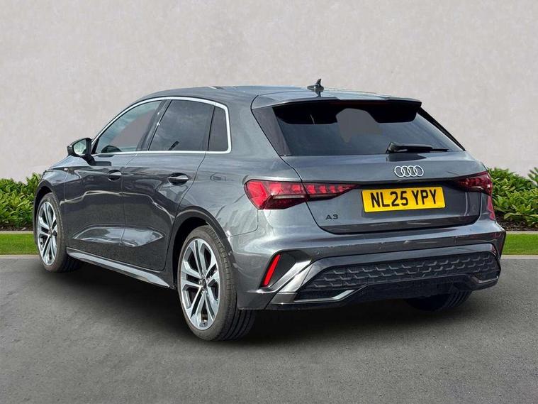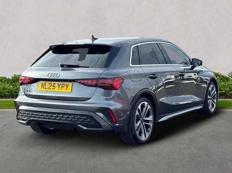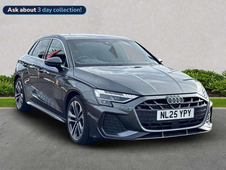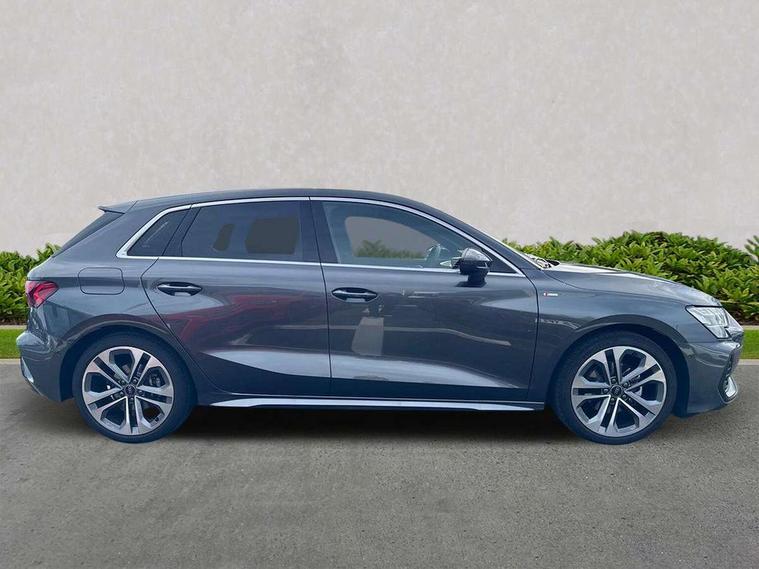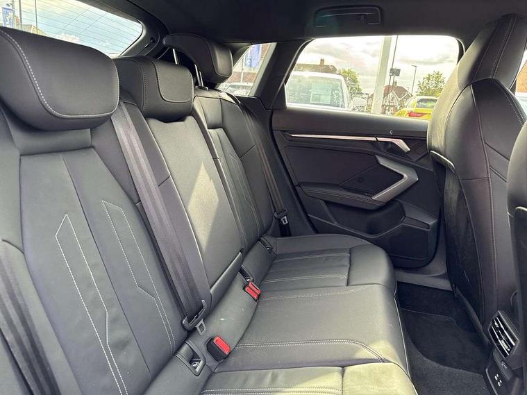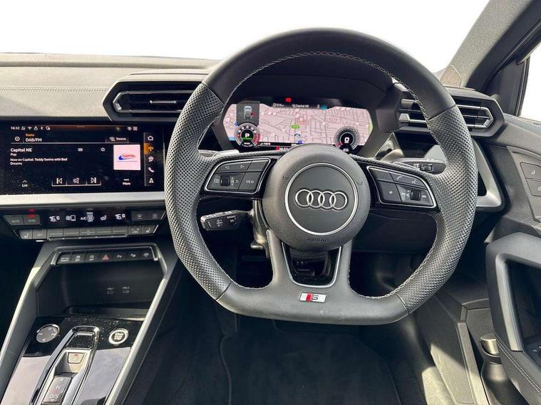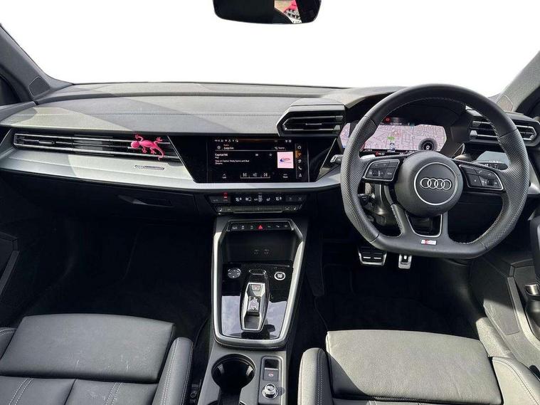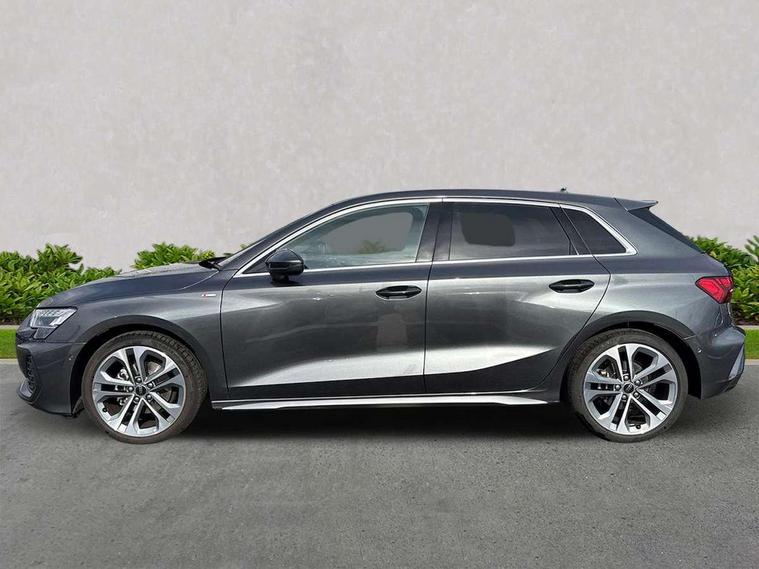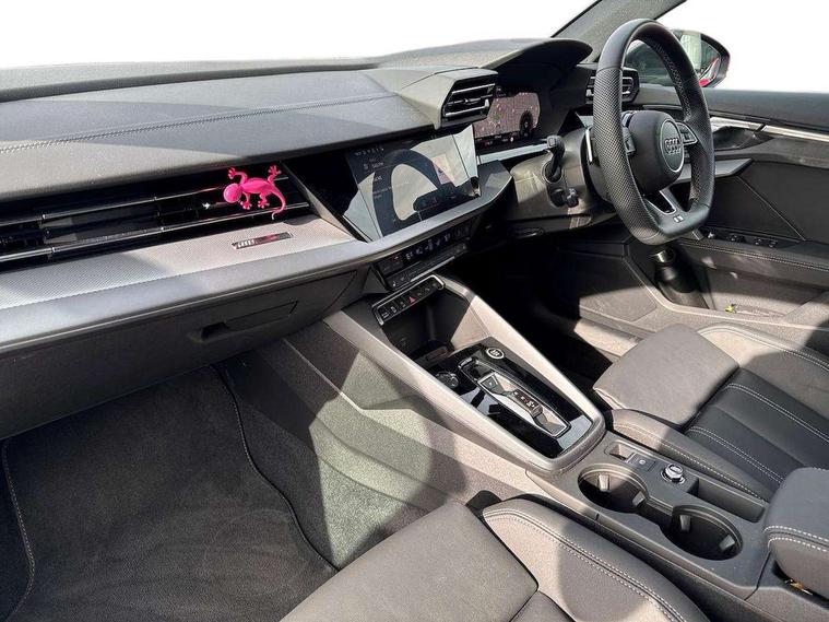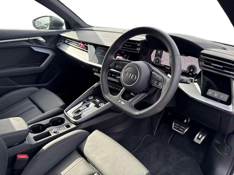 Adjustable speed limiter, Audi drive select, Audi smartphone interface with app store includes wireless Apple carplay, Android auto and Amazon alexa integration, Audi virtual cockpit plus - 12.3" full HD resolution dynamic digital instrument cluster, Automatic start/stop system with recuperation, Bluetooth interface, Camera based traffic sign recognition, Collision avoidance assistant, Cruise control, Distraction and Fatigue warning, e-Call (emergency call), Electromechanical power speed sensitive steering, Emergency assist, Lane departure warning system, MMI Navigation Plus with high resolution 10.1" colour touch screen display, Park Assist with parking system Plus, Service indicator, Tailgate, Trip computer, Voice control system with natural language interaction, Sports suspension, Audi Phonebox light with wireless charging, Audi sound system - 10 loudspeakers including centre loudspeaker and subwoofer, DAB Digital radio, USB ports with charging function in the rear, Acoustic glass windscreen, All weather light, Aluminium window trim, Auto dimming frameless rear view mirror, Automatic dynamic range control, Body colour exterior mirrors, Chrome exhaust tailpipes, Dipped beam, main beam, position light and turning light, Electrically adjustable/heated/folding/auto dimming door mirrors with integrated LED indications + kerb view function for passenger side, Exterior model badging, Front and rear side air inlets in grained matt black with dark liquid chrome frame, Front electric windows, Front radiator grill in high gloss dark chrome, Heat insulating glass windscreen, Illuminated door sills with aluminium inserts at the front with S logo, Intersection light, LED 3rd brake light, LED brake lights, LED daytime running x3, LED headlights with LED rear lights and dynamic rear indicators, LED rear number plate lights, LED reverse light, LED tail lights, Light and rain sensors, Manoeuvring light, Motorway light, Privacy glass - dark tinted rear window, rear door and side windows, Rear diffuser and grill in grained matt black with inlay in dark liquid chrome, Rear electric windows, Rear side wing doors, Rear wiper, S line bumpers, S roof spoiler, Side S line emblems on front wings, Side sill trim in dark liquid chrome, Static Cornering lights, 12V socket and storage compartment in front centre console, 3 seat bench in 2nd row, 3 spoke flat bottomed leather multifunction sport steering wheel with gear shift paddles, 3-zone deluxe automatic air conditioning, 4 way electrically adjustable lumbar support for driver and front passenger, 40/20/40 split folding rear seat bench, Black cloth headlining, Black front and rear floor mats, Front and rear centre armrest in artificial leather with contrasting stitching on armrests and instrument panel, Front and rear headrests, Heated front seats, Height and reach adjustable steering wheel, Manual boot compartment lid, Manually adjustable front seats, Rear centre armrest with cupholder, S badging on the steering wheel, Seat side bolsters, Single front passenger seat, Stainless steel pedals and front footrest in black, Twin leather upholstery with front sports seats S embossed logo, Aluminium interior elements pack - A3, Multi-coloured LED interior lighting package with Multi-coloured contour lighting of instrument panel - A3, 3x3 point rear seat belts, Driver and front passenger airbag with passenger airbag deactivation, Electronic Stabilisation Control (ESC) including ABS, ASR and EDL, First aid kit with warning triangle and 2 safety vests, Front side airbags with head airbags and interaction airbag, Hill hold assist, Pre-sense front with pedestrian and cyclist detection, Seatbelt monitoring, Tyre pressure loss indicator, Anti theft alarm, Anti-theft wheel bolts, Electronically operated child locks, Immobiliser, Remote central locking with safelock, Black dashboard, Inlay in dark aluminium spectrum,