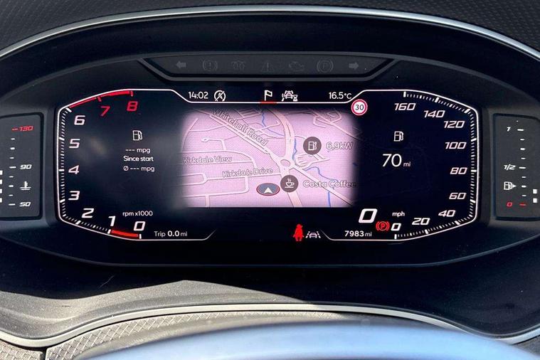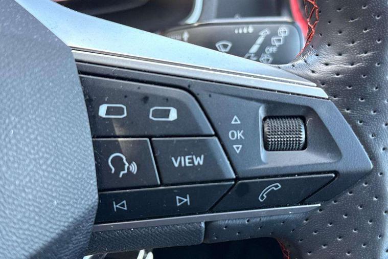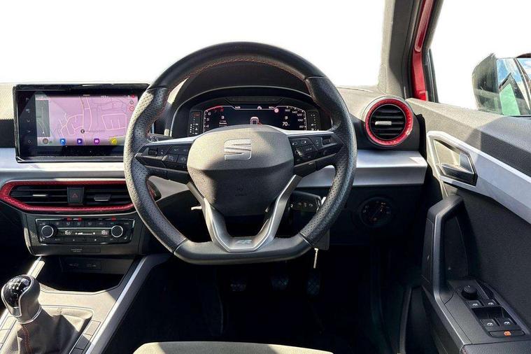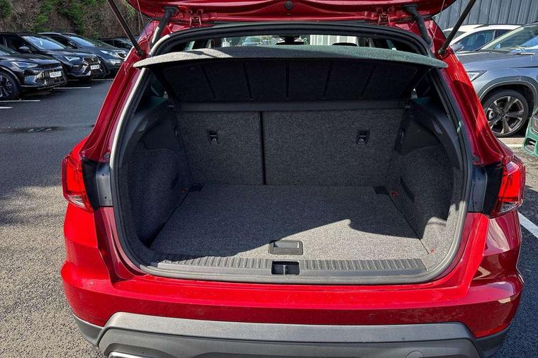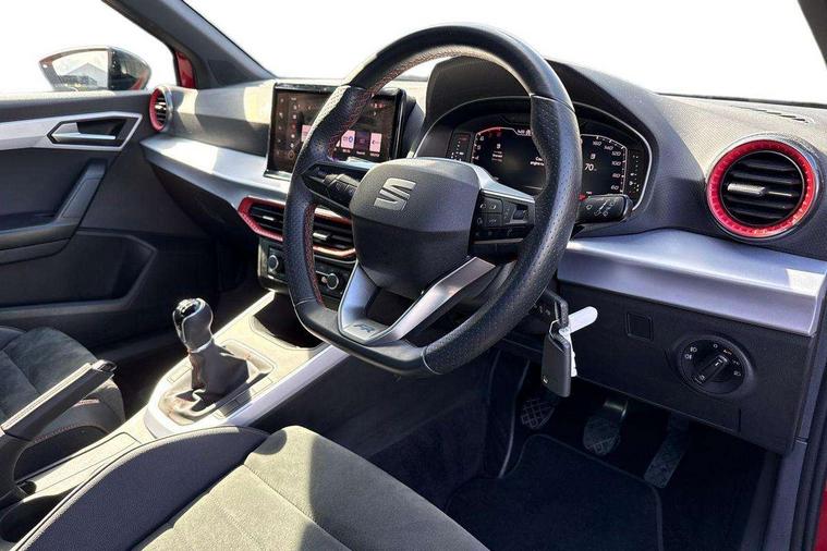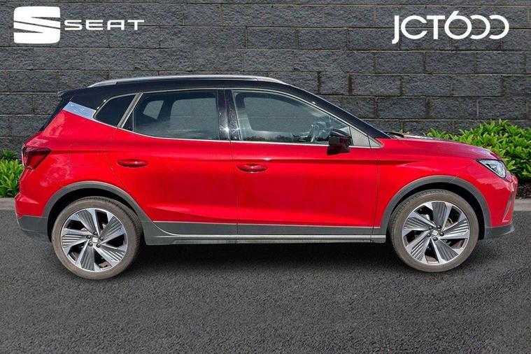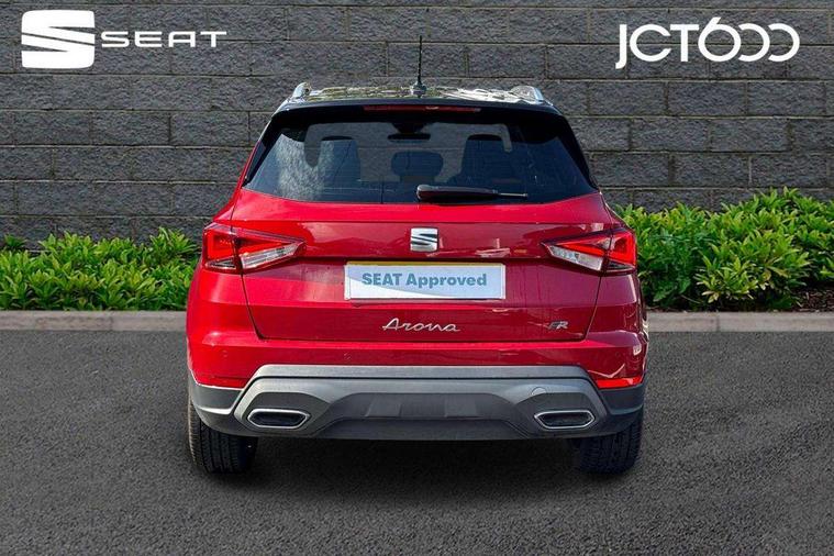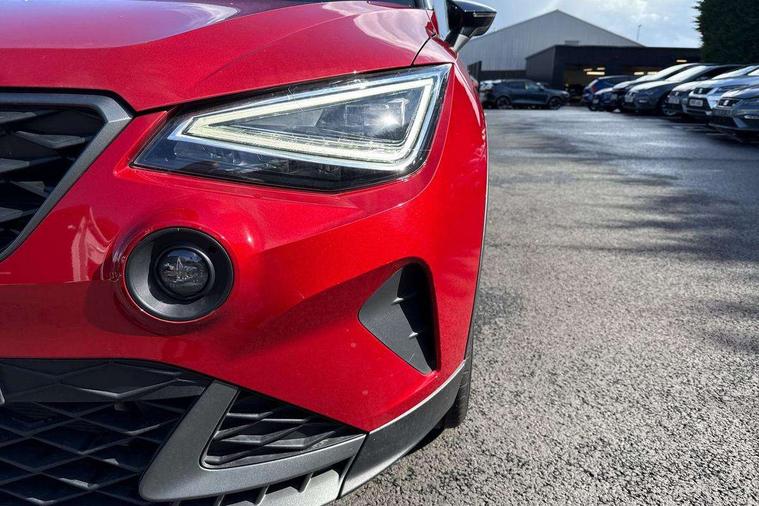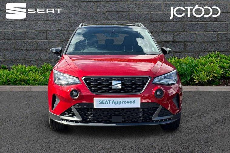 'Lights On' Reminder warning buzzer, 10" Digital cockpit, Digital clock, E-call, Electric speed sensitive power steering, Full Link Smartphone Integration with Mirror Link, Apple Car Play, Google Android Auto with USB Type C cable for Apple and Android compatibility, Lane keeping system, Low fuel warning light, Outside temperature display, RPM counter, SEAT Drive profile - Four different models normal-sport-eco-individual, steering response, throttle response, Trip computer, Wireless phone charger, 9.2" colour touchscreen with navigation system, voice control and USB port (type c), Bluetooth interface for hands free and audio streaming, DAB digital radio and AM/FM radio, Steering wheel mounted audio controls, Anti theft roof antenna, Auto dimming interior rear view mirror, Automatic activation of hazard warning lights, Body coloured bumpers, Body coloured door handle inserts, Chrome roof rails and window surrounds, Dark tinted rear windows, Electric front/rear windows, Electrically adjustable, heated and folding door mirrors, Front fog lights with cornering function and rear fog light, FULL LED automatic headlights with dynamic headlight range control, coming and leaving home, LED daytime running lights, LED rear tail lights and licence plate lights, Protective side mouldings, Rain sensing wipers, Rear side wing doors, Rear spoiler, Rear window wash/wipe, Roof colour door mirrors, Third brake light, Twin exhaust pipe styling hidden exhaust pipe, Visible VIN plate, 2 cupholders, 3 seat bench in 2nd row, 60/40 split folding rear seat, Aircare filter, Black interior roof, Double boot floor, Driver sunvisor with covered mirror + card holder, Dual zone climate control, Front comfort seats, Front courtesy light with front reading lights, Front seat back storage pockets, Gear shift indicator, Heated front seats, Height adjustable front seats, Height/reach adjustable steering column, Illuminated boot, Instrument lighting with brightness control, Interior ambient lighting, Interior light in footwell, central console and door panel, ISOFIX points in outer rear seats with top tether anchorage points, Microsuede cloth upholstery, Passenger sunvisor with vanity mirror, Perforated flat bottomed leather steering wheel/gear knob/handbrake with red stitching and FR logo, Potentiometer, Single front passenger seat, Two front and three rear height adjustable headrests, Interior chrome pack - Arona, Safe and driving pack (S) - Arona, 3 point seatbelts on all rear seats, ABS, Active front headrests, Child locks on rear doors, Driver and front passenger airbags with front passenger airbag de activation, front side and curtain airbags, Emergency Brake Assist (EBA) and front assist, Front and rear seatbelt reminder, Hill hold control, Multi-Collision braking, Tiredness recognition system, Traction control, Tyre pressure monitoring system, Alarm with back-up horn, Electronic engine immobiliser, Locking wheel bolts, Remote central locking + deadlocks, Tow away protection, Titan black dashboard, 18" Performance Cosmo grey matt alloy wheels,