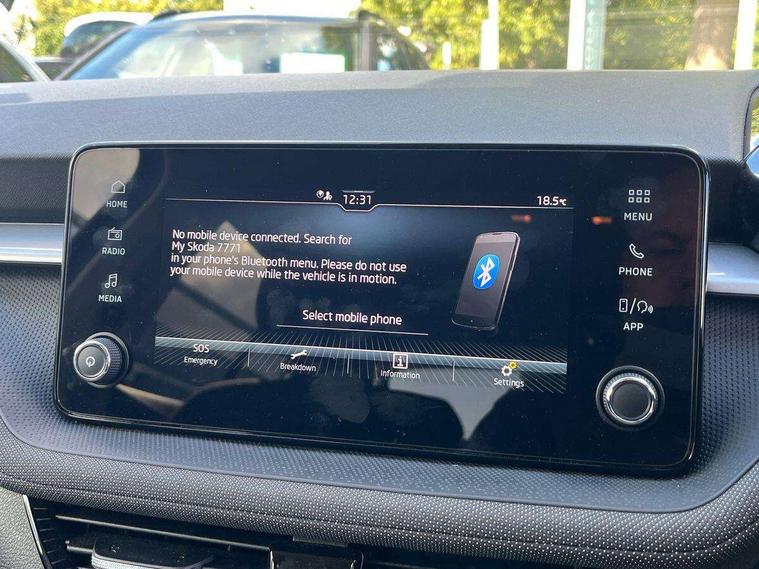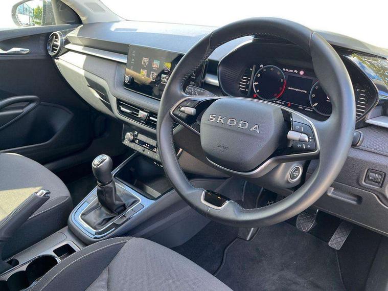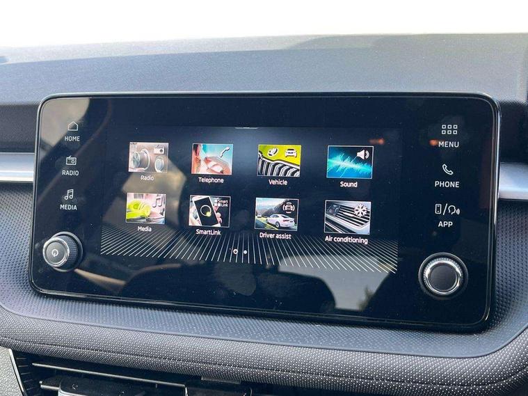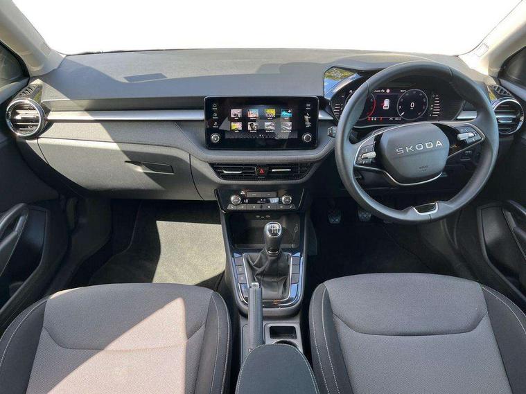 Advanced driver attention and drowsiness monitor, Bluetooth connection, Electromechanical power steering, Exterior temperature gauge, Service interval indicator, Traffic sign recognition, Virtual cockpit with 10.25" colour display, Wireless SmartLink for Apple CarPlay and Android Auto, 6 Speakers (4 in front and 2 in rear), Auxiliary socket for external MP3 player, DAB digital radio reception, Auto dimming rear view mirror, Body coloured bumpers, Door mirror integrated indicators, Front and rear electric windows, Front window wiper intermittent control, Headlight range control - Automatic, Ice scraper in fuel cap, LED daytime running lights with coming and leaving home feature, LED rear lights, Privacy glass, Rear LED fog light, Rear side wing doors, Rear window wiper with washing nozzles, Roof mounted spoiler, SKODA tailgate lettering in chrome, Third brake light, Unique dark chrome design logo on alloy wheels, 2 reading lights in front and 2 reading lights in rear, 3 rear headrests, Backrest split and folding, Central console with removable cup holder and storage box, Chrome handbrake release button, Dual zone air conditioning with climatronic electronic control, Fabric upholstery, Front centre armrest, Gearshift knob/handle in leather, Grain satin black interior door handles, Hand brake lever handle in leather, Height adjustable front headrests, Height adjustable front seats, Height adjustable steering wheel, ISOFIX and TopTether anchorage points to the outer rear seats, ISOFIX and TopTether on the front passenger seat, Luggage compartment lighting, Manually adjustable lumbar support in front seats, Pollen filter, Rear seat bench unsplit, Single front passenger seat, Skoda lettering on steering wheel, Storm grey headlining, Sun visors with mirror and airbag label on passenger side, Textile floor mats, Ticket holder, Umbrella in drivers door, 3-point height adjustable front seats belts with pretensioner and force limiter, Automatic warning lights in case of crash, Driver and passengers airbag with switch off function, e-Call+, ESC including ABS, MSR, ASR, EDS, HBA and XDS, Front and rear seat belt warning, FRONT ASSIST (AEB City and AEB Inter Urban), Front side airbags, Head airbags, One tone horn, Pedestrian protection, Three rear 3-points safety seat belts with pretensioner and force limiter including stop function for outer rear seat belts, Tyre pressure monitoring system, Anti-theft alarm system including immobiliser, interior monitoring, backup horn, and towing protection, Central locking with radio remote control, interior controls, SAFE function and 2 foldable keys, Black painted air vents, Grain satin black central console cover, Metallic grey upper decorative trim, Satin black door and side trim panel in front, Textile Kota grey lower decorative inserts, Anti-theft wheel bolts protection, Super-low rolling resistance tyres,