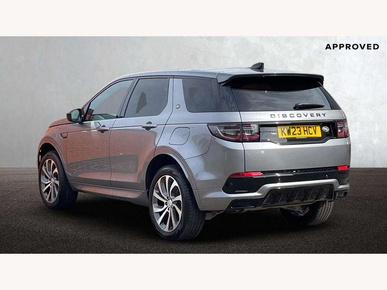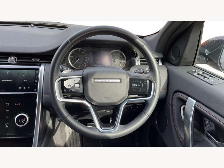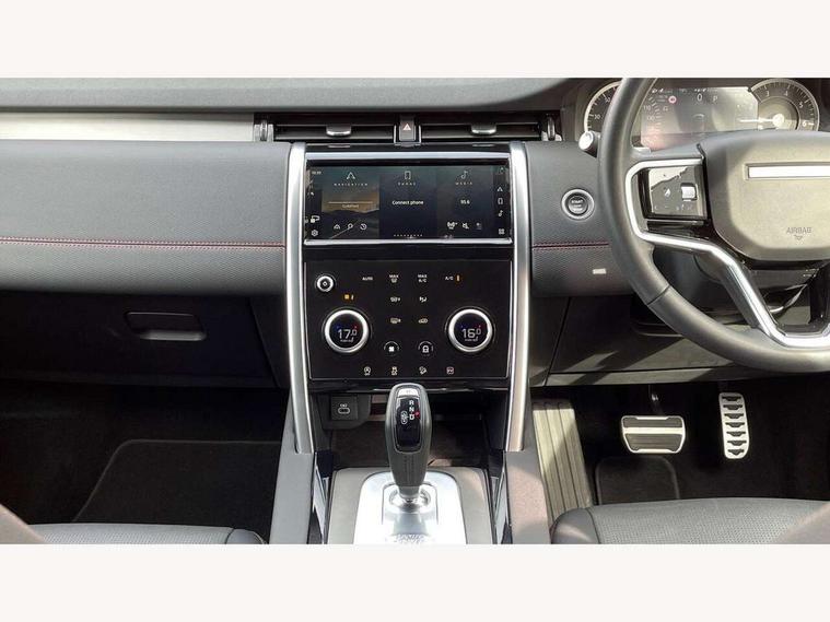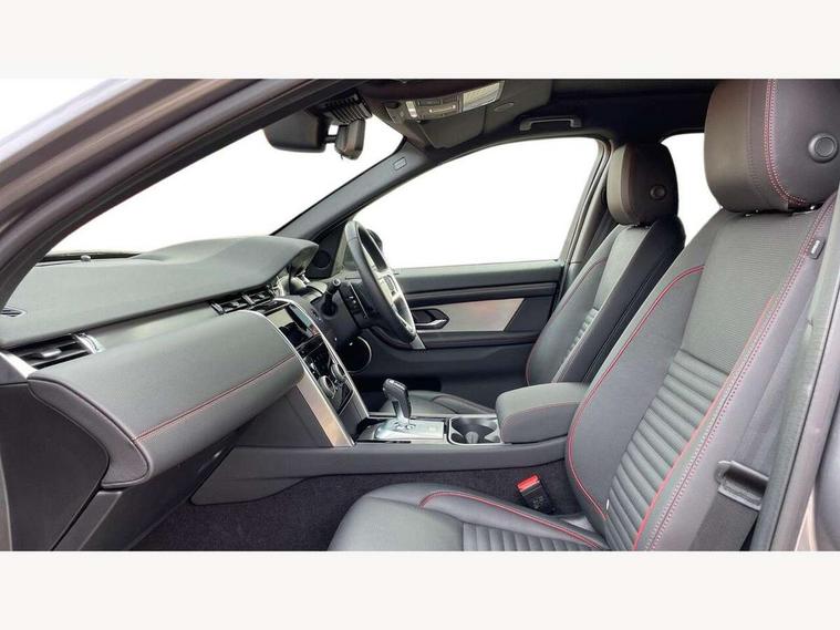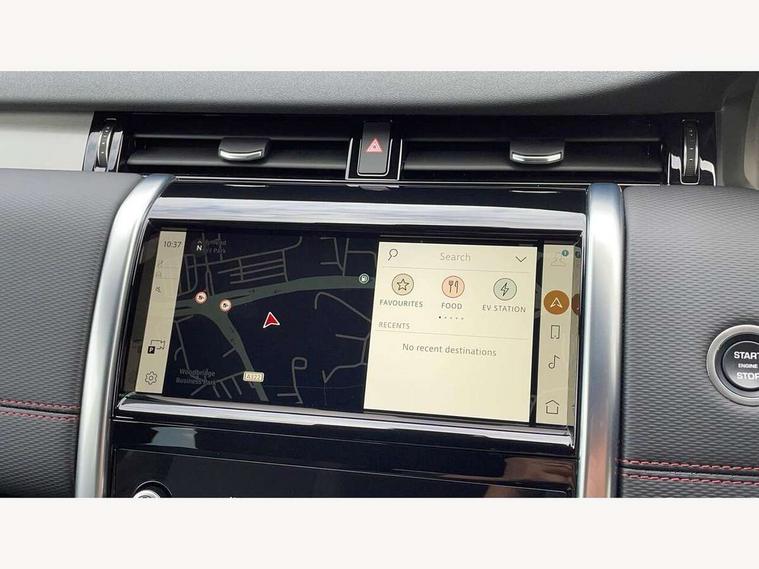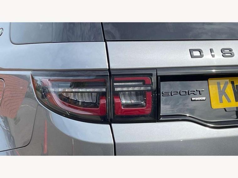 10" touch screen, Adaptive cruise control, Android Auto, Apple CarPlay, Driver condition monitor, eCall emergency call system, Front and rear parking aid, InControl remote premium, Lane keep assist, Locking fuel flap, PAS, Pivi Pro connected navigation system with upgraded Infotainment, Powered tailgate/boot lid, Push button start, Service interval indicator, Traffic sign recognition with adaptive speed limiter, Trip computer, Wade Sensing, 7 kW onboard charger, All terrain progress control, Coil suspension system, Dynamic stability control, Home charging cable, Public charging cable, Terrain Response 2, Bluetooth connectivity including audio streaming, Digital Audio Broadcast radio-DAB, Steering wheel mounted audio controls, 3rd brake light, Automatic headlights, ClearSight interior rear view mirror, Electric front/rear windows, Electric heated/power fold door mirrors with approach lights and auto dimming driver side, Front and rear recovery eyes, Heated rear window, Heated windscreen including heated washer jets, P300e badge, R Dynamic badge, Rain sensing windscreen wipers, Rear fog lights, Rear side wing doors, Rear wing door, Rear wiper, 5 standard seating configuration, Bright metal pedals, Centre console with armrest, Footwell lights, Front and rear grab handles, Front passenger isofix child seat attachment, Loadspace cover, Loadspace light, Overhead lighting console, Overhead stowage for sunglasses, Rear headrests, Satin chrome gearshift paddles, Sunvisors with illuminated vanity mirrors, Tilt/reach adjustable steering wheel, Black exterior pack - Discovery sport R-Dynamic SE/HSE, Online pack with data plan - Discovery, 3 point seatbelts on all seats, ABS, Brake hold function, Child locks on rear doors, Collision mitigation braking system, Cornering brake control (CBC), Driver/Front Passenger airbags, Drivers knee airbag, Electronic brake force distribution, Electronic parking brake, Emergency brake assist, ESP + traction control, Hill descent control, Hill launch assist, Pedestrian airbag system, Rear seat ISOFIX, Roll stability control, Side and curtain airbags for front and 2nd row seats, Trailer stability control, Tyre pressure monitoring system, Battery Back Up System (BBUS) with tilt sensor, Global lock and unlock switch on driver door, Intrusion sensor, Keyless entry, Locking wheel nuts, Centre stack rails in noble chrome,