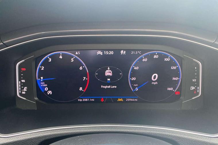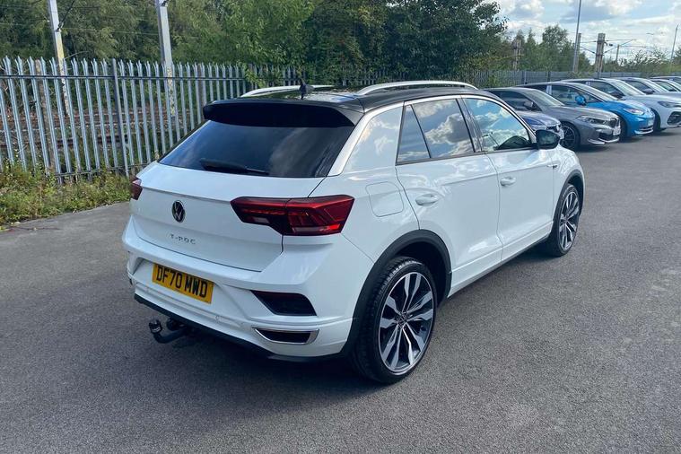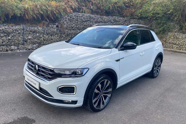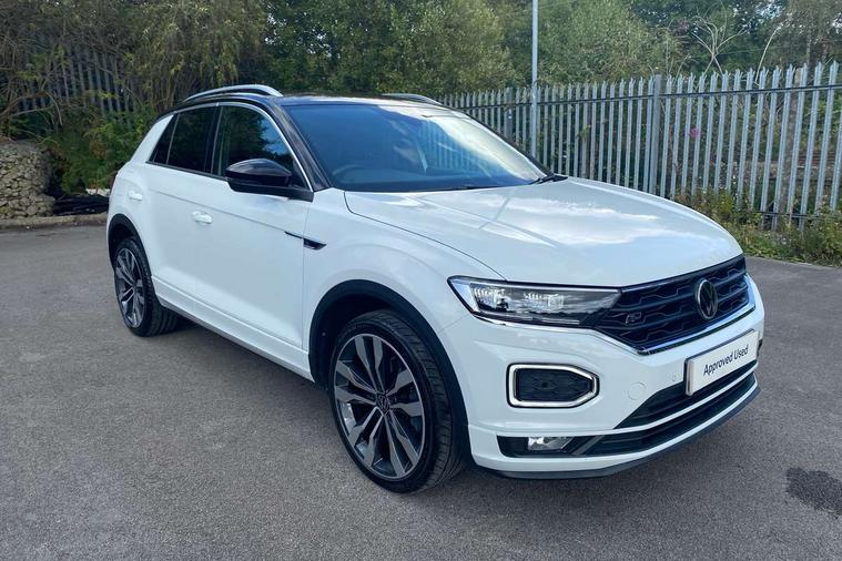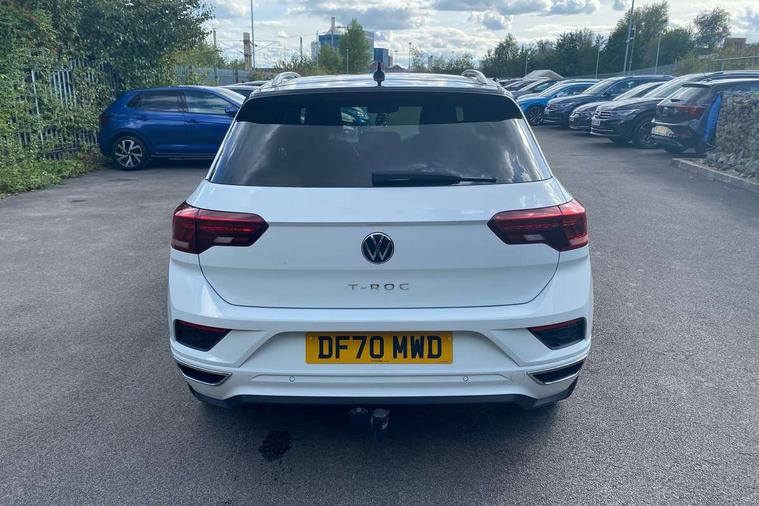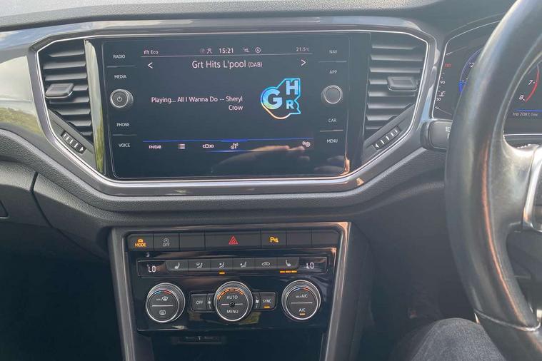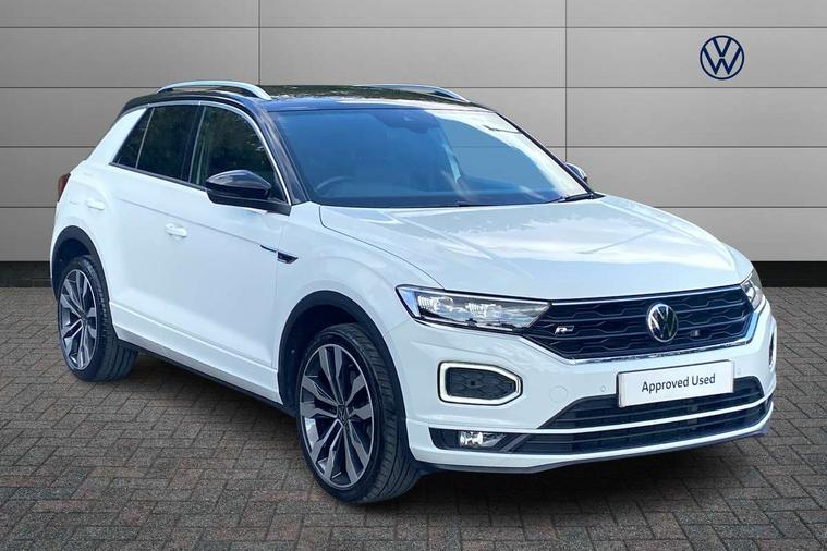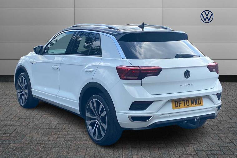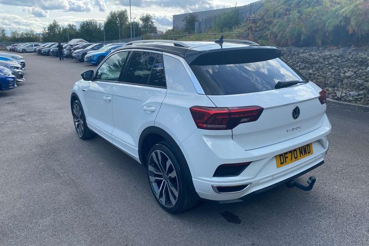 'Lights On' Reminder warning buzzer, Adaptive cruise control with front assist, radar sensor controlled distance monitoring, city emergency braking, Automatic start/stop system, Bluetooth telephone and audio connection for compatible devices, Car information display, Digital Cockpit Pro - Active info display, Discover navigation including 8" touch screen display, streaming and internet, Driver alert system with audible and visual fatigue detection system, Driver tips and journey analysis, Dusk sensor, Lane assist with warning text instrument cluster, Modified key software - reduce switch off time for key status change to Long no motion, Multifunction computer with visual gear change recommendation for fuel consumption, Service interval indicator, Think blue trainer driver tips and journey analysis, Voice activation, Wireless app connect for apple carPlay, Battery regeneration during braking, Centre arm rest including USB type C interface and USB charging socket, DAB Digital radio, Diversity antenna for FM reception, Front USB type C Interface 2X and USB charging socket, Music playback - MP3, WMA and AAC files, Premium USB cable in choice of either Apple or Android smartphone compatibility, SD card slot, Simultaneous pairing of 2 compatible mobile devices, SMS functionality - read, compose and send SMS messages using touch-screen display, Storage compartment with longitudinal and height adjustable in armrest and two rear air vents, Three route options - Fast, Short, Eco, Title and cover art display, Auto dimming interior rear view mirror, Automatic hazard lights activation under emergency braking, Black grained lower door protectors, Body colour door handles, Body colour rear roof spoiler, Chrome effect left and right trapezoid exhaust tailpipe fascia surround, Chrome trim on upper and lower radiator grille, Electrically foldable, adjustable and heated door mirrors with puddle lights and reverse activated kerb-view adjustment on passenger's door mirror, Front and rear electric windows, Front fog lights with static cornering function, Front windscreen wiper with intermittent wipe and 4 position delay, Fully galvanised body, Heated rear window, High level 3rd brake light, LED darkened rear light clusters, LED dipped and main beam headlights with automatic range adjustment including signature LED daytime running lights, LED rear number plate lights, Manual coming/automatic leaving home lighting function, Rain sensor, Rear tinted glass from B-pillar backwards approx 65% tinted, Rear wash/wipe with intermittent wipe setting, Volkswagen roundel, 2 Front and rear reading lights incorporating LED technology, 3 rear head restraints, 4 load lashing points in luggage compartment, Aluminium pedals, Ambient lighting in front footwell and light strips below trim in front doors, Black roof lining and sun visors, Branded points of interest, Carbon flag cloth upholstery, Climate control - 2 zone electronic air conditioning with automatic air recirculation and allergy filter, Drawer under drivers seat, Front + rear carpet mats, Front cupholders x 2, Front seat back storage pockets, Front sports seats with R-Line logo on seat backrest, Glovebox, Height adjustable front seats, Height/reach adjust steering wheel, Illuminated vanity mirrors, Instrument lighting, white adjustable panel illumination, Interior light delay, Isofix easy fit child seat preparation for 2 outer rear seats, Load through provision with single cup holder when folded down, Luggage compartment cover, removable, Luggage compartment lighting, R Line badge, Split folding rear seat backrests with centre armrest, Storage compartment in left and right luggage area, Storage compartment in rear doors, Storage compartments in driver and front passenger doors, Three spoke multi-function leather trimmed steering wheel and gearknob, Unique R Line door sill protectors, R line styling pack - T-Roc, Winter pack - T-Roc, 3 rear three point seatbelts, ABS, Curtain airbags, Driver and front passenger safety-optimised head restraints, Drivers and front passengers airbags with passengers deactivation switch, Drivers seatbelt reminder, Electronic parking brake with auto hold, Electronic stability control (ESC) includes ASR, EDL, EDTC and trailer stabilisation function, Front seat side impact airbags, Predictive pedestrian protection, Rigid safety cell with front and rear crumple zones, Three point height adjust front seatbelts + pretensioners, Tyre pressure loss indicator, Ventilated front and rear disc brakes, Volkswagen roadside assistance, Alarm with remote central locking and interior protection, Electronic engine immobiliser, Remote central locking with 2 remote folding keys, Shadow grey decorative inserts in dash and door panel, 19" Suzuka alloy wheels with low rolling resistance tyres and anti wheel bolts,