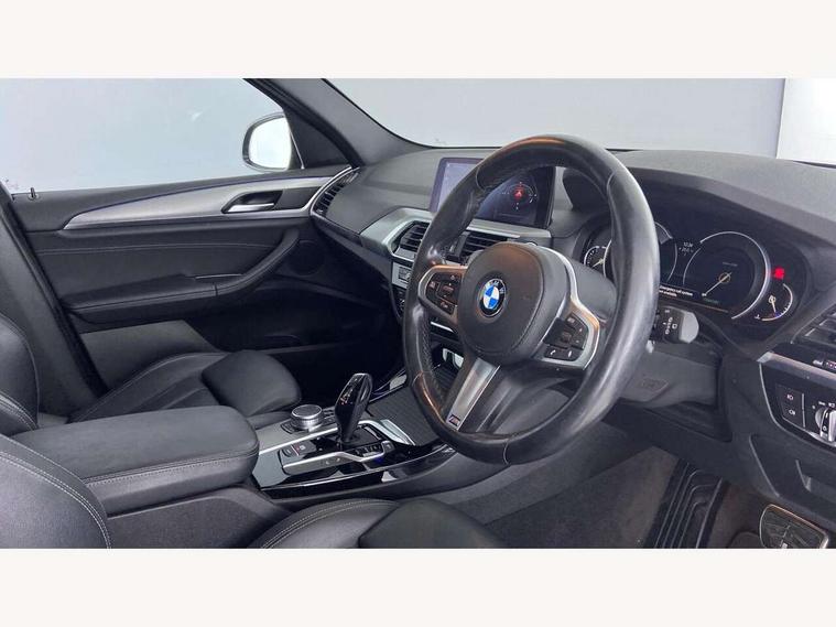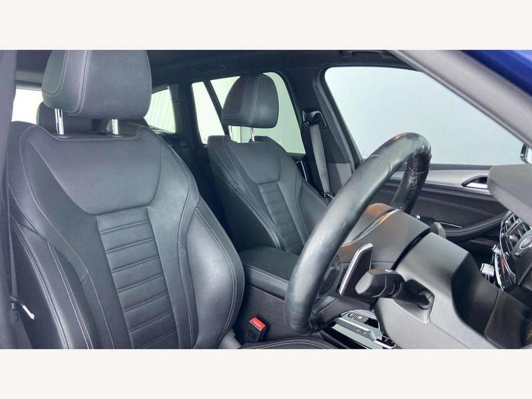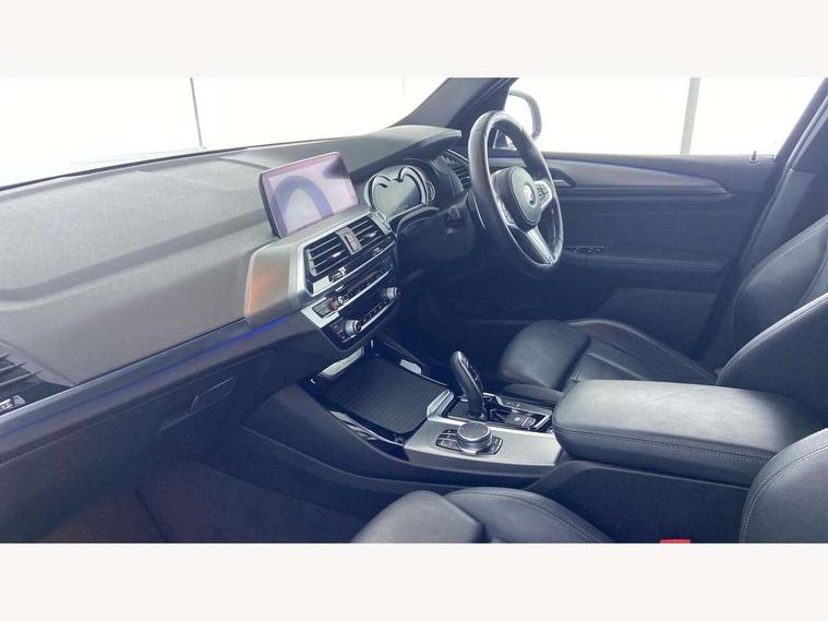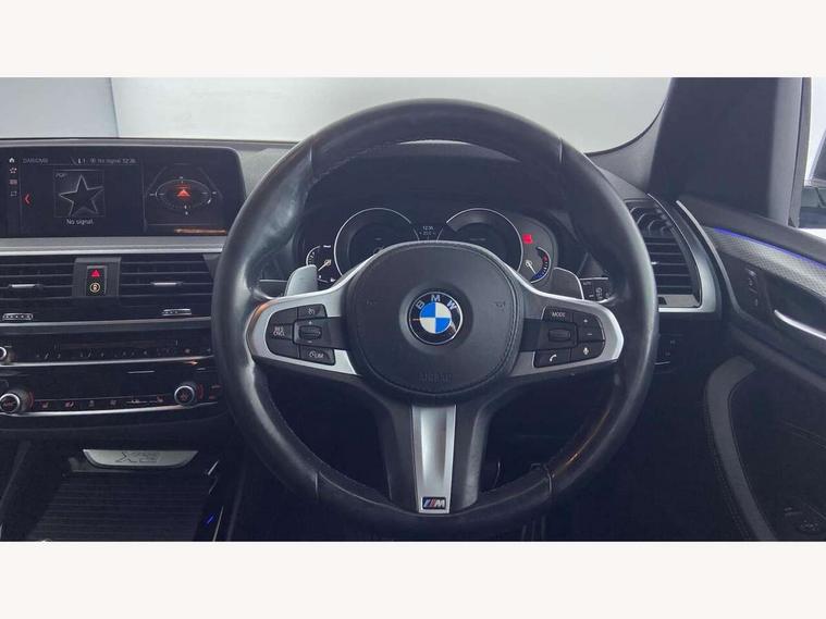 Active Guard incl speed limiting and lane departure functions with auto steering, and front collision warning with brake intervention, Attentiveness assist, Automatic tailgate operation, BMW Live Cockpit Professional sat nav system including 10.25" high resolution display and Intelligent Voice Assistant, BMW Online services, BMW Teleservices, Brake pad wear indicator in front and rear, Check Control warning system for monitoring of lights and door/luggage compartment open warning, Control display - 6.5" colour display screen, Electric Power Steering (EPS) with Servotronic, Front/rear Parking distance control, iDrive Controller with 8 favourite buttons, Lights on warning by audio warning signal when ignition is switched off, Navigation system - BMW Professional multimedia with Hard disc drive (HDD) and 10.25" touch display, Oil sensor for level and grade, warning by check control system, On board computer - average speed+fuel consumption, service interval, clock/date, odometer/trip meter, outside temperature display and ice warning, Optimum shift indicator, Personal Profile - automatic lock when driving away selectable, Real time traffic information, Semi digital instrument cluster, Stop/start system, Automatic transmission with gearshift paddles, Diesel particulate filter, Incorrect fuelling protection, Larger capacity fuel tank, Multi-link rear suspension, Performance Control, Auxiliary socket for external MP3 player, BMW professional radio/CD/MP3, DAB Digital radio, Acoustic glazing, Black finish on B pillars, Body colour door handles, Body colour electric adjust heated aspherical door mirrors, Body colour roof mouldings, Body coloured bumpers, Chrome kidney grille with high gloss black vertical slats, Direction indicator, side repeaters, integrated in exterior mirrors, Dual chrome exhaust, Dynamic brake lights, Exterior mirrors - electrically folding with anti-dazzle, Fingertip control / anti-trap function on electric window, Follow me home headlights, Front and rear bumper system with replaceable deformation elements, Front and rear electric windows, Green tinted heat insulating glass, Heated windscreen washer jets, Height adjustable headlamps, High gloss black door sill finishers, High gloss black shadow line roof rails, High gloss shadowline exterior trim in decorative moulding side frame/recess cover/guide rail/B, C pillars/mirror frame and triangle with mirror base, High level 3rd brake light incorporating LED Technology, Interior rear view electrochromatic mirror with automatic anti dazzle function, LED front fog lights, LED tail lights, Lightweight engineering, M aerodynamic bodystyling, Model designation, Rain sensor including auto headlights activation, Rear wiper, Shark fin antenna, Visible VIN plate, Welcome lighting, Windscreen wipers with adjustable interval, 12V socket in centre console and luggage area, 3 rear headrests, 3 zone automatic air conditioning, 4 lashing points to secure luggage, Ambient lighting, Anthracite headlining, Anthracite Velour floor mats, Driver/passenger sunvisors with ticket holders + illuminated vanity mirrors, Foldable boot floor with storage compartment, Four grab handles integrated in roof lining, Front and rear bottle holders integrated into door trim storage compartments, Front and rear side armrests integrated into door trim, Front centre armrest with storage compartment, Front footwell lights, Front sports seats, Front/rear courtesy lights with soft on/off dimming, Front/rear reading lights, Height adjustable front/rear head restraints, Isofix rear child seat preparation, Leather gear knob, Luggage area underfloor compartment, Luggage compartment lighting, M Sport multifunction leather steering wheel, Parcel shelf removeable and storable under boot floor, Reach and rake adjustable steering column, Rear centre armrest with 2 cupholders, Rear seat centre armrest with two cupholders, Removable / retractable luggage cover, Slope adjustable rear seats, Storage compartment in rear centre console and front/rear door trims, Through loading system with 40/20/40 split folding rear seat, Toolkit located in luggage compartment, Two front cupholders with removable oddments tray/lid, Vernasca leather upholstery, Connected pack professional - X3, ABS/EBD, ADB - Automatic Differential Brake, Automatic Stability Control (ASC), Battery safety cut-off, BMW emergency call, Brake assist, Brake assist function, Brake drying, Brake energy regeneration, Braking pre-tensioning, Child locks on rear doors, Cornering brake control (CBC), Crash Sensor - activation of central locking release, hazard warning light and interior lighting, Deactivation of fuel pump in the event of a crash, Driver and front passenger front and side airbags with passenger deactivation and ITS front and rear head airbags, DSC+, Dynamic brake control, Dynamic Traction Control - DTC, Electromechanical parking brake, Front seat belts warning, Hill descent control, Hill start assist, Seatbelt security check for front seats, Side impact protection, Three point seatbelts to all seats with front and outer rear pyrotechnic belt tensioners and seat belt force limiters, Two tone horn, Tyre pressure monitoring system, Ventilated front and rear disc brakes, Warning triangle and first aid kit, Central locking switch for all doors, fuel filler cap and luggage compartment, Electronic engine immobiliser, Locking wheel nuts, Remote control including two integrated key - one button for open/close all lockable content, windows and separate button for open luggage compartment, Remote control Thatcham category 1 alarm, Start/stop button with Comfort Go keyless engine start and auto Start/stop deactivation button, Low rolling resistance tyres,