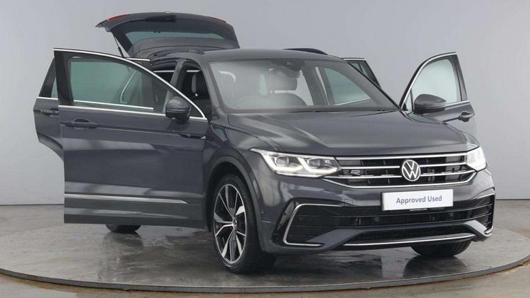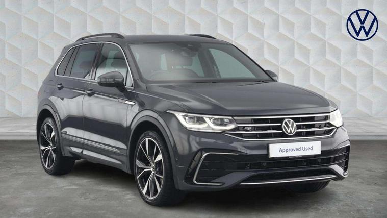 Adaptive cruise control ACC stop and go including speed limiter, App-Connect incl. App-Connect Wireless for Apple CarPlay and Android Auto, Bluetooth phone integration system, Distance control assist, Driver alert system, Driver profile selection, Dynamic road sign display, eCall emergency call system, Electromechanical speed sensitive power steering, Engine start/stop button, Lane keeping system Lane Assist, Lights on warning, Multifunction front facing camera, Outside temperature display, Premium multifunction display with multi colour display, Remote control boot opening, Rev counter, Revision / skills operating concept travel assistant, Service interval indicator, Speed limit display, Start/stop system with regenerative braking, Trip computer, Warning sound and light for doors and tailgate open, Battery regeneration during braking, Diesel particulate filter, Misfuel prevention device for diesel engine, Selective Catalytic Reduction, XDS electronic differential lock for improved traction and handling, 4 X 20 watt output, 8 Speakers, Diversity antenna for FM reception, Radio, SD card slot, Simultaneous pairing of 2 compatible mobile devices, SMS functionality - read, compose and send SMS messages using touch-screen display, Title and cover art display, USB C ports, Auto dimming interior rear view mirror, Automatic headlight control system, Body colour door handles, Chrome moldings on the side windows, Coming/leaving home lighting function, Dynamic headlight range control, Front and rear electric windows, Heated rear window, High level 3rd brake light, Laminated safety glass windshield, heat and sound insulating, LED headlamps with LED separate daytime running light and dynamic cornering light, LED rear combination lamps, LED rear number plate lights, License plate carrier in front and rear, Poor weather light and cornering light, R Line body kit, R Line side sills, Rain sensor windscreen wipers, Rear exhaust tailpipe, Rear fog lamp, Rear side wing doors, Rear spoiler in R style, Rear windscreen washer and wiper with interval delay, Side and rear windows in heat insulating glass, Trailer Stability Programme, Unique R Line badging, Windscreen wipers/ intermittent wipe + 4 position delay, 12V outlet in center console rear and in luggage compartment, 12V outlet in front and tray, 2 cup holders in front, 2 LED front reading lights, 2 LED rear reading lights, 3 bench rear seats in 2nd row, 3 rear headrests, 4 load lashing points, 40:20:40 split folding rear seats, Air Care Climatronic 3 zone automatic climate control with enhanced air filter and controls in the rear, Backrest release for left front seat, Black headlining, Brushed stainless steel pedals and footrest, Carpet mats in front and rear with decorative stitching in Gray, Climate control unit rear with touch function, Door and side trim panel in foam film, insert in leatherette, Front centre armrest, Front footwell illumination, Front seats head restraints (x-adjustment), Height adjustable front seats, Height/reach adjust steering wheel, Instrument lighting white adjustable panel illumination, Interior light with delay, Isofix Preparation 2 Rear child seats, Leather gear knob, Lockable cooled glovebox, Luggage compartment lighting, Luggage net, Rear bench seat asymetrically split folding, longitudinally movable and folding with load-through hatch and center armrest, Remote unlocking for rear seat backrest, Removable luggage cover, Removable rear headrests, Safety optimised front head restraints, Single front passenger seat, Sliding/reclining rear seats, Standard rear seat release, Storage compartment in driver's door, Storage compartment in passenger's door, Storage compartment in rear doors, Storage compartments in luggage area left and right, Storage tray on dashboard, Sun visors with illuminated vanity mirrors, Top front comfort seats, Variable boot floor, height adjustable and removable, Driver assistance pack plus - Tiguan DSG, 3 point seat belt for centre rear seats, 3 point seat belts with seat belt pretensioners for the outer rear seats, Active bonnet, Curtain airbags for front and rear passengers, Driver/Front Passenger airbags, Drivers knee airbag, Electronic parking brake with auto hold, Electronic Stability Control with driver steering recommendation, ABS, ASR, EDL, EDTC and trailer stabilization, Front assist with autonomous emergency braking (for Adaptive Cruise Control ACC up to 130 mph), Front disc brakes, Front passenger airbag deactivation, Front side airbags, Height adjustable front 3 point seatbelts + pretensioners, Hill hold control, Manual child proof rear door locks, Pedestrian monitoring system, Power assisted brakes, Proactive passenger protection system in combination with front assist, Rear disc brakes, Rigid safety cell with front and rear crumple zones, Two tone horn, Warning sound and light for front seat belts if unfastened, Anti theft alarm system with interior monitoring, backup horn and towing protection, Anti theft wheel bolts, Electronic engine immobiliser, Tool kit,