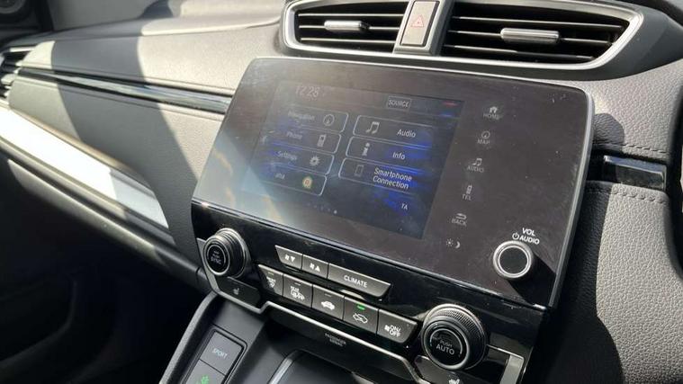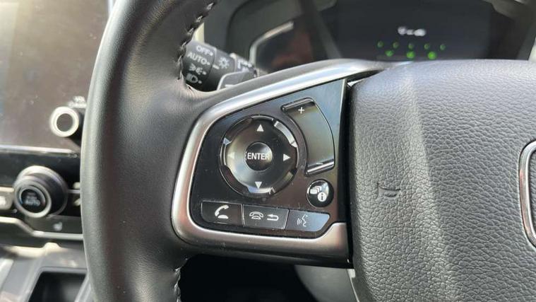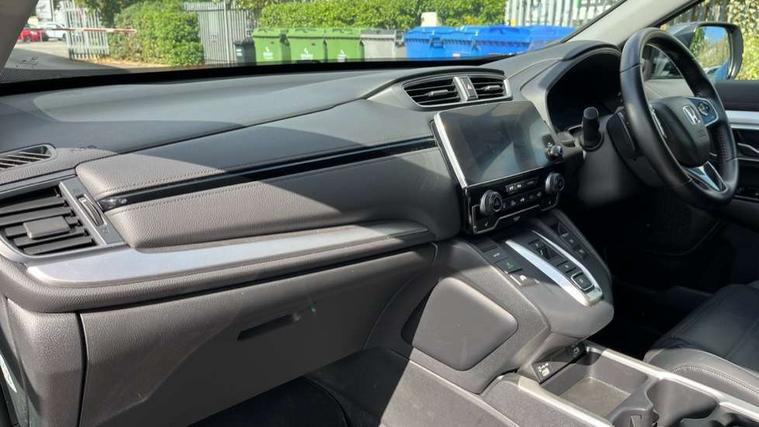 Adaptive cruise control, Agile handling assist, BLIS (Blind Spot Information System) with dual power heated blind spot mirrors, Bluetooth hands free telephone connection, E-call, Economy mode, Electric power steering, Emergency stop signalling system, Forward collision warning, Front parking sensors, Honda CONNECT with GARMIN Navigation + 7" touchscreen, DAB radio, Apple CarPlay, Android Auto, Aha app integration and internet browsing, Intelligent multi info display, Lane departure warning system, Lane keep assist system, Low speed following, Rear parking sensors, Rear view camera, Road departure mitigation, Speed limiter, Traffic sign recognition, Vehicle stability assist, 2 USB sockets in rear, 2x USB sockets in front, 9 speakers, DAB Digital radio, Dashboard centre speaker, Front tweeters, Steering wheel mounted controls, Subwoofer, Aspheric door mirrors, Auto dimming rear view mirror, Automatic headlights with dusk sensor, Body colour bumpers, Body colour door handles, Cornering light, Door mirrors tilt when reversing, Electric front windows/one touch facility, Electric rear windows + one touch facility, Electrically adjustable and heated door mirrors, Electrically retractable door mirrors, Front windscreen de-icer, High beam assist, LED daytime running lights, LED front fog lights, LED Headlights, LED rear lights, Rain sensor, Rear privacy glass, Rear side wing doors, Rear wiper, Roof rails, Shark fin roof aerial, Third brake light, Welcome home function, 3 seat bench in 2nd row, 60/40 split folding rear seat, Accessory sockets, Ambient interior lighting, Cargo hooks, Courtesy lights, Driver's electric adjustable lumbar support, Driver/passenger front seatback pockets, Driver/passenger sunvisors with illuminated vanity mirrors, Dual zone automatic climate control, Electric lumbar adjustment on passenger's seat, Front centre armrest, Front map lights, Front passenger seat height adjust, Heated front seats, Height adjustable driver's seat, Hybrid emblem, Illuminated glovebox, Instrument panel with garnish wood film, Isofix child seat preparation, Leather steering wheel, Leather upholstery, Paddle shift controls, Rear air vents, Rear centre armrest, Rear headrests, Rear reading lights, Rear seat conversation mirror, Silver interior door handles, Single front passenger seat, Sunglasses holder with mirror, Tilt/telescopic adjustable steering wheel, Tonneau cover, Trunk light, 5 x 3 point seatbelts, ABS/EBD, Anti-whiplash front headrests, Brake assist function, Collision mitigation braking system, Deflation detection system, Driver airbag, Electronic parking brake with auto hold, Front and rear curtain airbags, Front and rear seat belts with emergency locking retractor (ELR), Front side airbags, Hill start assist, Manual child lock in rear doors, Passenger airbag deactivate switch, Honda super locks, Immobiliser, Security alarm, Smart entry + Smart start, Ultrasonic security sensor, Tyre repair kit,