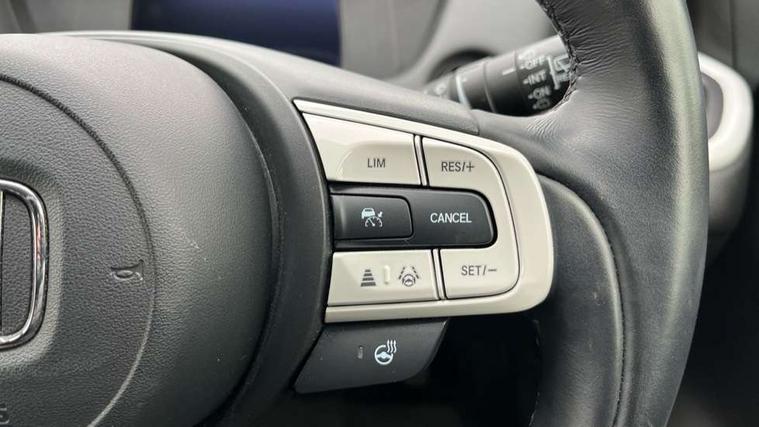 Adaptive cruise control, Adjustable speed limiter, Agile handling assist, BLIS (Blind Spot Information System) with Cross Traffic Monitor, Bluetooth hands free telephone connection, eCall emergency call system, Econ mode, Electric power steering wheel with variable gear ratio steering, Emergency stop signalling system, Forward collision warning, Front and rear parking sensors, Honda CONNECT with HERE Navigation + 9" touchscreen, AM/FM/DAB/Apple Carplay and android auto, Idle stop, Intelligent speed limiter, Lane departure warning system, Lane keep assist system, Low speed following, Multi-information display, Rear view camera, Road departure mitigation, Traffic sign recognition, Vehicle stability assist, 'Shark fin' mobile antenna, 2 USB sockets in rear, 2x USB Front socket (1 data & 1 charge), 4 speakers, Remote audio controls on steering wheel, Aspheric door mirrors, Auto wipers, Automatic headlights with on/off timer, Coming/leaving home function, Body colour door handles, Body coloured bumpers, eHEV emblem, Electric adjustable door mirrors, Electrically folding door mirrors, Front and rear electric windows, Heated door mirrors, High beam assist, LED daytime running lights, LED front fog lights, LED Headlights, LED rear lights, Privacy glass, Rear side wing doors, Rear wiper, Single exhaust tailpipe, Third brake light, 3 seat bench in 2nd row, 60/40 split rear bench seat, Cargo net hooks, Climate control air conditioning, Driver and front passenger seat armrests, Driver and passenger front seat pockets, Driver's seat height adjustment, Fabric/leather upholstery, Front accessory power socket, Front head restraints, Front map lights, Front/rear courtesy lights, Heated front seats, Heated steering wheel, Isofix child seat restraint mechanism, Isofix points, Leather gearshift knob, Leather steering wheel, Magic seat flexibility system, Paddle shift controls, Plating interior door handles, Rear head restraints, Rear parcel shelf, Single front passenger seat, Sunvisors with vanity mirrors, Tilt/telescopic adjustable steering wheel, Tonneau cover, Trunk light, 3x3 point rear seatbelts, Anti-lock braking system (ABS), Brake assist function, Brake hold function, Child locks on rear doors, Collision mitigation braking system, Deflation warning system, Driver knee airbag, Driver SRS airbag (single stage inflation), Driver/Front Passenger airbags, Electric parking brake, Front and rear side curtain airbag, Front side airbags, Hill start assist, Passenger SRS airbag cut-off device, Rear side airbags, Whiplash lessening front headrests, Front seat belt with emergency locking retractor, Honda super locks, Immobiliser, Mirrors and windows key fob operation, Remote central locking with 2 remote folding keys, Security alarm, Smart entry + Smart start, Soft pad leather interior panels, 16" Multi apperance alloy wheels in mat berlina black, Tyre repair kit,