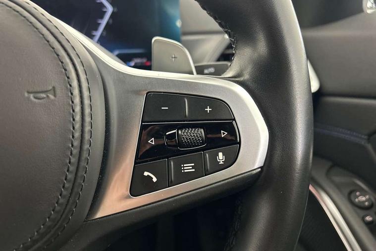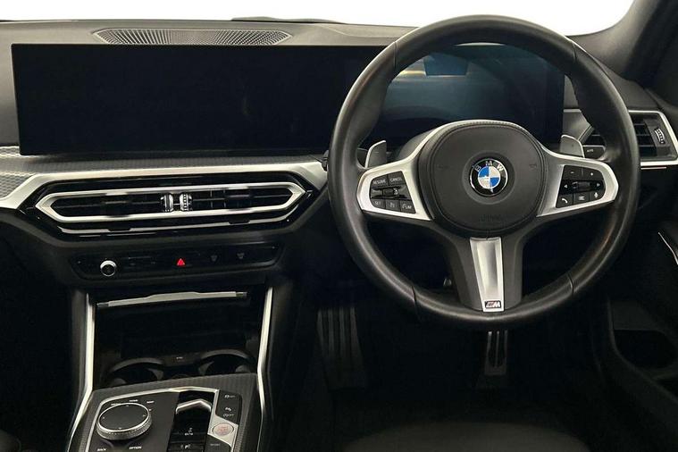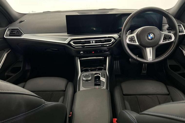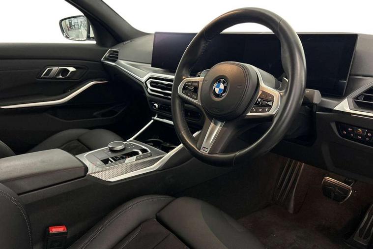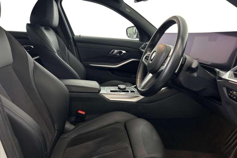 Active guard plus, Attentiveness assist, Automatic Start/stop button, BMW iDrive, BMW Teleservices, Condition based service, ConnectedDrive Services, Driving experience switch, Live cockpit plus with Navigation + 12.3" instrument display + 14.9" display, Intelligent voice assist, 2 USB, 4G LTE connect, Oil sensor for level and grade, Preparation for driver assistance, Shifting point display, Smartphone integration, Variable sport steering, Double joint spring strut front axle, Fuel tank breather system, M sport suspension, Sport automatic transmission with steering-wheel mounted gearshift paddles and launch control, DAB tuner, 3rd brake light, Acoustic glazing, Auto dimming rear view mirror, Automatic headlight beam throw control with load dependent regulating reaction, dynamic compensation of braking dive and acceleration squat, BMW emblem, engine compartment lid and tailgate, Body colour roof fin, Door sill strips, Electric windows - front and rear, with open/close fingertip control, anti-trap facility and comfort closing, Follow me home headlight function, Front and rear bumper system with replaceable deformation elements, Front apron plastic in body colour, Fuel filler flap - right rear in body colour, Heated washer jets, Illuminated bow type door handles in body colour drivers side with door lock, Interior rear view electrochromatic mirror with automatic anti dazzle function, LED headlights with LED daytime running lights and LED turn indicator, LED rear lights, Licence plate panel integrated into front bumper and tailgate, Matt black B-pillar finsher, Matt black window recess cover, Model designation on right side of tailgate, One piece front bumper cover including towing eye cover in body colour, Rain sensor with automatic headlight activation, Rear boot, Rear side wing doors, Reversing lights, Side frame decorative moulding black matt, Visible exhaust tailpipe finisher, Welcome lights in interior and door handle area, 12V power socket in front storage compartment, 2 front cupholder in centre console with clamping elements and matt black inlay, 3 seat bench in 2nd row, 3 zone automatic air conditioning, 40:20:40 split folding rear seat with loading system, Anthracite headlining, Armrest integrated in front and rear door trim + front centre console armrest, BMW ID, Cruise control operation in steering wheel, Driver backrest width adjustment, Folding rear centre armrest with 2 cupholders, Front and rear door exit lighting (left / right), Front and rear footwell lighting, Front and rear headrests, Front and rear reading lights, Front and rear velour floor mats, Front sport seats, Heated front seats, Height adjustable mechanically and infinitely variable steering column, Illuminated armrest storage compartment, Illuminated glove compartment, Illuminated luggage compartment, Lashing eyelets in luggage compartment, LED ambient lighting with welcome carpet light, M Sport multifunction leather steering wheel, Make-up mirror lights, Single front passenger seat, Standard seat for driver and passenger with manual adjustment, Sunvisors with vanity mirrors and ticket pocket, Toolkit located in luggage compartment, Connected pack professional - 3 Series Saloon/Touring, Interior and exterior mirror pack - 3 Series Touring/Saloon, M Aerodynamics package - 3 Series Saloon/Touring, M sport exterior styling pack - 3 Series Saloon/Touring, Storage compartment pack - 3 Series Saloon/Touring, 3x3 point rear seatbelts, BMW emergency call, Child locks on rear doors, Crash sensor activating of airbags, Unlocking doors, hazard warning lights, fuel cut off, interior lighting+activation of safety battery terminal clamp, Driver and front passenger with seat occupancy detection for driver's and passenger side, Driver and passenger side airbags, body protection at side and airbags deploy from seat backrests, Dynamic brake control, Dynamic stability control + (DSC+) - Anti-lock Braking System (ABS) with brake assist and cornering brake control + Automatic Stability Control (ASC), Dynamic Traction Control - DTC, Electric parking brake including automatic hold function and automatic release of the parking brake when driving off, Electronic differential lock control (EDLC), Head airbags in 1st and 2nd row, head protection at side, curtain airbags open from headliner above 1st and 2nd row, Plastic fuel tank, Side impact protection, Tyre pressure monitoring with three level warning strategy, Ventilated front and rear disc brakes, Warning triangle and first aid kit, Alarm system, Centre lock switch, Closing system with central locking, Electronic vehicle immobiliser,