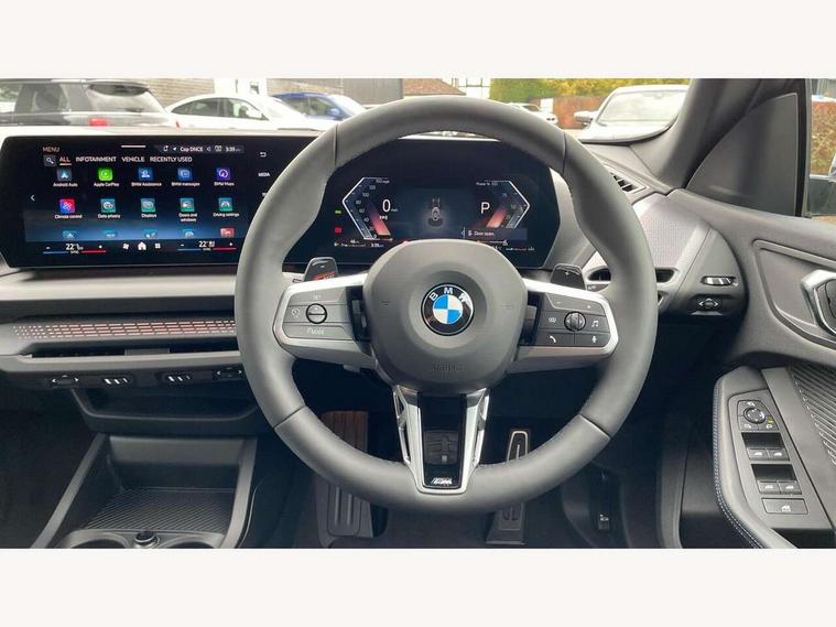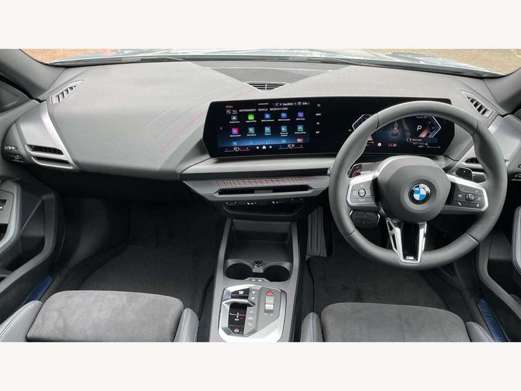 3 driving modes Normal, Eco, Sport, Active guard plus, Attentiveness assist, Auto start-stop, Bluetooth / WiFi interface for wireless connection of mobile terminal devices and audio streaming, BMW ConnectedDrive online services, BMW Intelligent Personal Assistant, BMW Live cockpit plus with widescreen display 10.25" instrument cluster and 10.7" control display, BMW Online services, BMW operating system with 7.0 mid interface, BMW Teleservices, Check Control warning system for monitoring of lights and door/luggage compartment open warning, Cruise control with braking function, Electric power steering, Front and rear parking sensors, Gearshift time display in manual mode, Integrated navigation data with map data via USB +features such as 3D landmarks and micro city models, Integrated owners handbook, Intelligent voice assistant, Lane departure warning system, Oil sensor for level and grade, On board computer - average speed+fuel consumption, service interval, clock/date, odometer/trip meter, outside temperature display and ice warning, Optimum shift indicator, Park assist including reversing assistant, lateral parking aid and reversing assist camera, Personal e-SIM, Personal Profile, Pull away assistant, Speed limit Info including no-overtaking indicator, Speed limiting function, 49 litre fuel tank, Automatic transmission with gearshift paddles, Drive Performance Control, Electronic differential lock, M Adaptive suspension, Performance Control, Petrol Particulate Filter, VALVETRONIC engine management, 2x USB Type C ports (for charging and data transfer), 4G LTE Connectivity with hard wied 4G network sim card, DAB Digital radio, Auto wipers, Automatic headlight beam throw control, Automatically dimming rear view mirror, Body colour door handles, Direction indicator side lights integrated exterior mirrors, Exterior M sport design elements, Folding side mirrors with auto dimming/folding wing mirrors with auto dimming, Follow me home headlights, Front and rear bumper panel with M specific design, in body colour with inserts in black high gloss, Heated door mirrors, High gloss shadow line exterior trim, High level third brake light, Key with M identification, LED daytime running lights, LED eyebrow turn indicators, LED front fog lights, M identification on the sides, Rain sensor with automatic headlight activation, Rear boot, Rear fog lights, Rear side wing doors, Rear window heating, Roof trim strip in vehicle colour, Shark fin antenna, Side sill covers with M specific design in body colour, Trailer stabilisation logic, Visible VIN plate, Welcome lighting, 12V power socket in centre console, 2 cupholders in front centre console, 3 rear seat head restraints, 3 seat bench in 2nd row, 3 spoke sports black walknappa leather steering with black stitching, shift paddled boost inscription, shaped thumb rests, specific M Badge, Anthracite headlining, Child seat ISOFIX attachment for two outer rear seats and front passenger seat with anchorage points, Conditioned based service, Driver and front passenger backrest net on rear, Driver and front passenger seat heating, Four grab handles integrated in roof lining, Front and rear door pockets including bottle trays, Front and rear side armrest integrated into door trim, Front head restraints, Height adjustable front head restraints, Luggage compartment lighting, Rear seat backrest with manual 60:40 split folding with 3 top tether clips integrated on rear of seat panels, Single front passenger seat, Sun visors with vanity mirrors and insert tab, Connected pack professional - 2 Series Gran Coupe, 2 tone horn, Airbag - Front driver and passenger, front and rear head, front side, curtain head protection, manual deactivation of front passenger airbag possible, Anti lock braking system (ABS) with cornering brake control, BMW emergency call, Brake drying, Braking readiness, City braking function, Crash sensor activating of airbags, Unlocking doors, hazard warning lights, fuel cut off, interior lighting+activation of safety battery terminal clamp, Dynamic stability control + (DSC+), Dynamic Traction Control - DTC, Electrically operated hand brake, Front and rear disc brakes, PC iBrake (Post crash approach control warning with light braking function), Rear brake discs, Rear child proof door locks, Seat belt security check for driver and front passenger, Seatbelt warning, Side impact protection, Three point seat belts on all seats including front belt stopper, pyrotechnic belt tensioners and belt force limiters, Trailer stability control, Tyre pressure monitoring system, Ventilated front disc brakes, Warning triangle and first aid kit, Central locking switch for all doors, fuel filler cap and luggage compartment, Deadlocking function system to all doors, Drive away locking system on all doors and luggage compartment, Locking wheel bolts, Start/Stop button (illuminated) in centre console with keyless engine start and Auto Start-Stop deactivation button, Thatcham Cat.1 alarm and immobiliser, Two remote control key with integrated key - open/close doors/fuel flap/tailgate +1 button for unlock compartment with M design high gloss black inlay, Reduced rolling resistance tyres, Tyre repair kit,