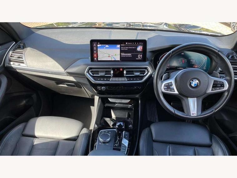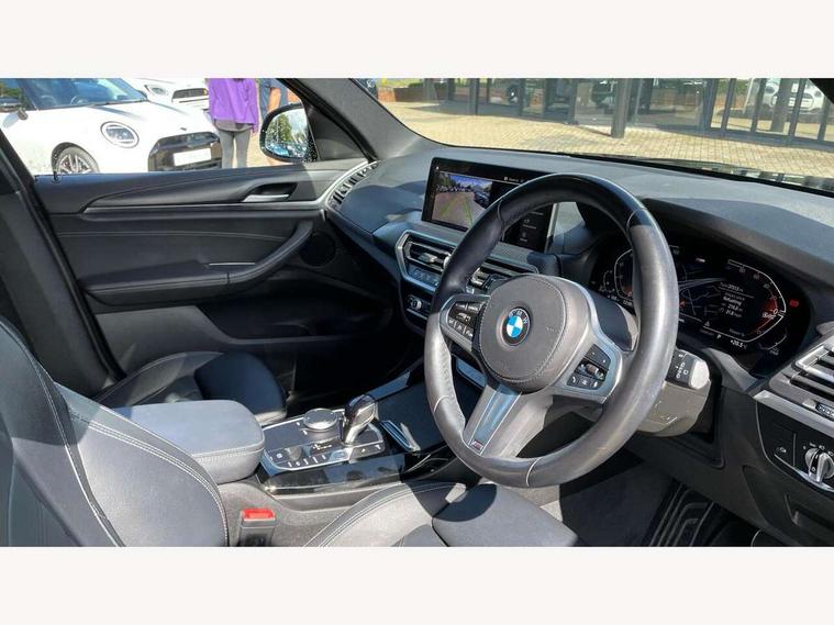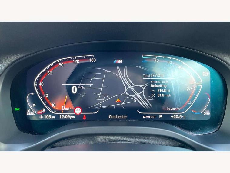 Active Guard, Attentiveness assist, BMW Live Cockpit Professional nav system including 12.3" instrument display + 12.3 high resolution control display, BMW Online services, BMW Teleservices, Brake pad wear indicator in front and rear, Check Control warning system for monitoring of lights and door/luggage compartment open warning, Condition based service - BMW service history, electronic service booklet, integrated owner's handbook, Connected drive services, Cruise control with brake function + speed limiter, Electric boot lid, Front/rear Parking distance control, iDrive Controller with 8 favourite buttons, Instrument cluster with speedometer with mph readout, tachometer, fuel gauge and oil temperature gauge, Lights on warning by audio warning signal when ignition is switched off, Oil sensor for level and grade, warning by check control system, On board computer - average speed+fuel consumption, service interval, clock/date, odometer/trip meter, outside temperature display and ice warning, Optimum shift indicator, Personal Profile - automatic lock when driving away selectable, Run flat indicator, Stop/start system, Variable sports power steering with drive performance control Sport+ mode, Automatic transmission with gearshift paddles, Diesel particulate filter, Incorrect fuelling protection, Larger capacity fuel tank, M sport suspension, Multi-link rear suspension, Performance Control, BMW professional radio/CD/MP3, DAB tuner, Acoustic glazing, Automatic windscreen wipers and automatic headlight, Black finish on B pillars, Body colour door handles, Body colour electric adjust heated aspherical door mirrors, Body colour roof mouldings, Body coloured bumpers, Direction indicator, side repeaters, integrated in exterior mirrors, Dynamic brake lights, Exhaust tailpipes - dual, round, split left and right with chrome finisher, Fingertip control / anti-trap function on electric window, Folding wing mirrors with auto dimming, Follow me home headlights, Front and rear bumper system with replaceable deformation elements, Front and rear electric windows, Gloss chrome tailpipes finishers, Green tinted heat insulating glass, Heated windscreen washer jets, High beam assistant, High gloss black shadow line roof rails, High gloss shadowline exterior trim in decorative moulding side frame/recess cover/guide rail/B, C pillars/mirror frame and triangle with mirror base, High level 3rd brake light incorporating LED Technology, Interior rear view electrochromatic mirror with automatic anti dazzle function, LED tail lights, Lightweight engineering, M aerodynamic bodystyling, M Sport entry door sill strips, Model designation, Rear side wing doors, Rear wing door, Rear wiper, Shark fin antenna, Side exterior M designation badges, Visible VIN plate, Welcome lighting, Windscreen wipers with adjustable interval, 12V power socket in front centre console, 3 rear headrests, 3 seat bench in 2nd row, 3 zone automatic air conditioning, 4 lashing points to secure luggage, 40:20:40 split folding rear seat with loading system, Ambient lighting, Anthracite headlining, Automatic interior light when door is opened/ignition switched off or via remote key, Driver seat backrest width adjustment, Floor mats in velour, Foldable storage floor with compartment, Four grab handles integrated in roof lining, Front and rear bottle holders integrated into door trim storage compartments, Front and rear side armrests integrated into door trim, Front centre armrest with storage compartment, Front footwell lights, Front head restraints, Front passenger seat, Front sports seats, Front/rear courtesy lights with soft on/off dimming, Front/rear reading lights, Heated front seats, Isofix rear child seat preparation, Leather gear knob, Luggage area underfloor compartment, Luggage compartment lighting, M sport leather steering wheel, Multifunction steering wheel, Parcel shelf removeable and storable under boot floor, Reach and rake adjustable steering column, Rear centre armrest with 2 cupholders, Removable / retractable luggage cover, Slope adjustable rear seats, Storage compartment in rear centre console and front/rear door trims, Sun visors with vanity mirrors and ticket pocket, Toolkit located in luggage compartment, Two front cupholders with removable oddments tray/lid, Vernasca leather upholstery, Connected pro pack - X3, Driving assistant pack - X3, ADB - Automatic Differential Brake, Anti-lock braking system (ABS) with brake assist, Automatic Stability Control (ASC), Battery safety cut-off, BMW emergency call, Brake drying, Brake energy regeneration, Braking pre-tensioning, Child locks on rear doors, Cornering brake control (CBC), Crash Sensor - activation of central locking release, hazard warning light and interior lighting, Deactivation of fuel pump in the event of a crash, Driver and front passenger front and side airbags with passenger deactivation and ITS front and rear head airbags, DSC+, Dynamic brake control, Dynamic Traction Control - DTC, Electromechanical parking brake, Hill descent control, Hill start assist, Seatbelt security check for front seats, Side impact protection, Three point seatbelts to all seats with front and outer rear pyrotechnic belt tensioners and seat belt force limiters, Two tone horn, Tyre pressure sensor, Ventilated front and rear disc brakes, Warning triangle and first aid kit, Central locking switch for all doors, fuel filler cap and luggage compartment, Electronic engine immobiliser, Locking wheel nuts, Remote control including two integrated key - one button for open/close all lockable content, windows and separate button for open luggage compartment, Remote control Thatcham category 1 alarm, Start/stop button with Comfort Go keyless engine start and auto Start/stop deactivation button, Low rolling resistance tyres,
