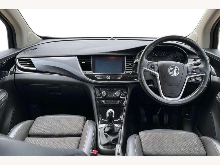 Bluetooth system, Cruise control + speed limiter, Digital clock, Lights on audible warning, Multi function trip computer, Navi 5.0 IntelliLink Sat Nav, USB/iPod/Aux-in, audio stream, DAB/AM/FM radio, traffic program, 8" touchscreen, 6 speakers, Apple CarPlay/Android Auto, Outside temperature display, Smartphone integration, Speed sensitive power steering, Systems with voice recognition, 6 speakers, 2 speed wipers/wash wipe/intermittent wipe, Automatic lighting control, Black door mirrors, Body colour door handles, Body colour side mouldings, Chrome side window trim, Electric front+rear windows, Electrically adjustable and heated door mirrors, Front fog lights, Front skid plate, Griffin badges, Heated rear window, LED daytime running lights, Silver roof rails, Stainless steel exhaust tailpipe, 18 way adjustable front seats, 3 spoke steering wheel, 60/40 split folding rear seat, Centre rear head restraint, Chrome interior door handles, Dual zone electronic climate control, Folding luggage compartment cover, Front centre armrest, Front door pockets, Front seat back storage pockets, Front/rear courtesy lights, Griffin branded floor mats, Height adjustable front/rear head restraints, Illuminated glovebox, Illuminated luggage compartment, Illuminated vanity mirrors, ISOFIX on outer rear seats, Multi function steering wheel, Premium leather effect / fabric seat trim, Reach + rake adjustable steering column, Rear cupholders, Rear seat centre armrest, Sight and light pack - Mokka X, Winter pack - Mokka, 3x3 point rear seatbelts, ABS, Curtain airbags, Driver/Front Passenger airbags, Emergency brake assist, ESP, Front seat side impact airbags, Hill start assist, Seatbelt warning, Traction control, Tyre pressure monitoring system, Immobiliser, Remote central locking, Remote security alarm system, 18" Alloy wheels, Tyre inflation kit,