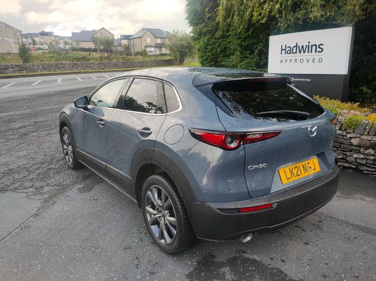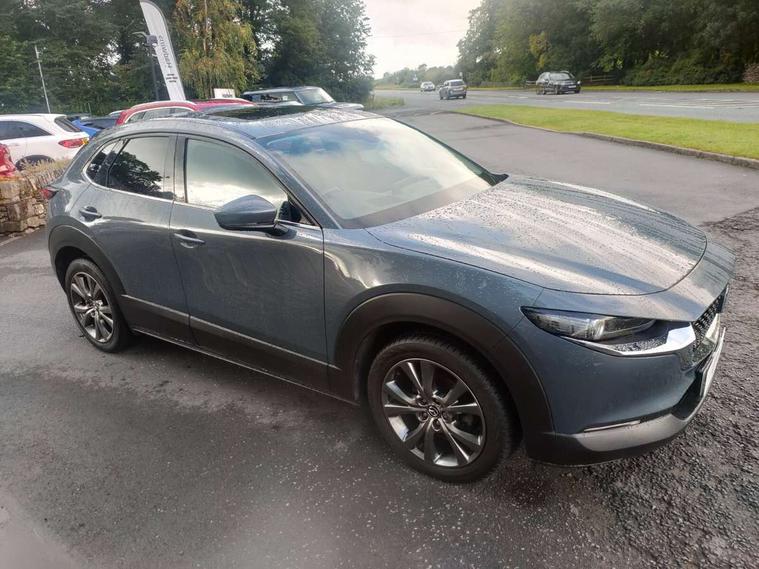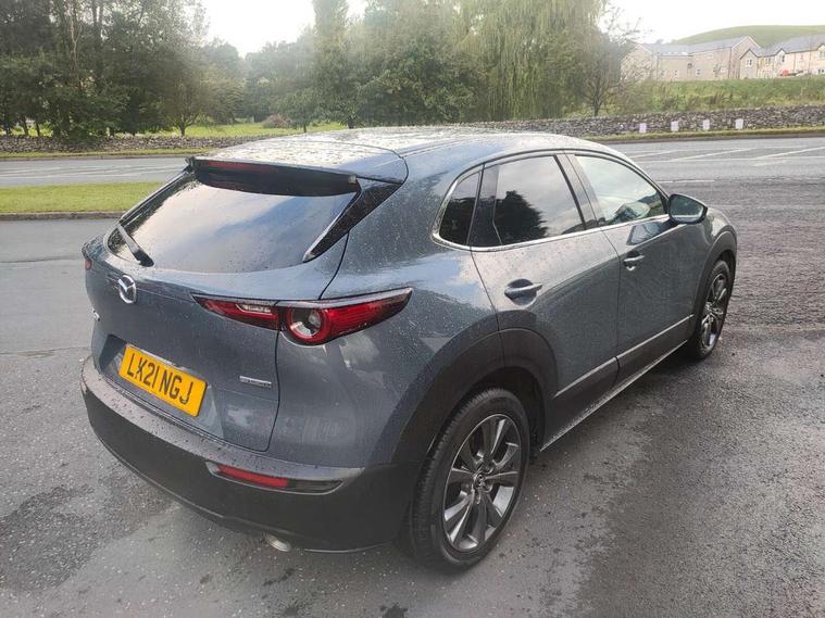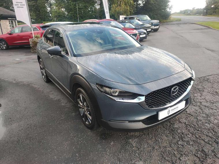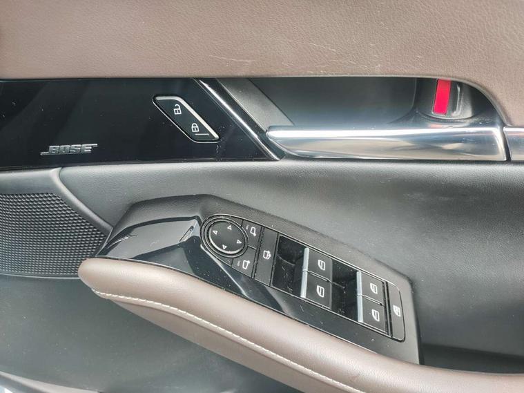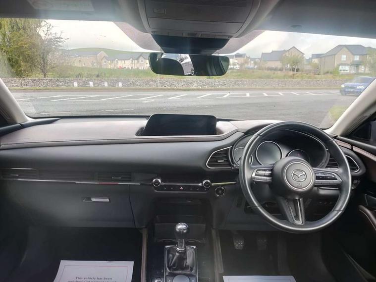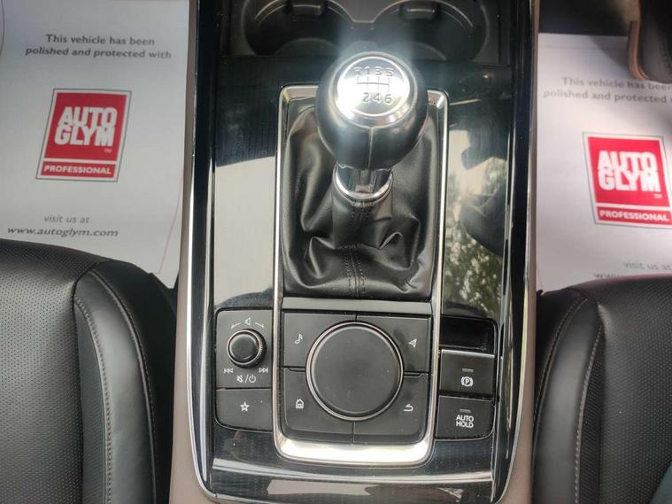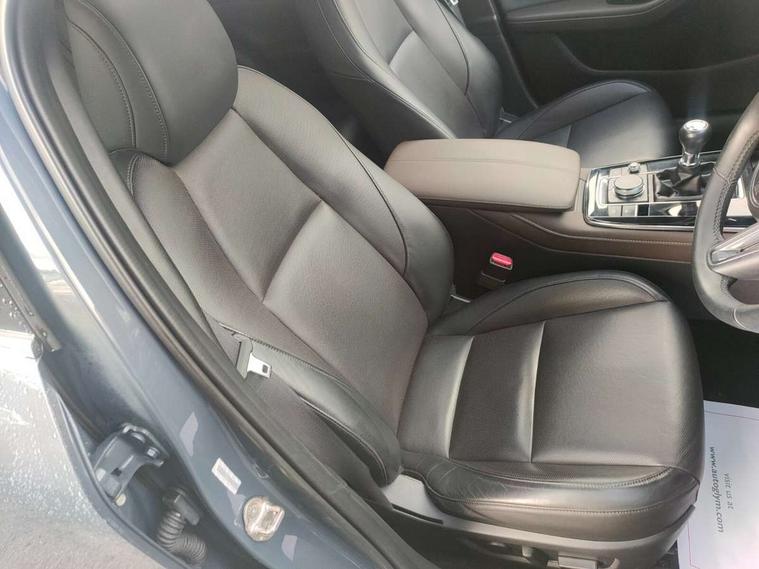 7" TFT Colour driver instrument panel display, 8.8" Colour centre touch screen display with Mazda Connect infotainment, Adaptive cruise control (Mazda radar cruise control), Apple car play/Android Auto, Blind spot monitoring with rear cross traffic alert, Driver attention alert system, E-call with GPS, Emergency stop signalling system, Engine start/stop button, Front and rear parking sensors, Integrated bluetooth, Integrated Mazda navigation system, Intelligent speed assist, Lane keep assist system (LAS) with Lane departure warning system (LDWS), PAS, Power lift gate, Reversing camera, Service indicator, Trip computer, Window projected colour active driving display (head up display) with traffic sign recognition, i-stop, 2 USB charging ports, Bose surround sound system with 12 Speaker, Bose center point, Bass match and audio pilot technology, DAB Digital radio, Multimedia Commander including separate volume dial, Steering wheel mounted audio/bluetooth controls, Adaptive LED Headlights, Auto dimming driver's door mirror, B-pillar and C-pillar garnishes in piano black finish, Body coloured, electrically adjustable, heated auto power folding door mirrors with integrated indicators, Coming/leaving home lighting function, Door mirrors with tilt-down function when reversing, Dual chrome exhaust, Dusk sensing headlights, Electric front/rear windows with one touch auto up/down, Frameless auto dimming interior rear view mirror, Front grille in piano black finish, Front kodo turn signal, High beam assist, Piano black rear roof spoiler, Power tilt/slide sunroof, Privacy glass (rear side windows and rear screen), Rain sensing front wipers with adjustable speed and intermittent wipe, Rear fog lights, Rear wiper, Signature front LED daytime running lights, Signature LED rear combination lights with LED rear turn lights, 60/40 split fold down rear seats, Chrome centre bezel steering wheel, Chrome horn pad ring, Dashboard, door cards and front centre armrest in rich brown leather, Driver and front passenger visors with covered vanity mirror and driver ticket holder, Driver seat memory function, Driver's seat, power tilt, slide, recline, height and lumbar adjustment, Driver, Front passenger and two rear grab handles with coathooks, Dual zone climate control air conditioning with rear air vents, Electrical power outlet, Folding rear centre armrest with two cup holders, Front and rear (x3) head restraints, Front and rear door pockets, Front and rear LED lighting, Front armrest, Front centre storage with two cupholders, Front passengers seat manual slide, recline and height adjustment, Gear shift indicator, Glove box handle with chrome surround, Glovebox illumination, Heated front seats with 3 stage setting, Heated steering wheel, ISOFIX child seat anchorage points attached on outer rear seats, Leather upholstery with interior accents, Leather wrapped gear shift knob, Leather wrapped steering wheel with telescopic and tilt adjustment, Luggage compartment light, Rear passenger seat map pockets, Roof mounted sunglasses holder, Vinyl leather door panel inserts, 3 point ELR front seat belts x2 with pretensioners, 3 point ELR rear seat belts, Anti-lock braking system (ABS), Driver/Front Passenger airbags, Drivers knee airbag, DSC - Dynamic Stability Control, Electronic parking brake with auto disengage function and auto hold function, Front and rear curtain airbags, Front passenger airbag cut-off switch, Front side airbags, Front smart city brake support, G-Vectoring control plus, Hill launch assist, Mild Hybrid system with regenerative braking, Seatbelt reminder for driver/front passenger and rear seats, Traction control system (TCS), Tyre pressure monitoring system (TPMS), Remote central locking with deadlocking and automatic door lock when driving, Smart keyless entry, Thatcham accredited alarm and immobiliser, 18" Bright silver metallic alloy wheels, Emergency tyre repair kit,